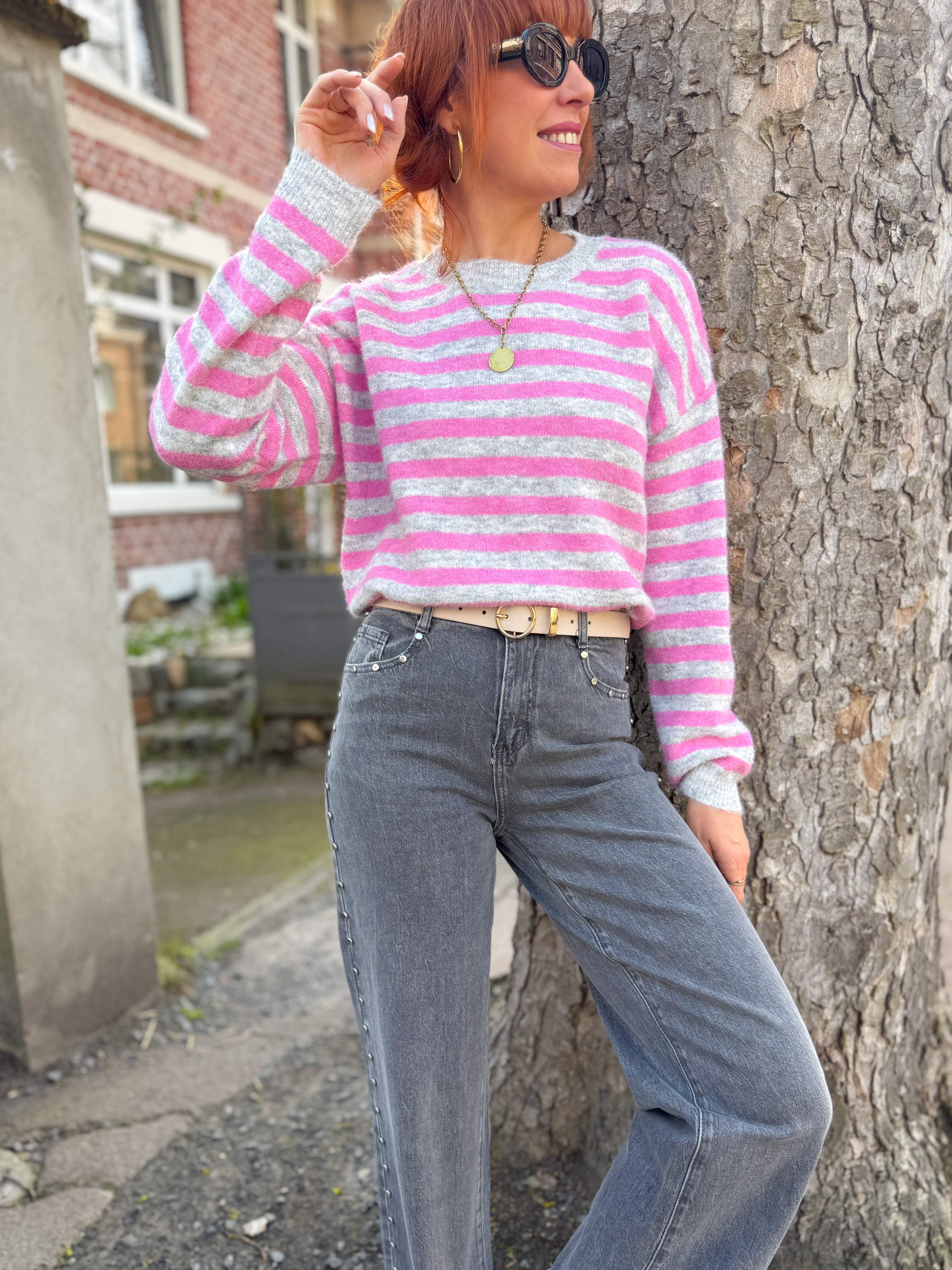 Jonny pull rayé rose/gris