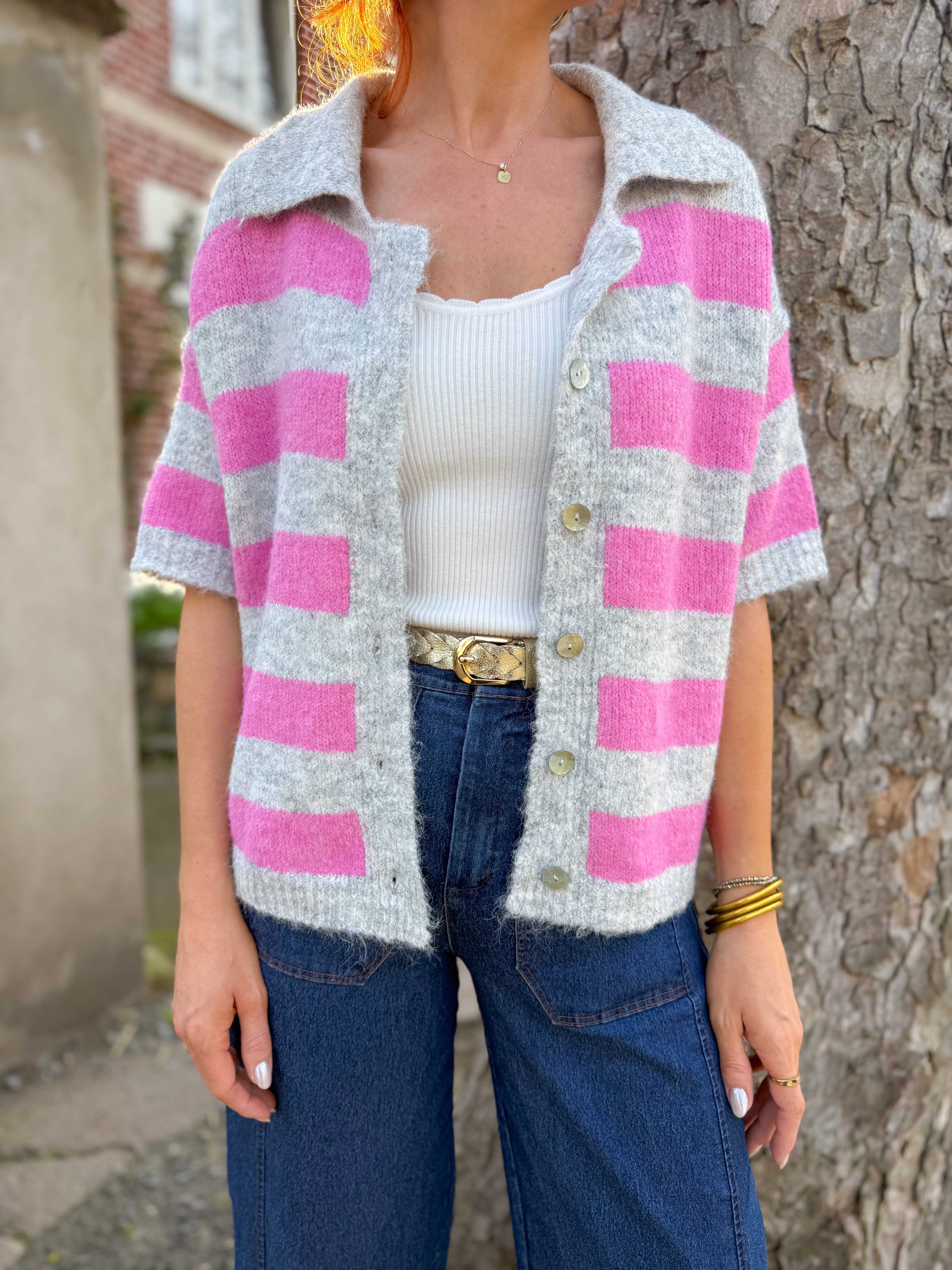 Jonny gilet rayé rose/gris