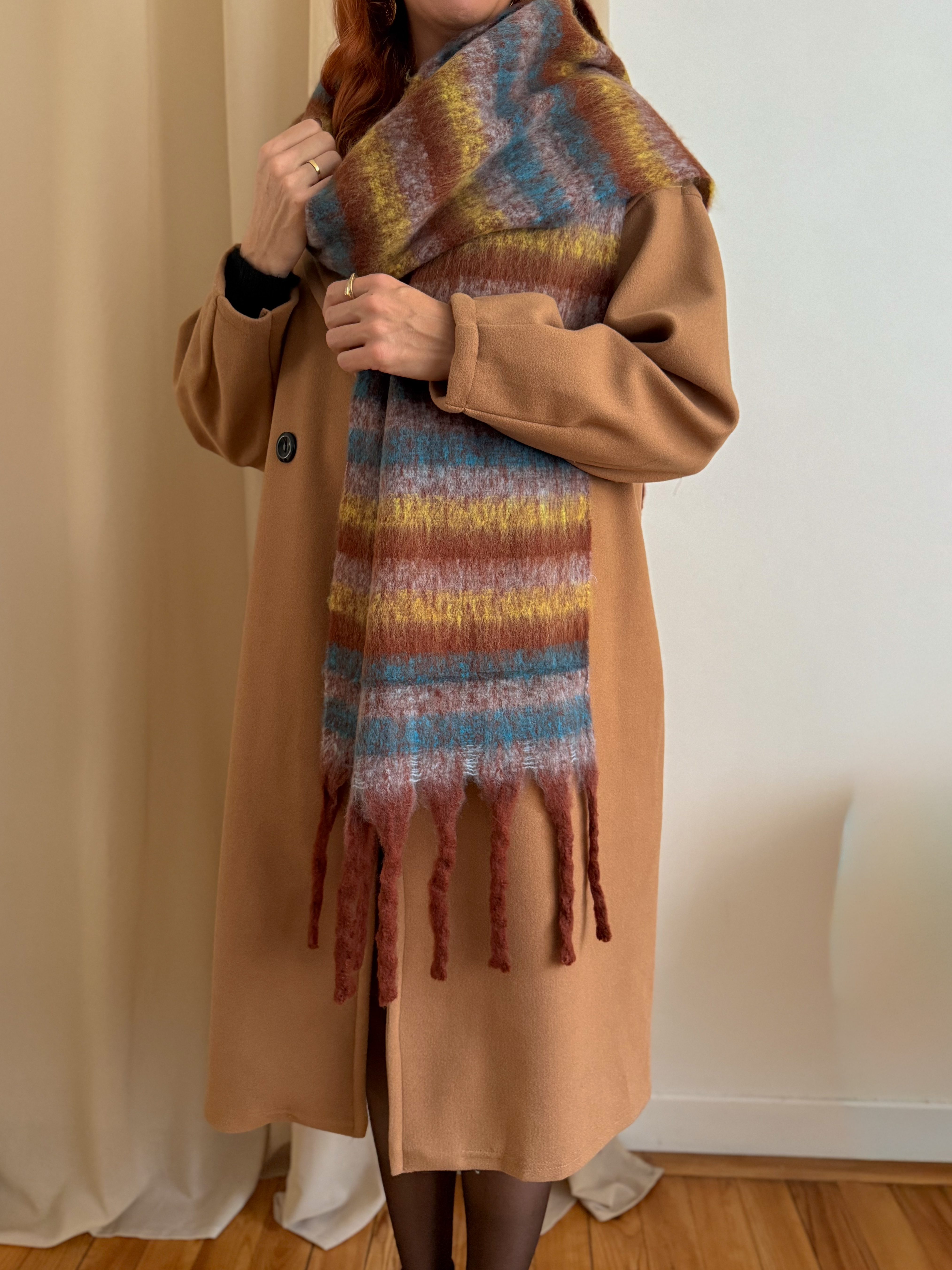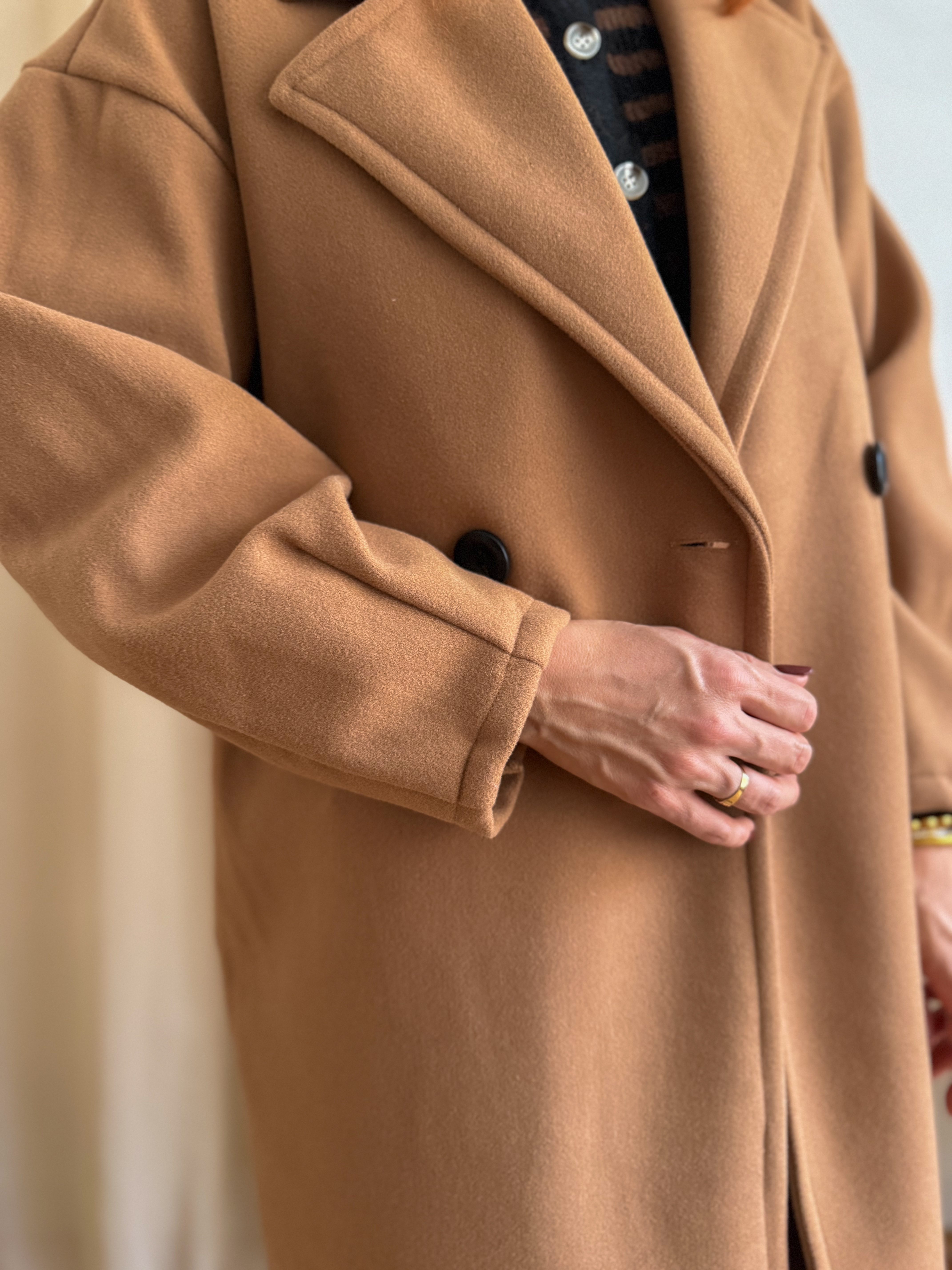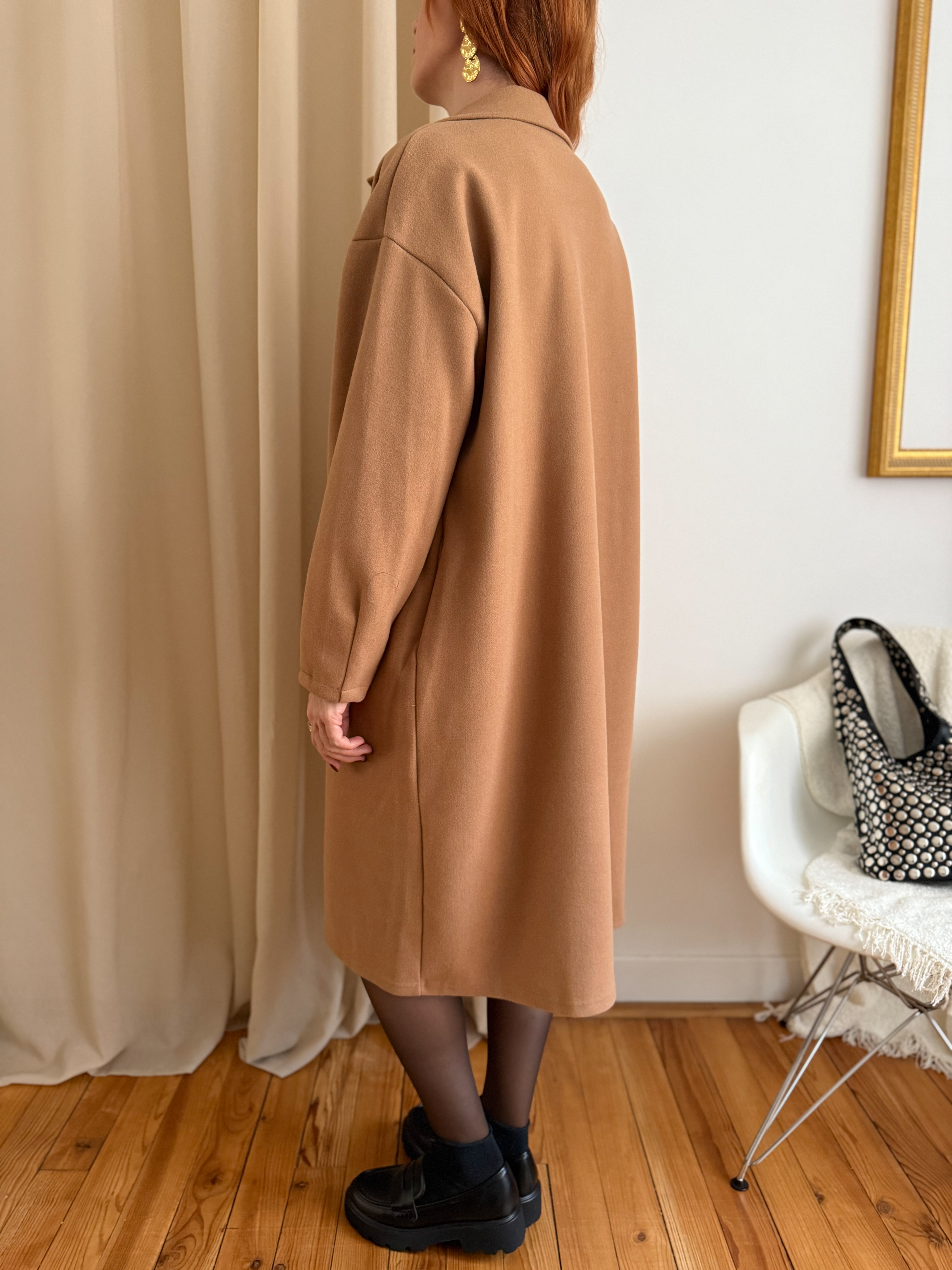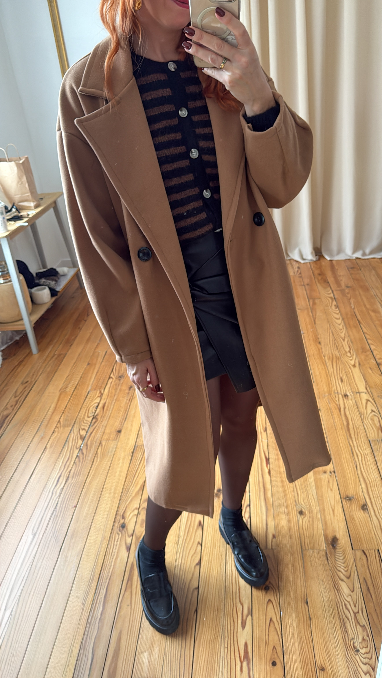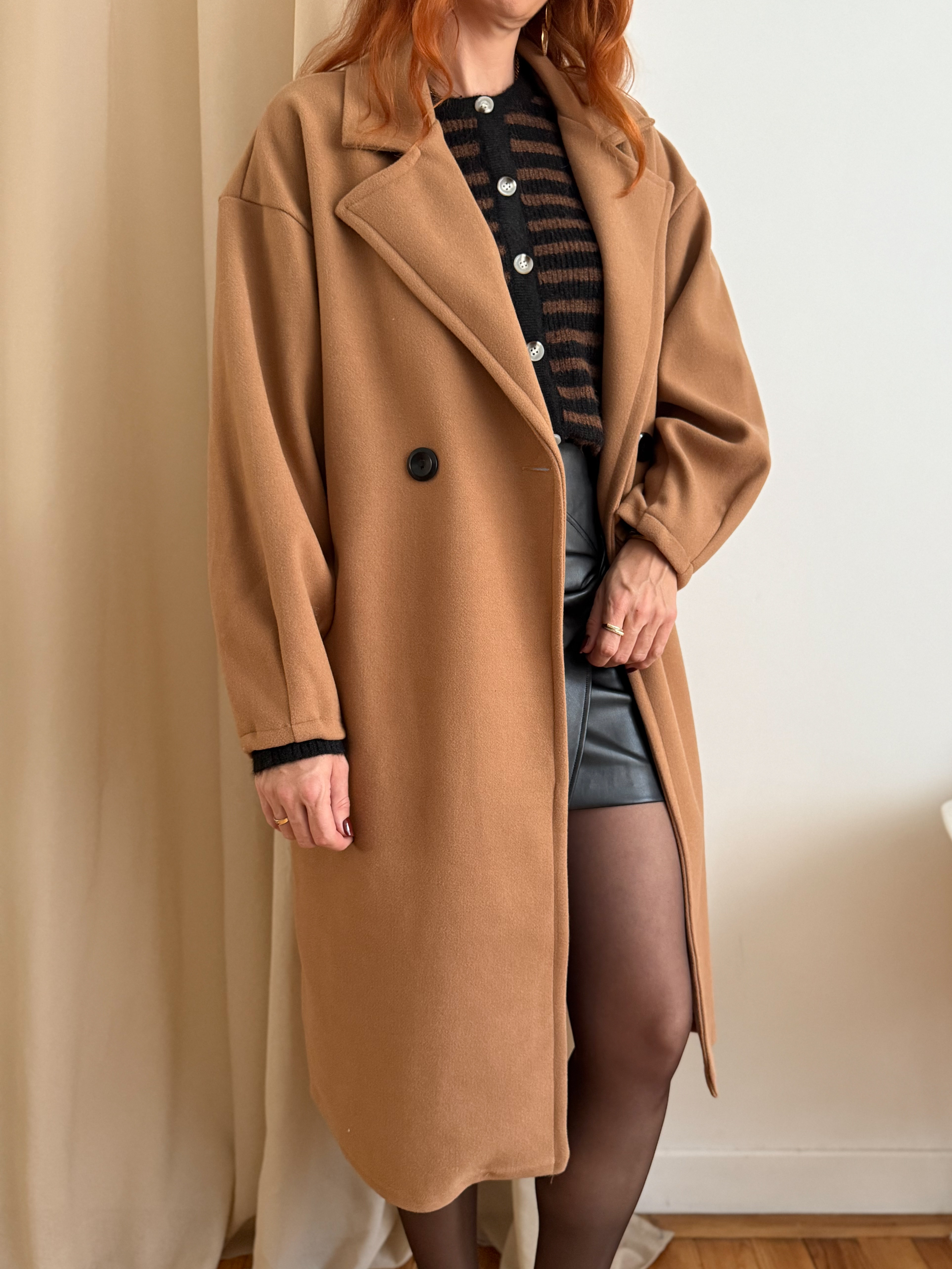 Avec sa coupe droite et son coloris camel, il conjugue confort et allure avec brio.