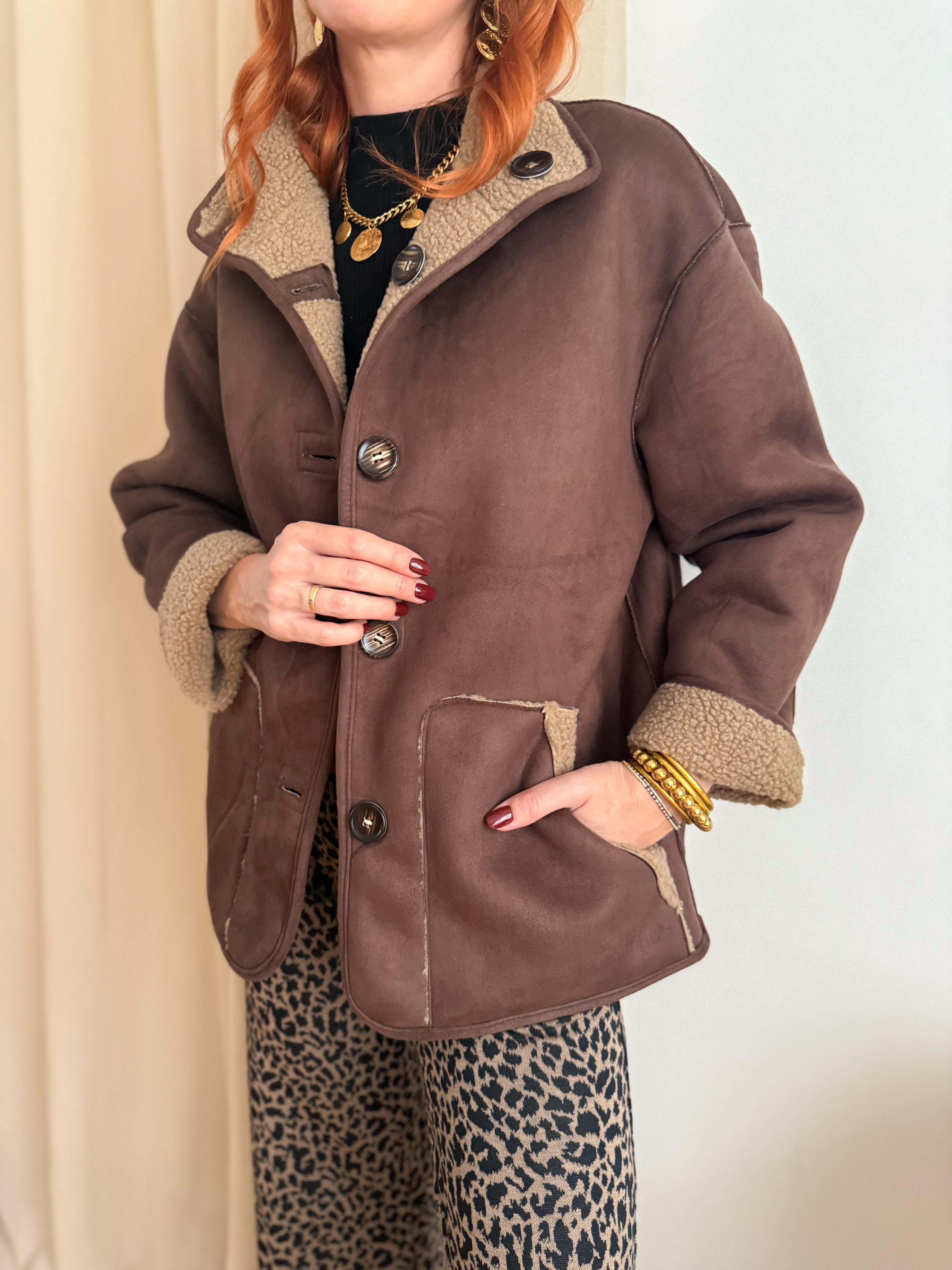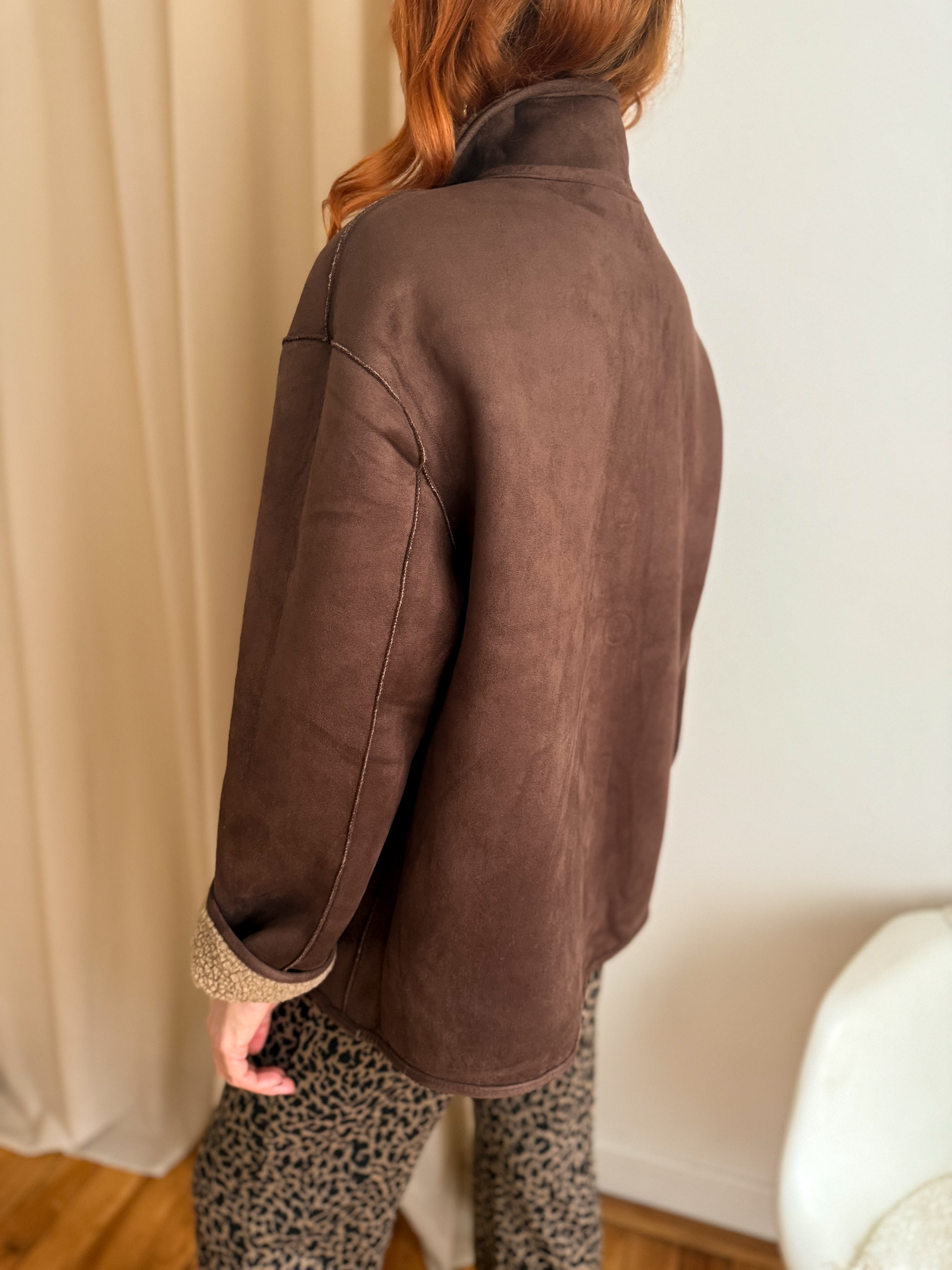 ➡️ Réversible, à porter côté suédine chocolat ou côté mouton retourné
