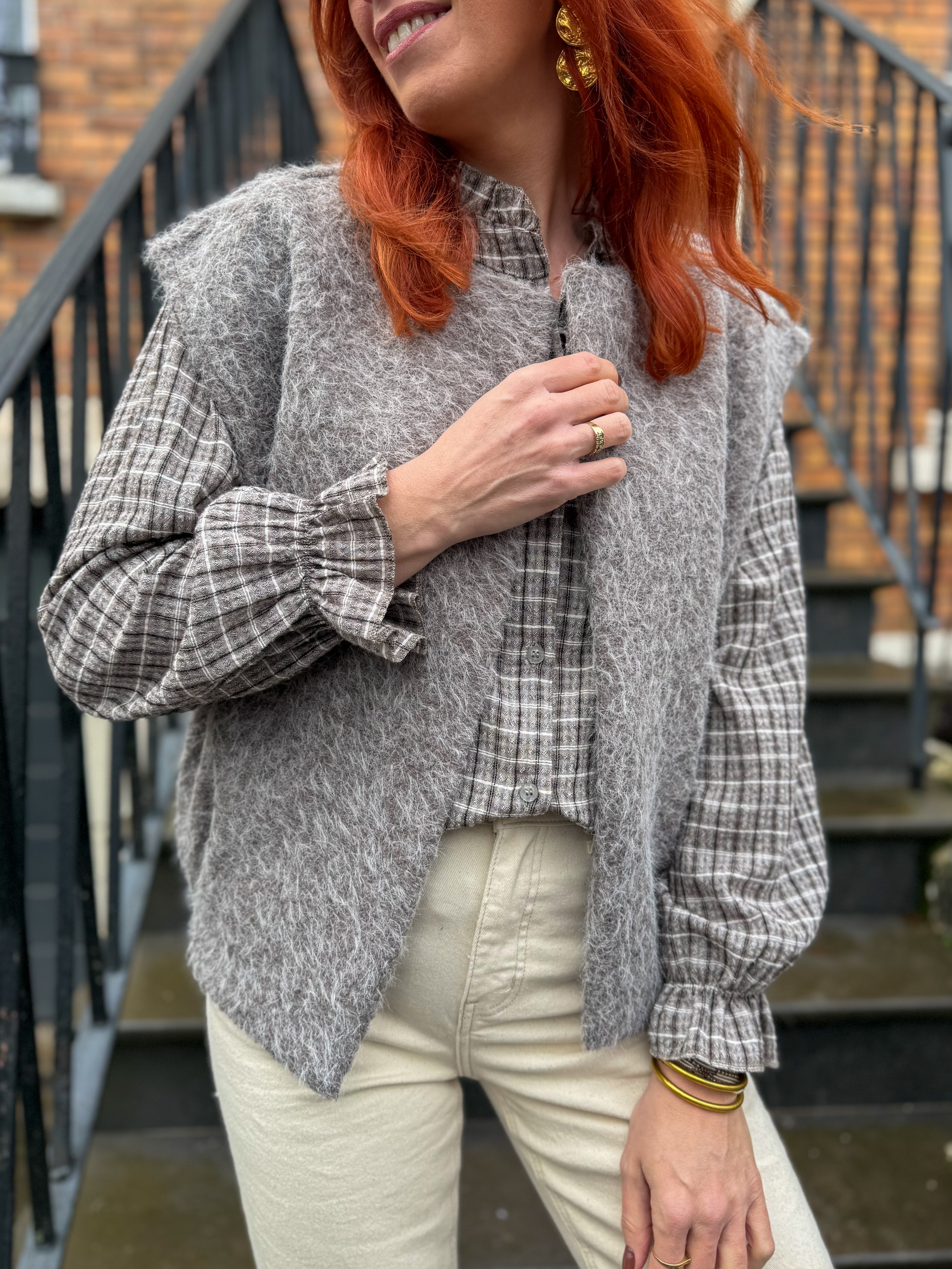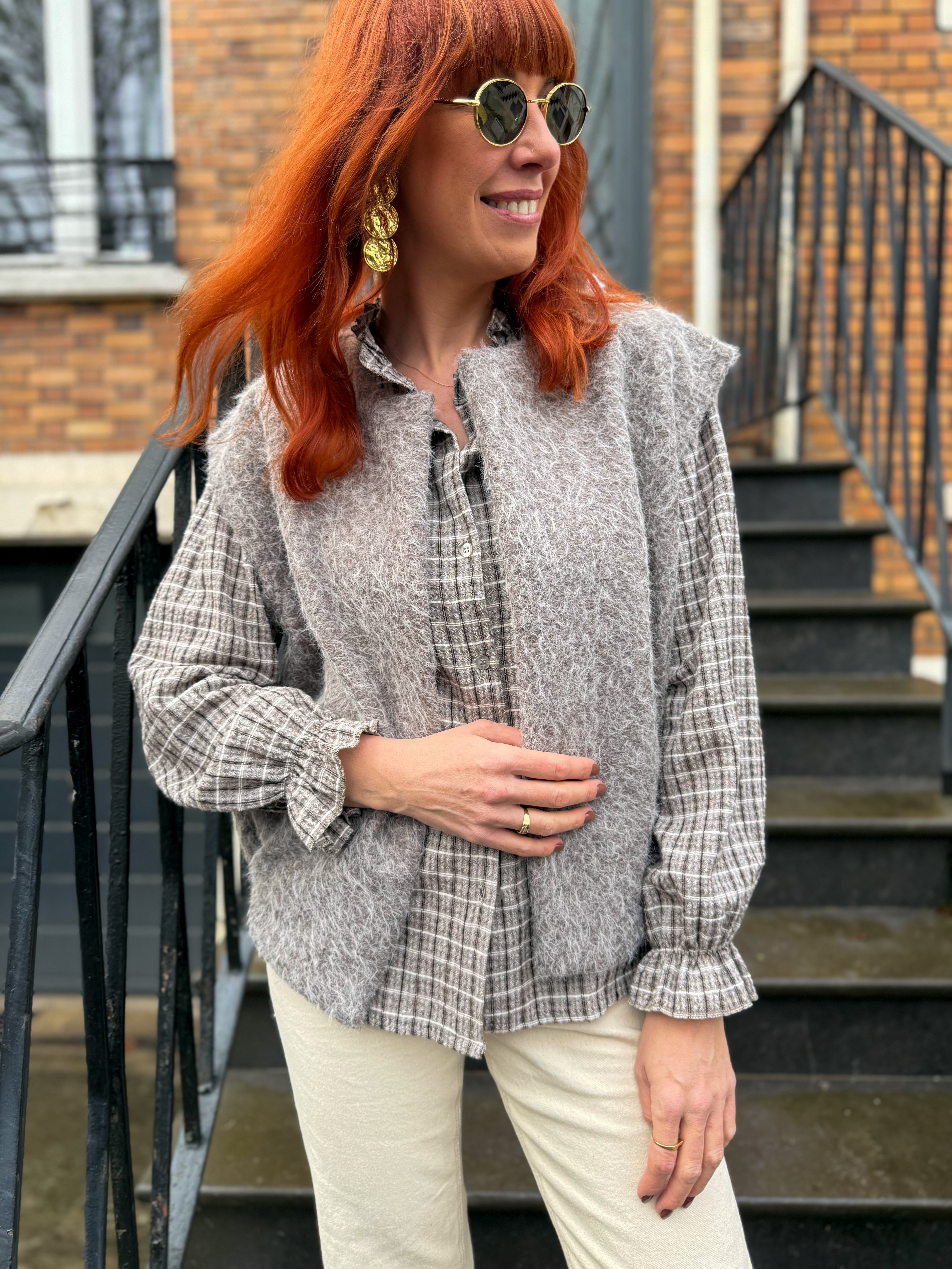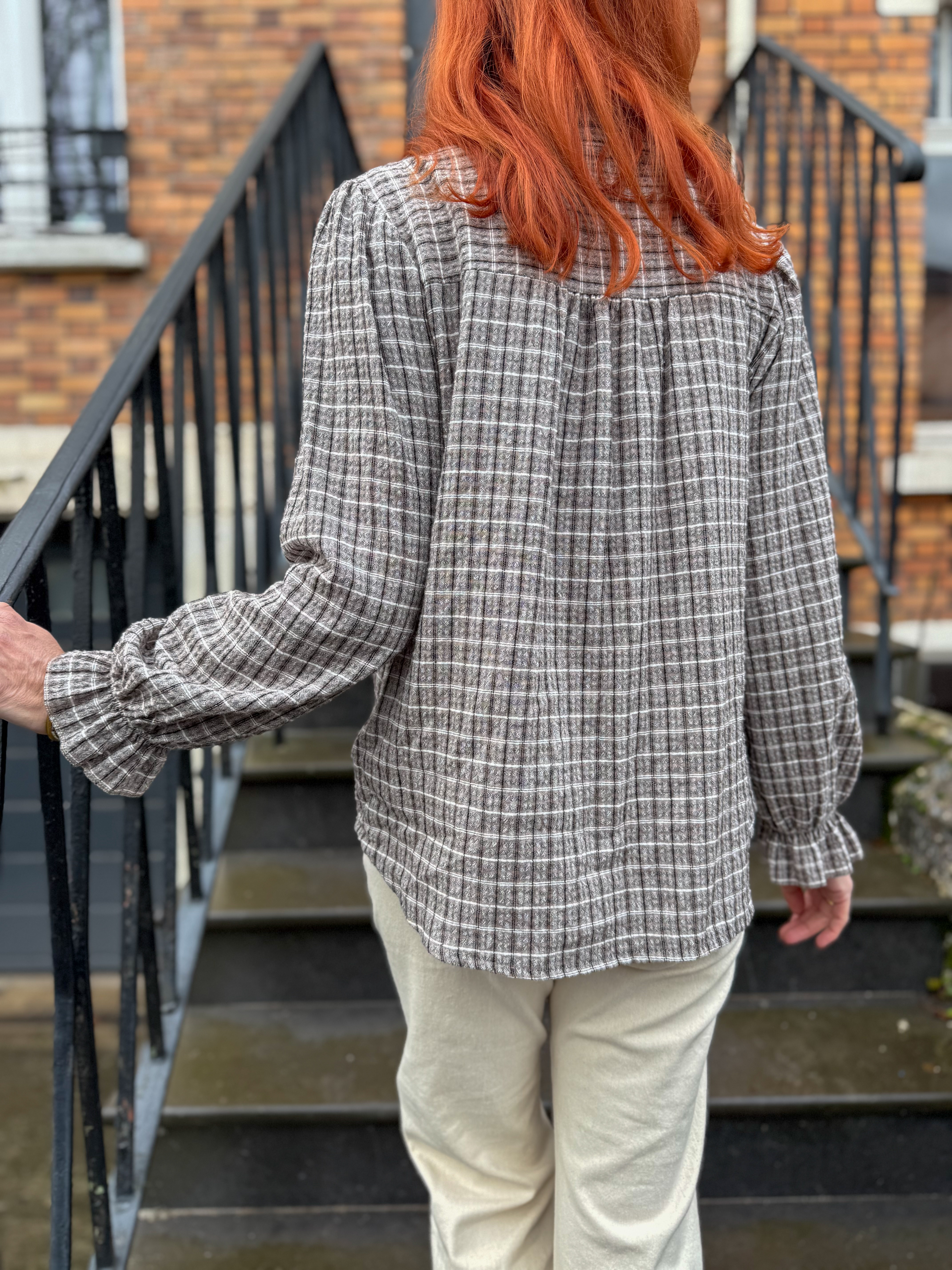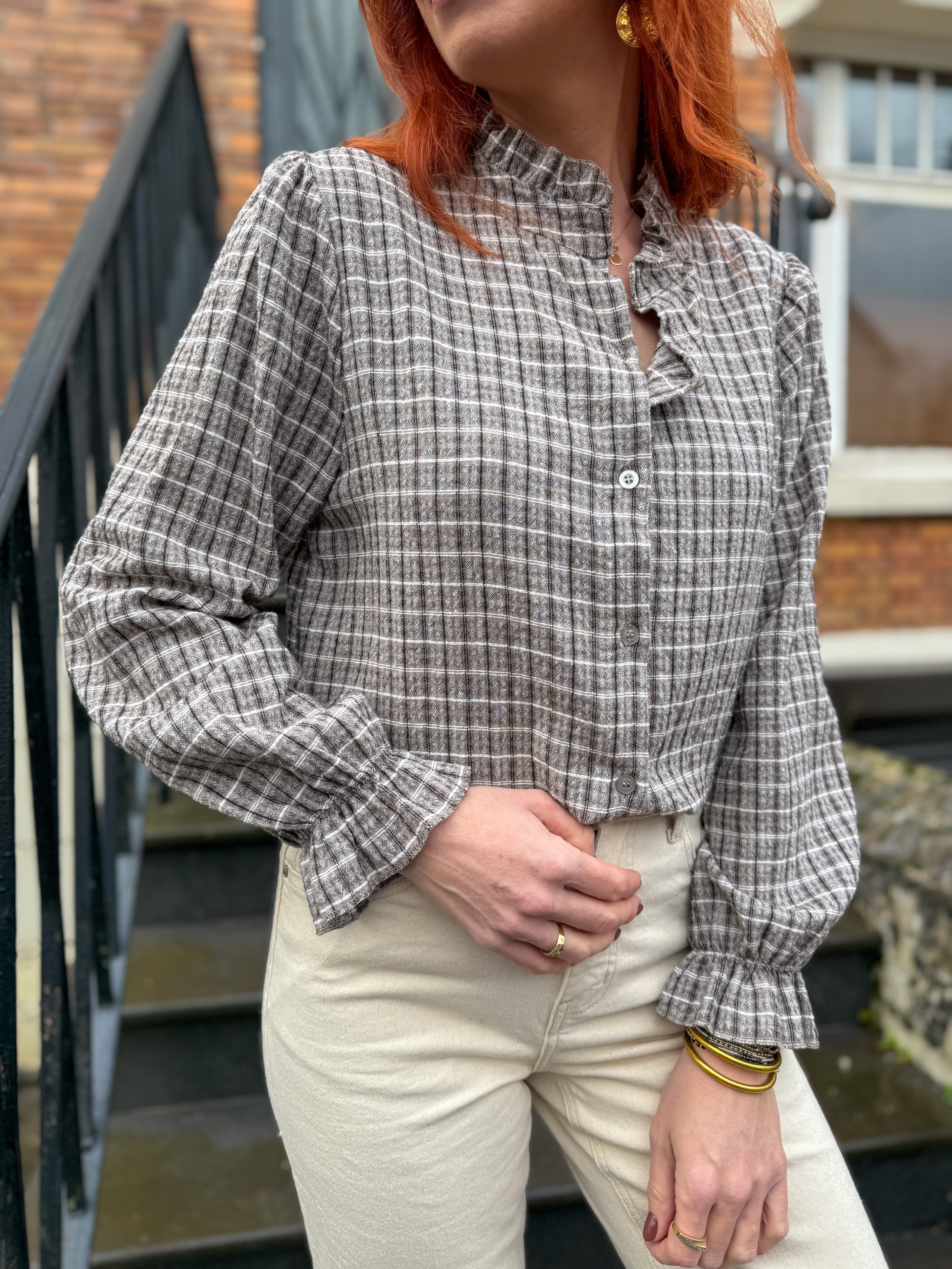 Notre blouse Agnès à carreaux est la pièce idéale pour celles qui aiment mêler douceur, caractère et intemporalité.
