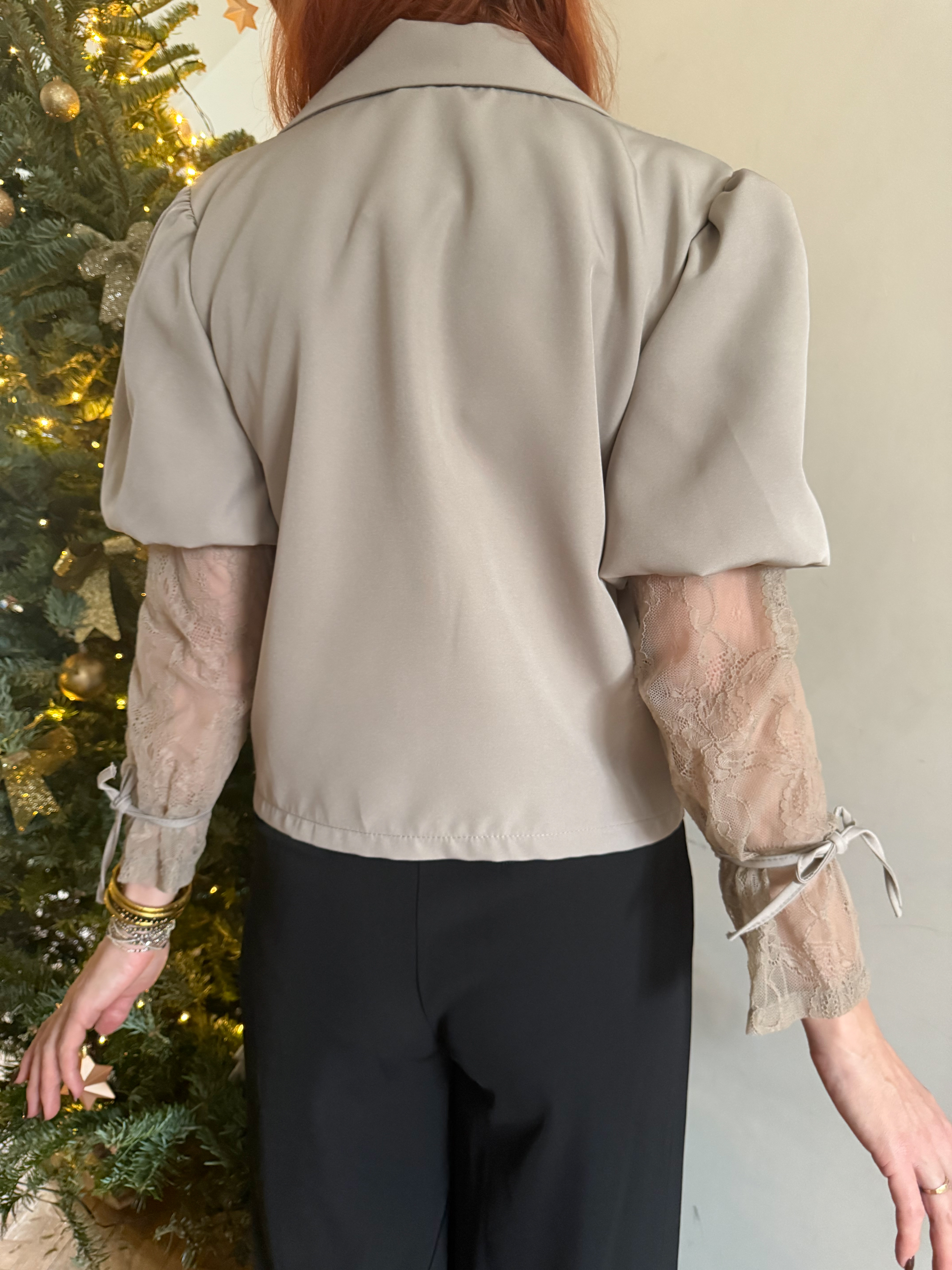 Avec ses manches en dentelle et sa coupe blazer modernisée, Albane apporte immédiatement ce twist élégant qui transforme une tenue simple en look sophistiqué