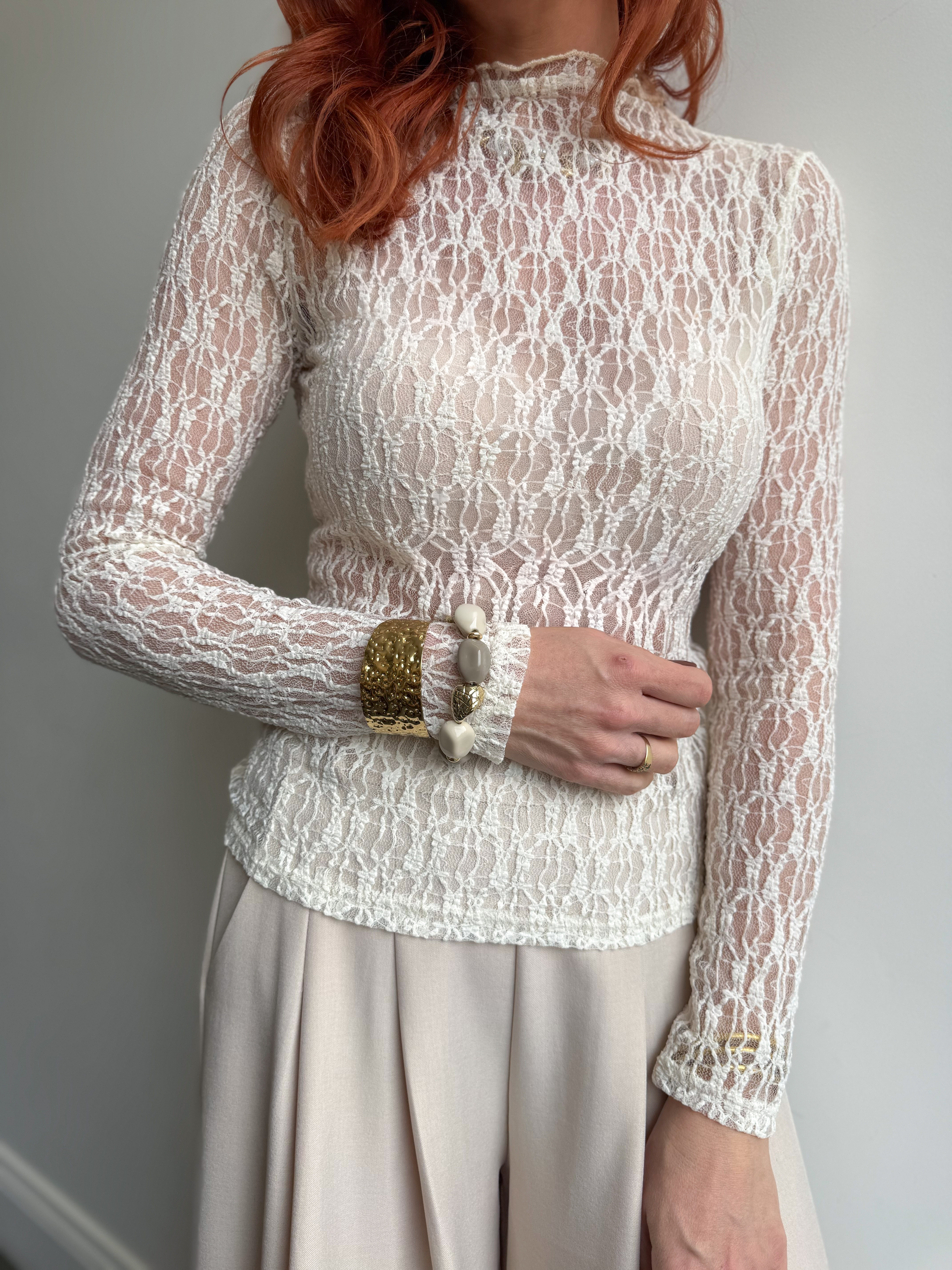 Notre top Alain en voile écru séduit par sa transparence délicate et son esprit ultra féminin, parfait à porter seul ou sous un pull.