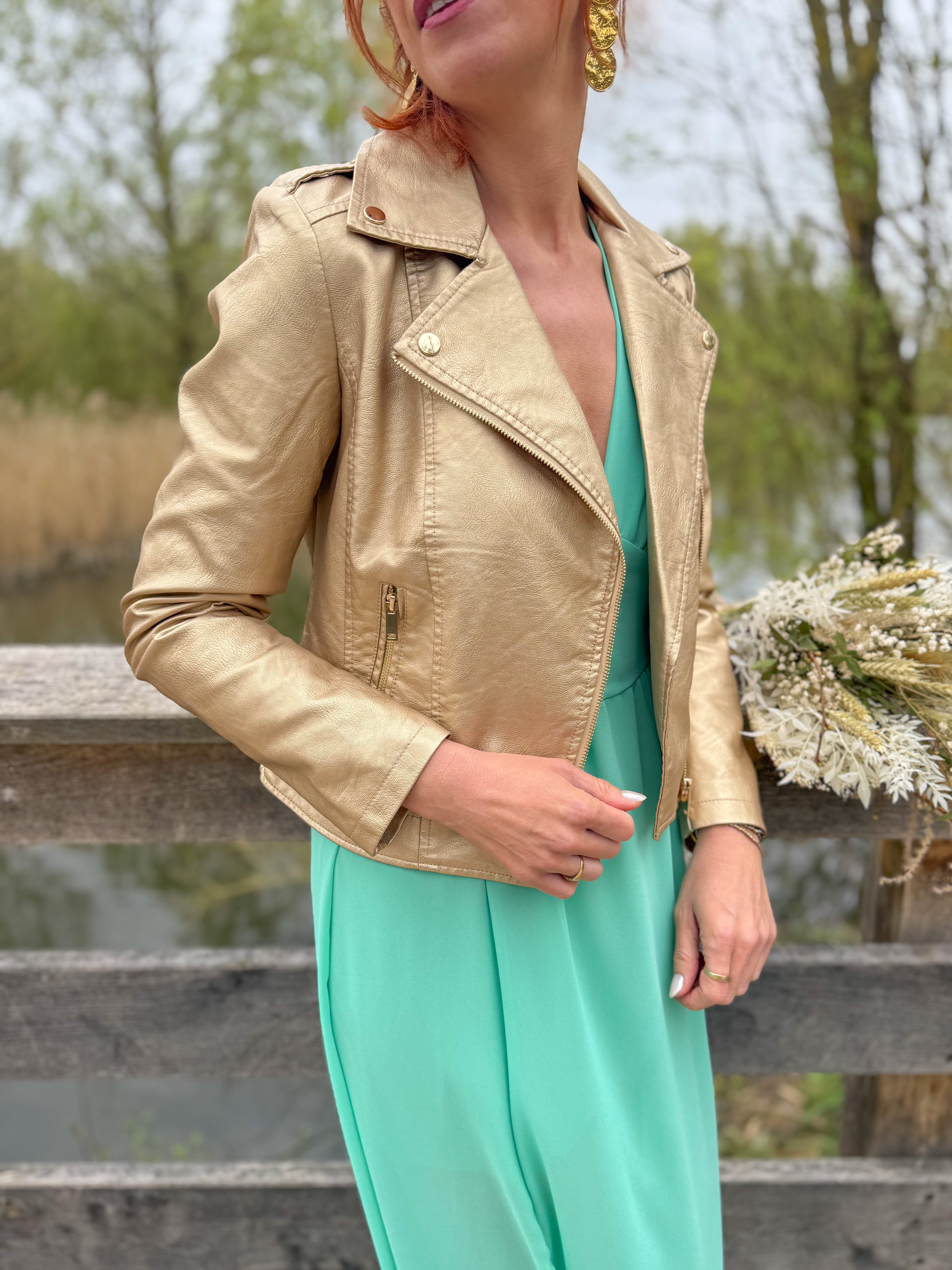 Et pour un look plus habillé, on adore l’associer avec nos sandales Selena dorées à talons pour une allure élégante