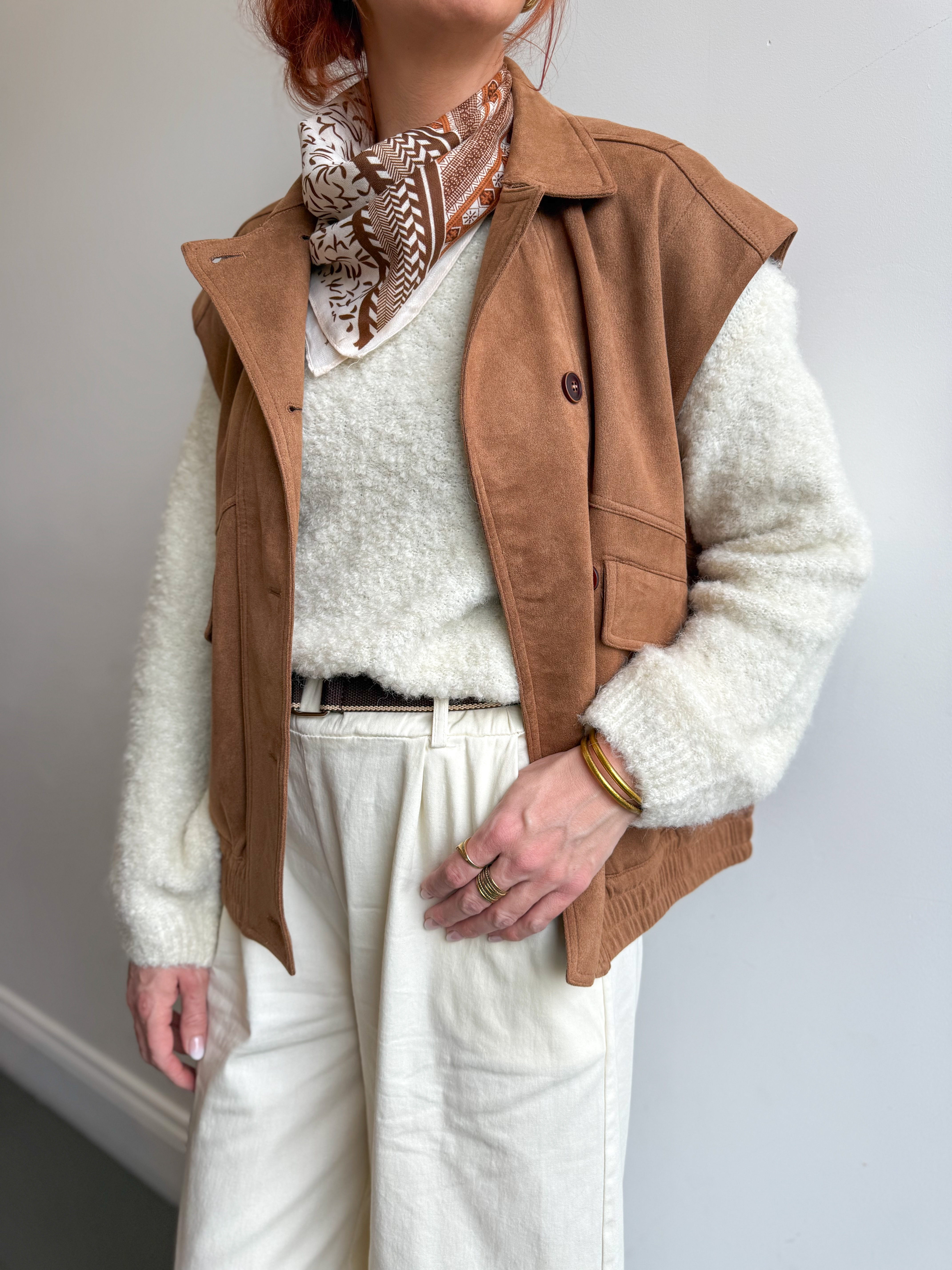 👉 À porter avec une maille écrue, un pantalon clair et une écharpe imprimée pour un look naturel ✨