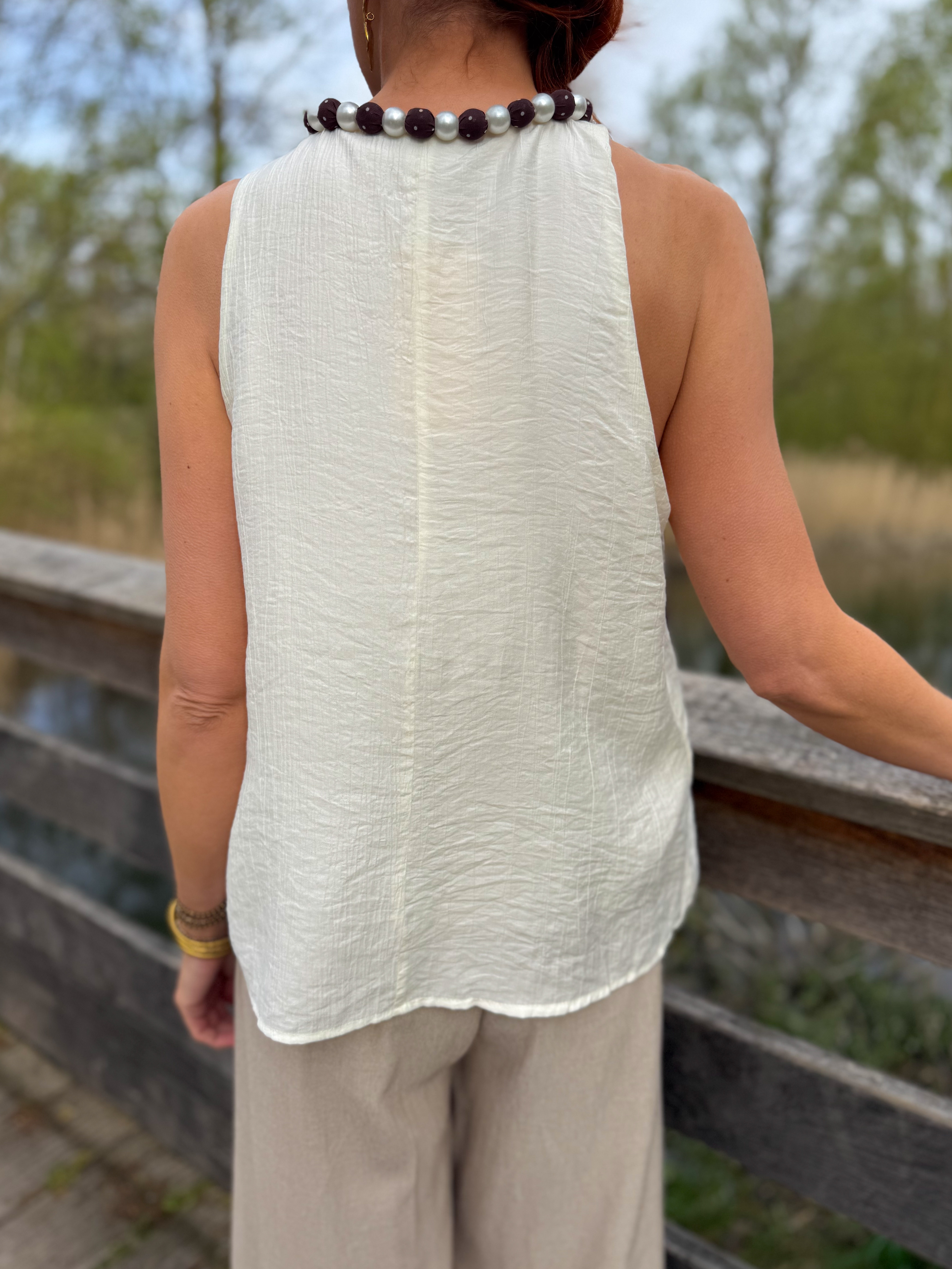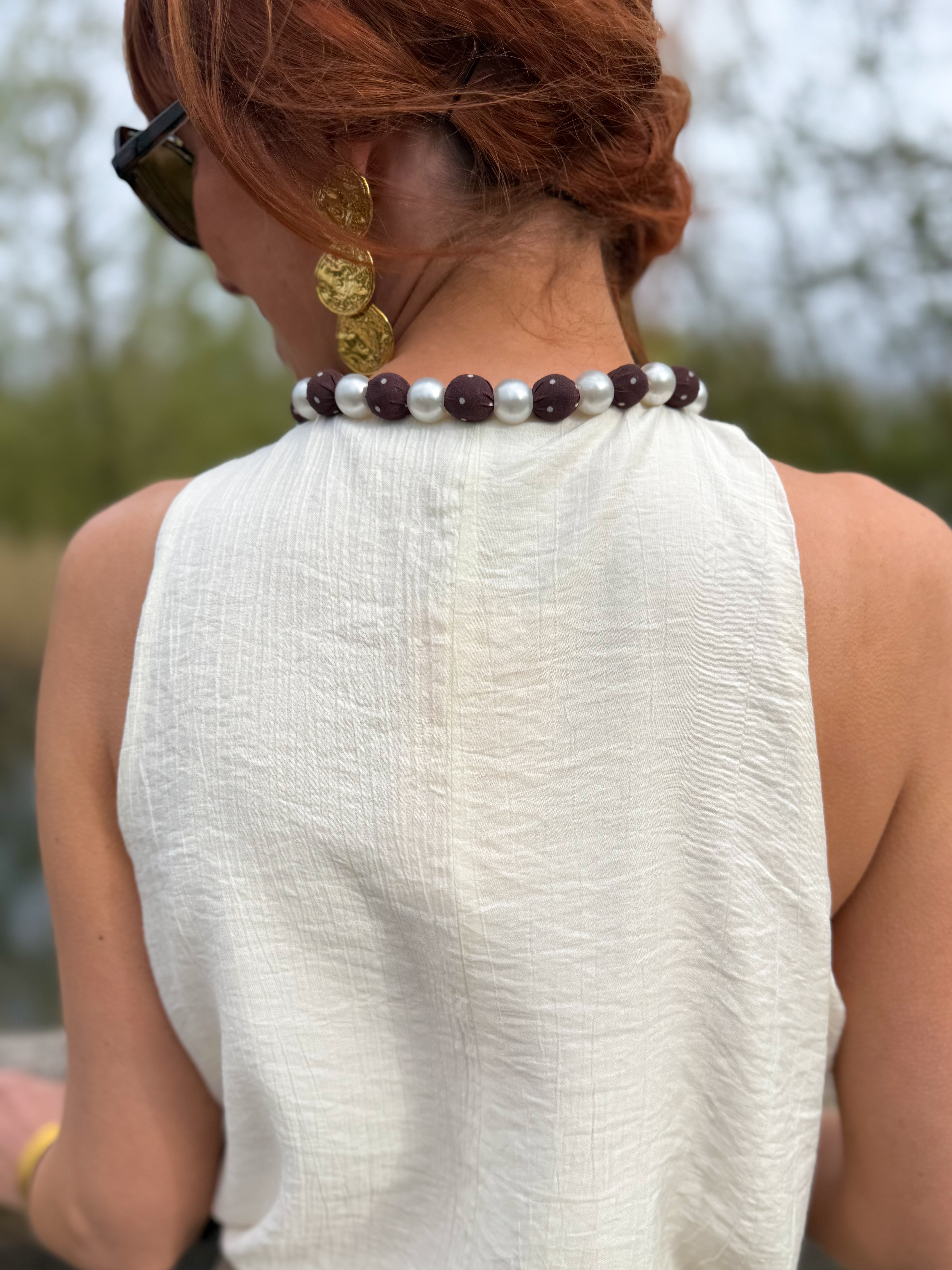 – Encolure ornée de perles pour un effet collier intégré