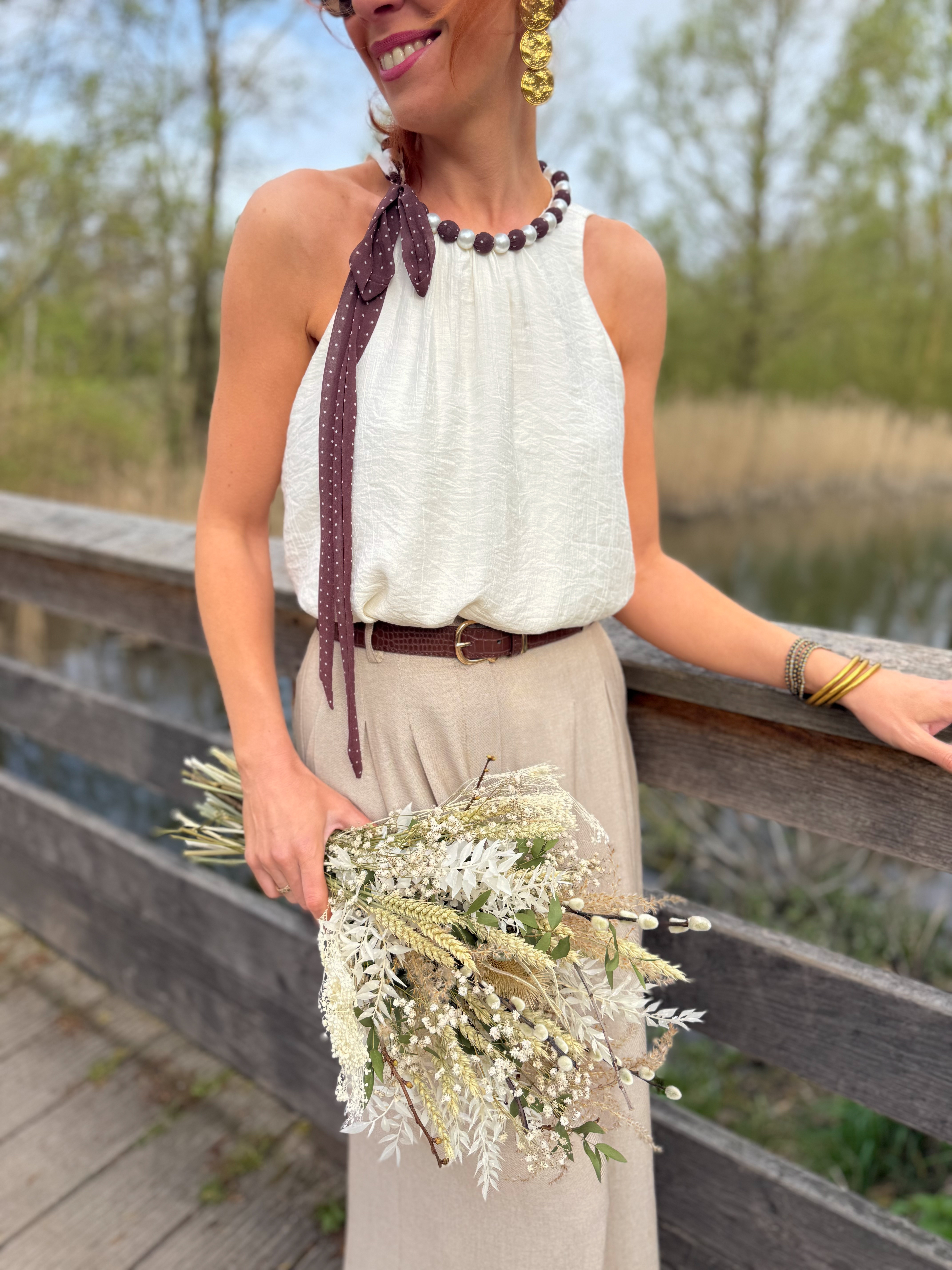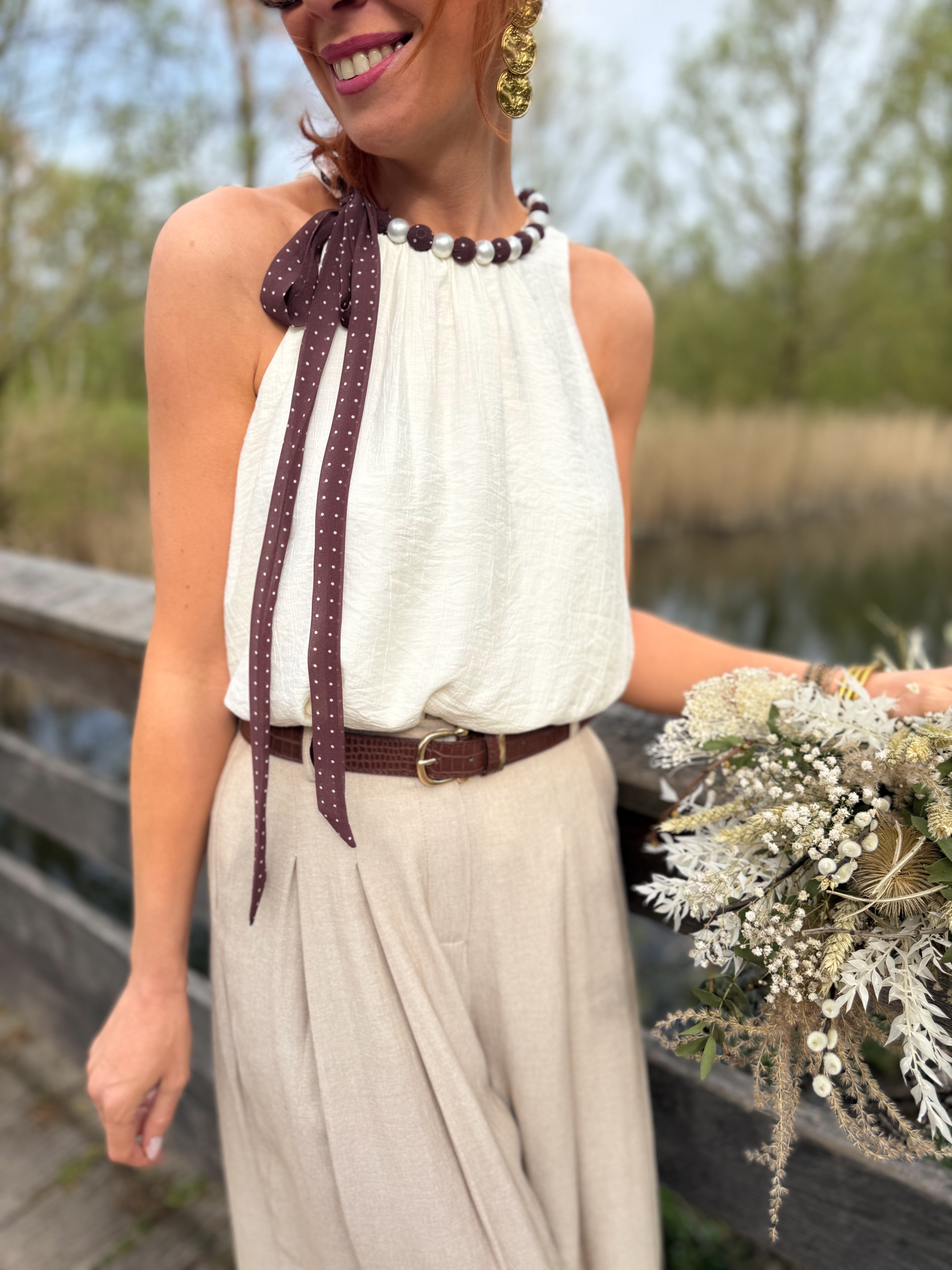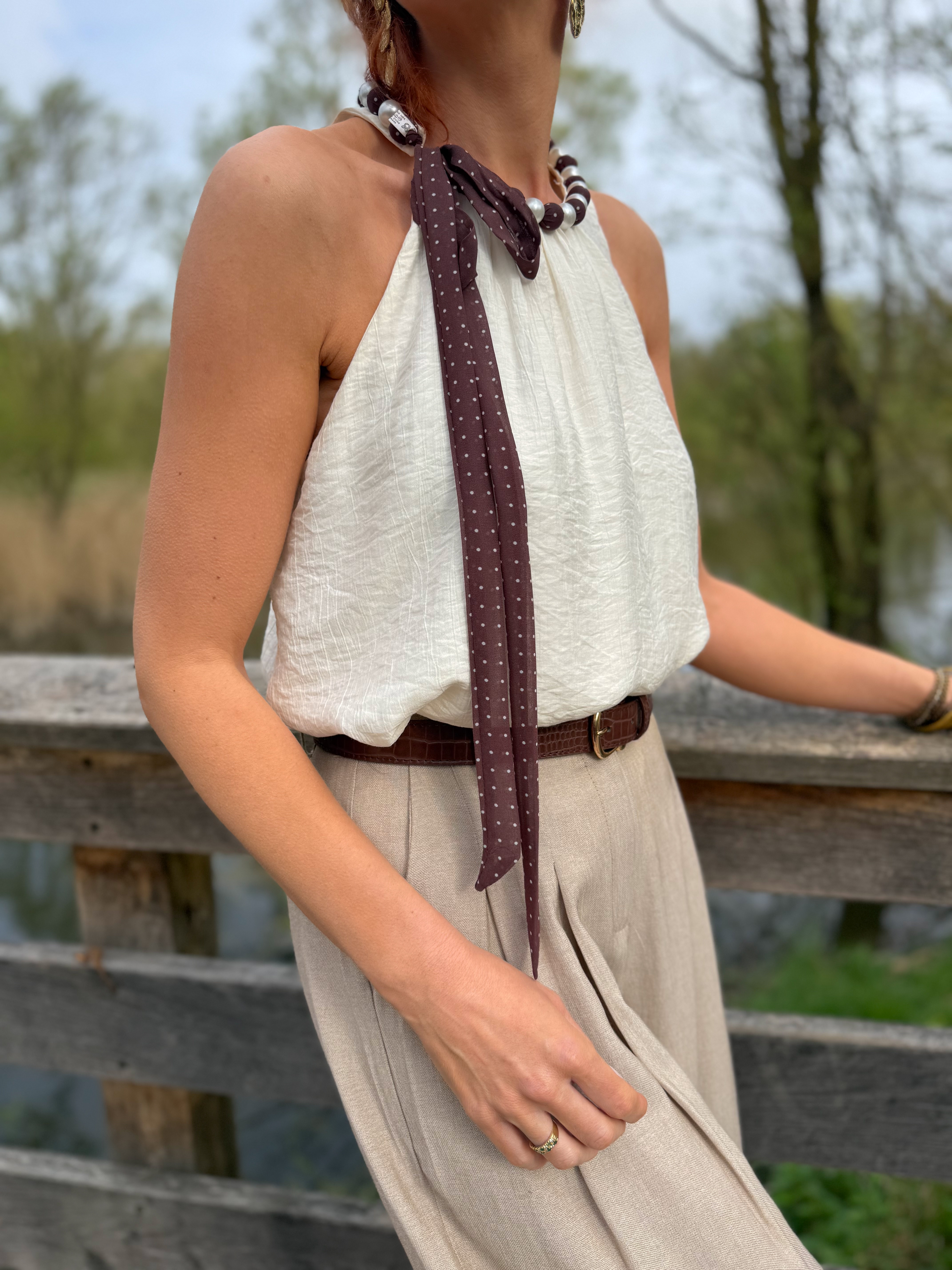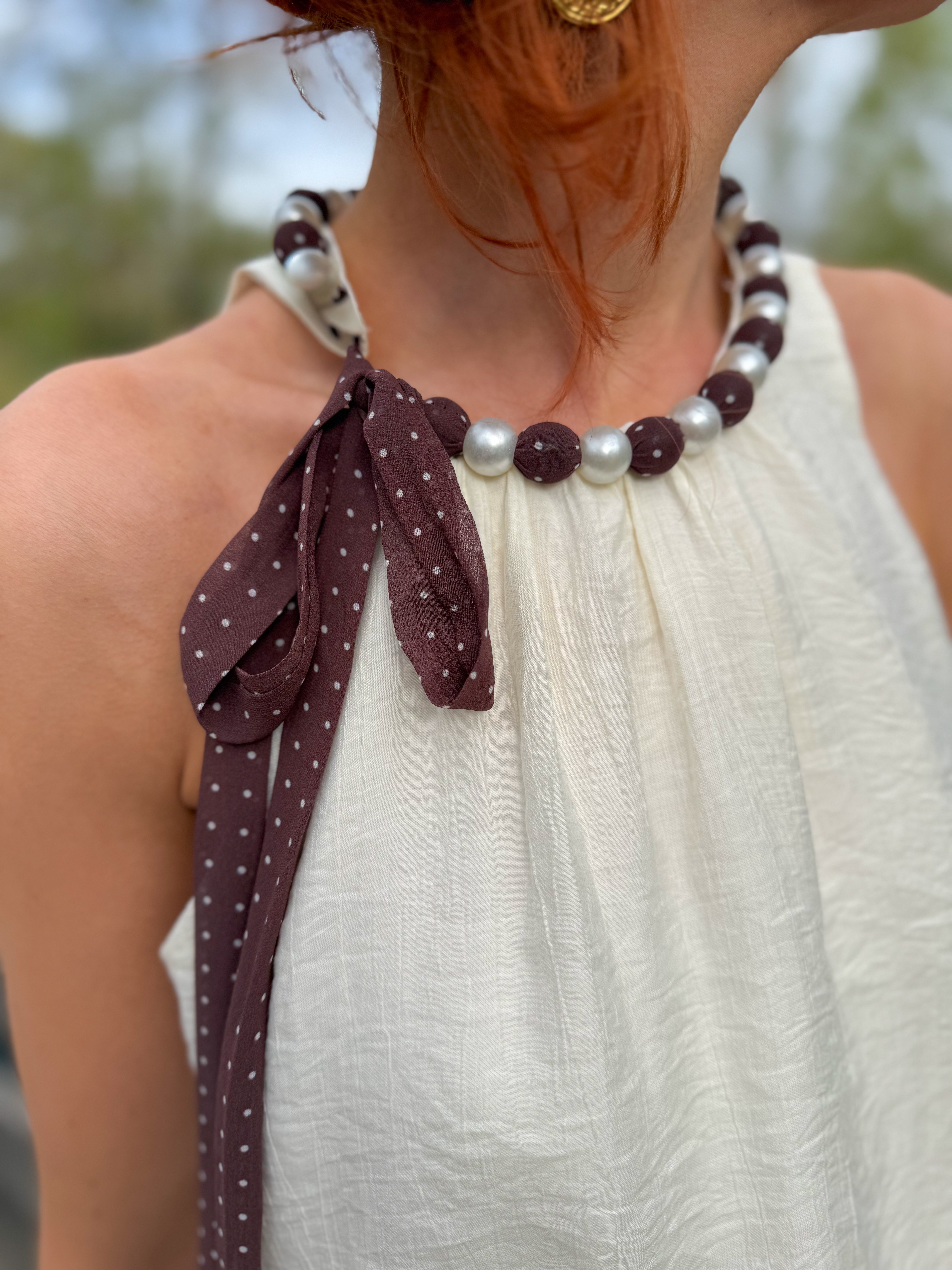 – Lien à nouer avec tissu fluide à pois