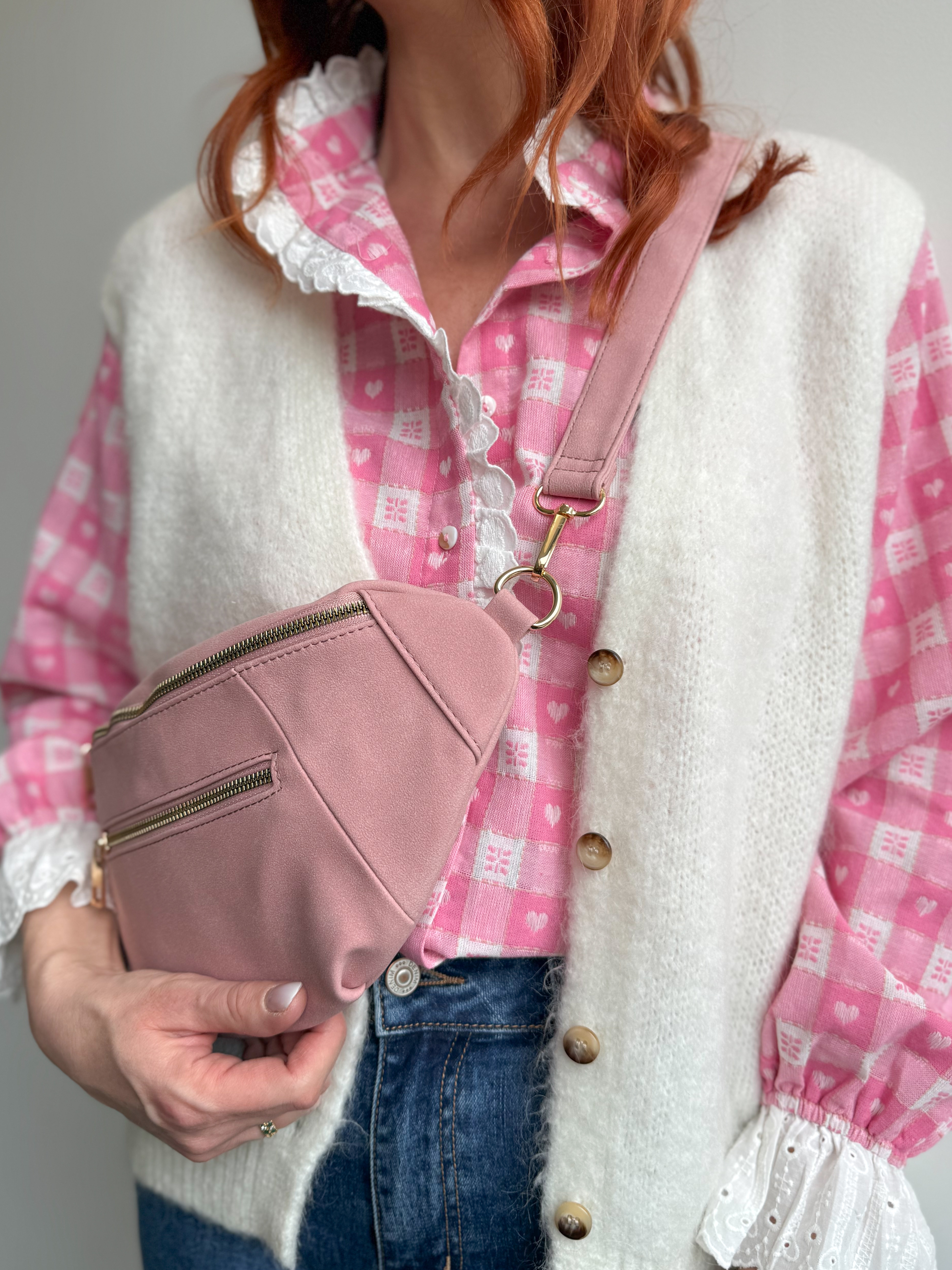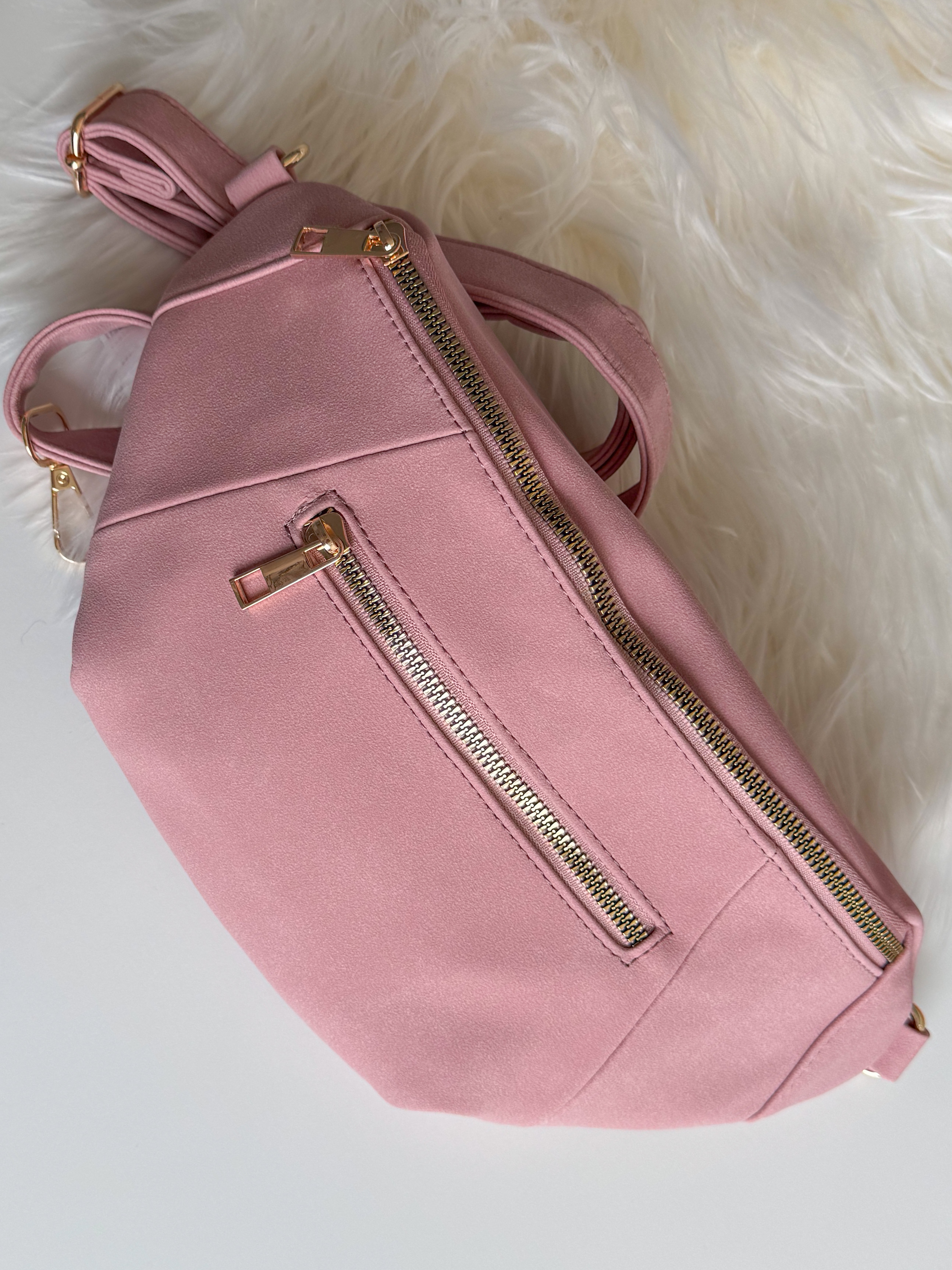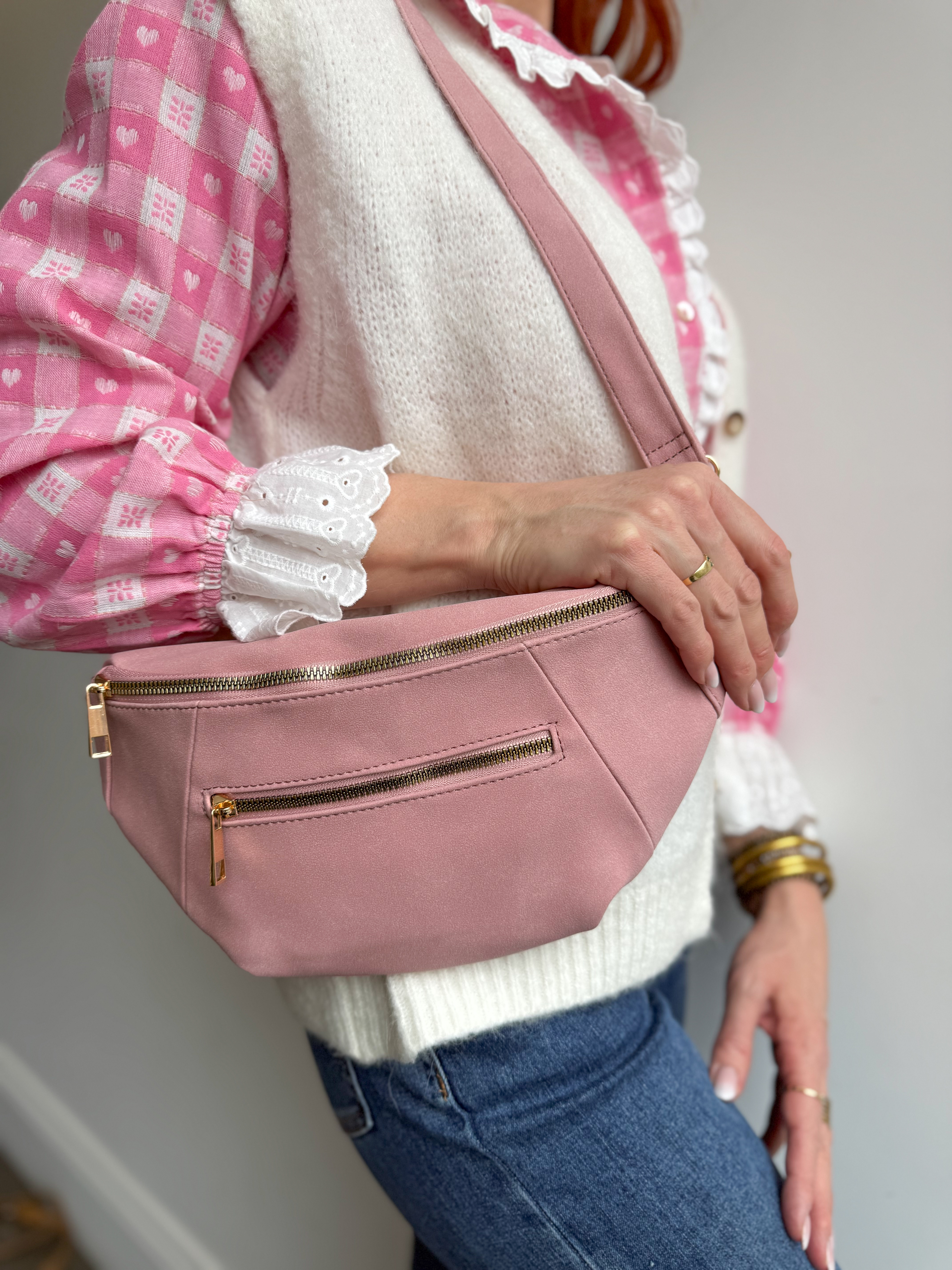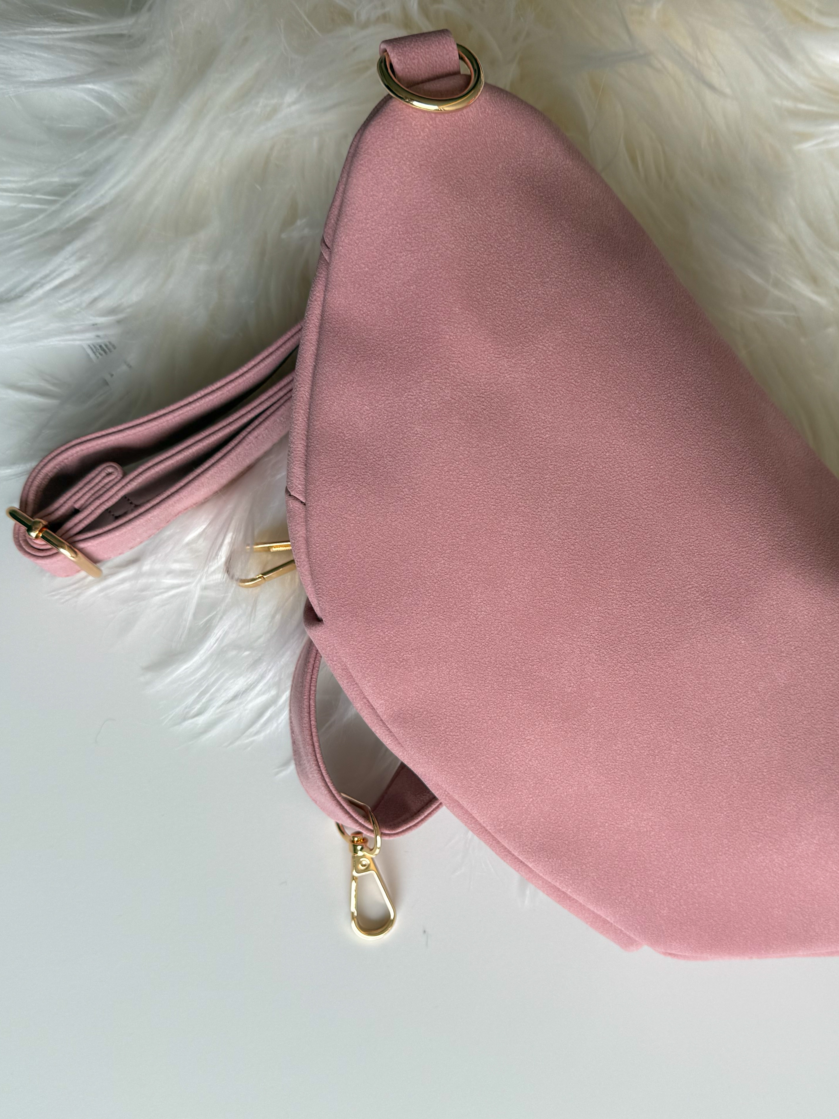 – Sac banane coloris rose, touché effet cuir doux