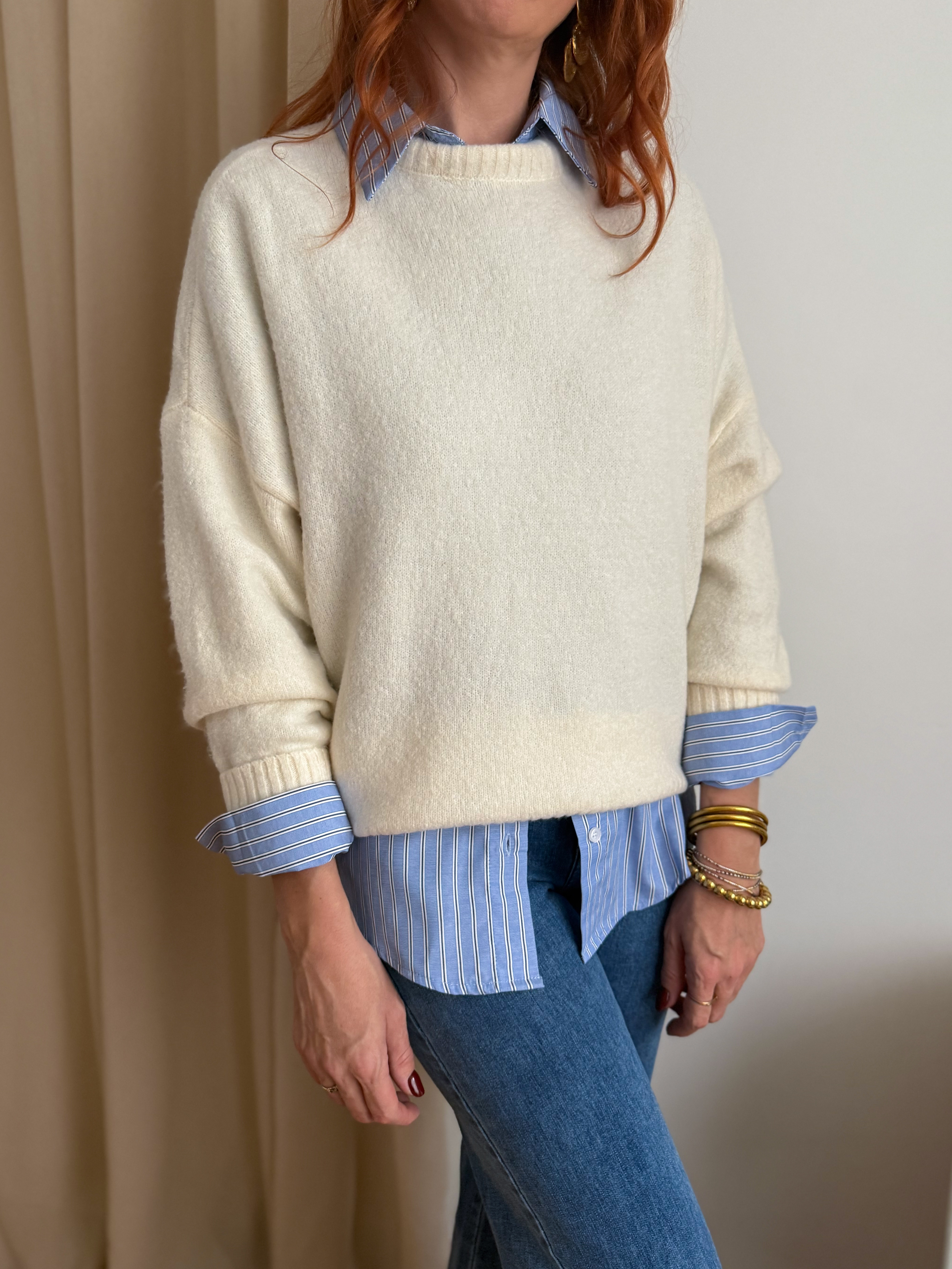 Notre pull Boom est un essentiel doux et lumineux, à adopter sans hésiter pour la mi-saison ☁️