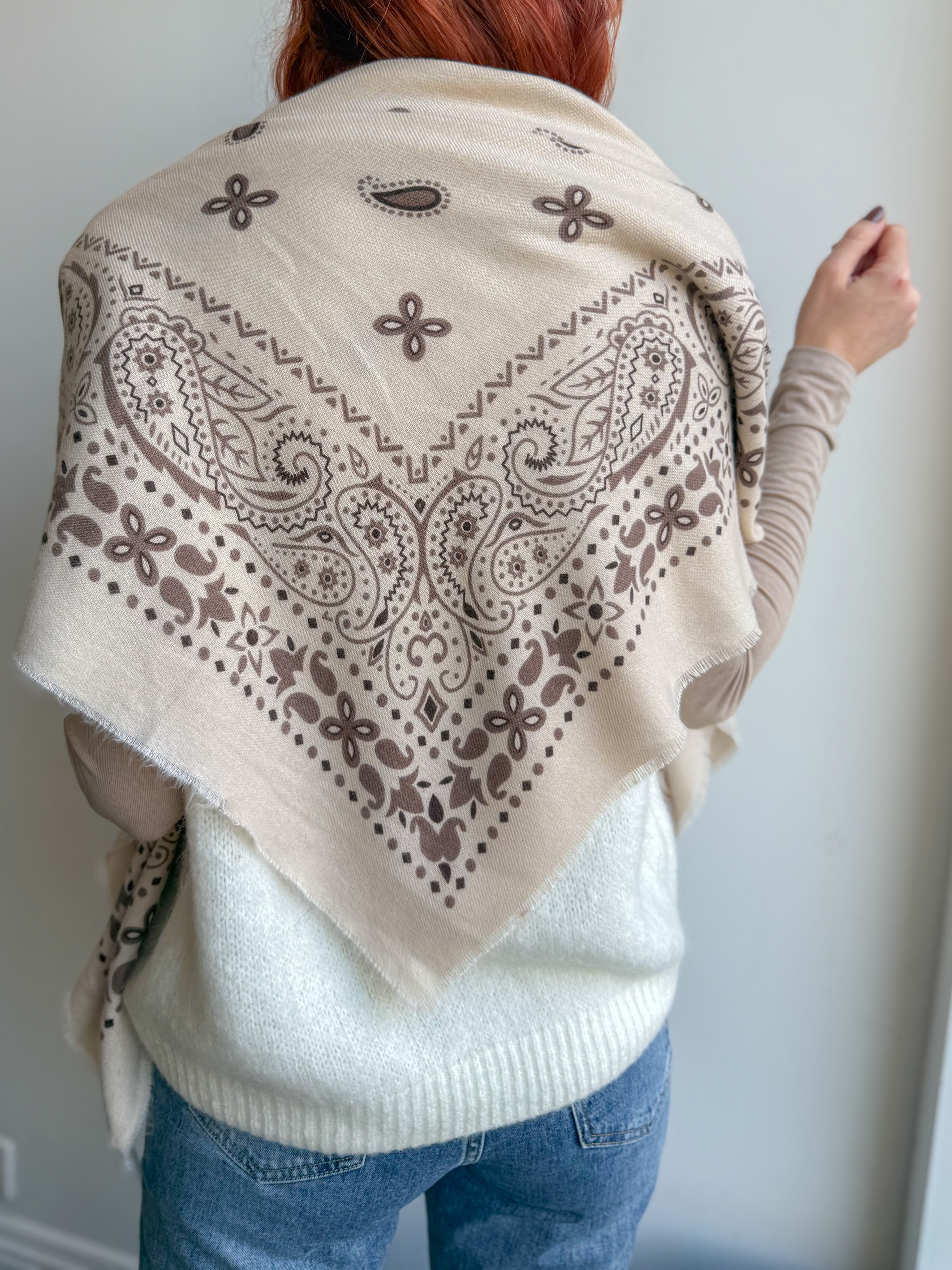 Notre carré en laine beige est l’accessoire parfait pour apporter une touche douce à vos looks du quotidien.