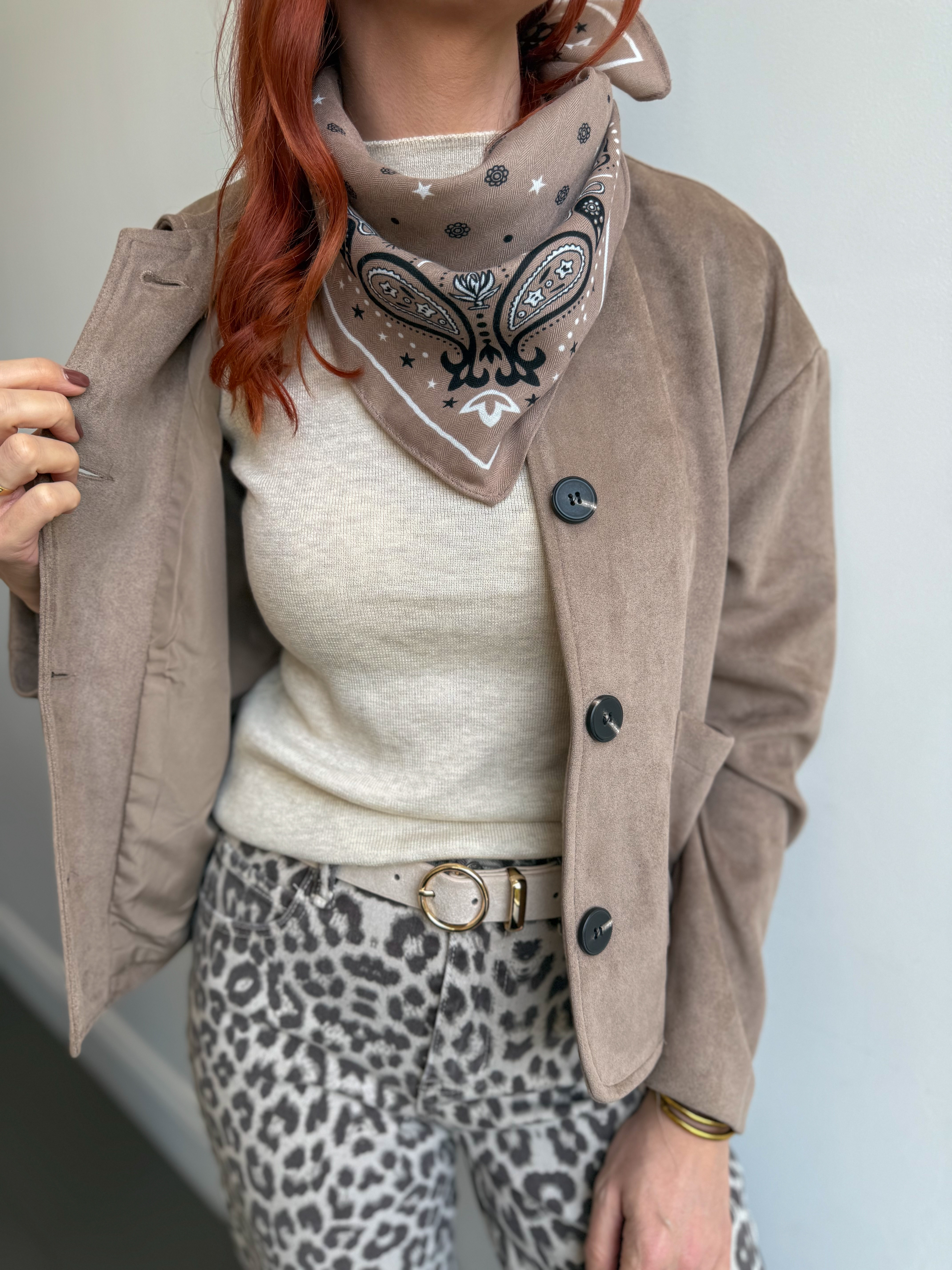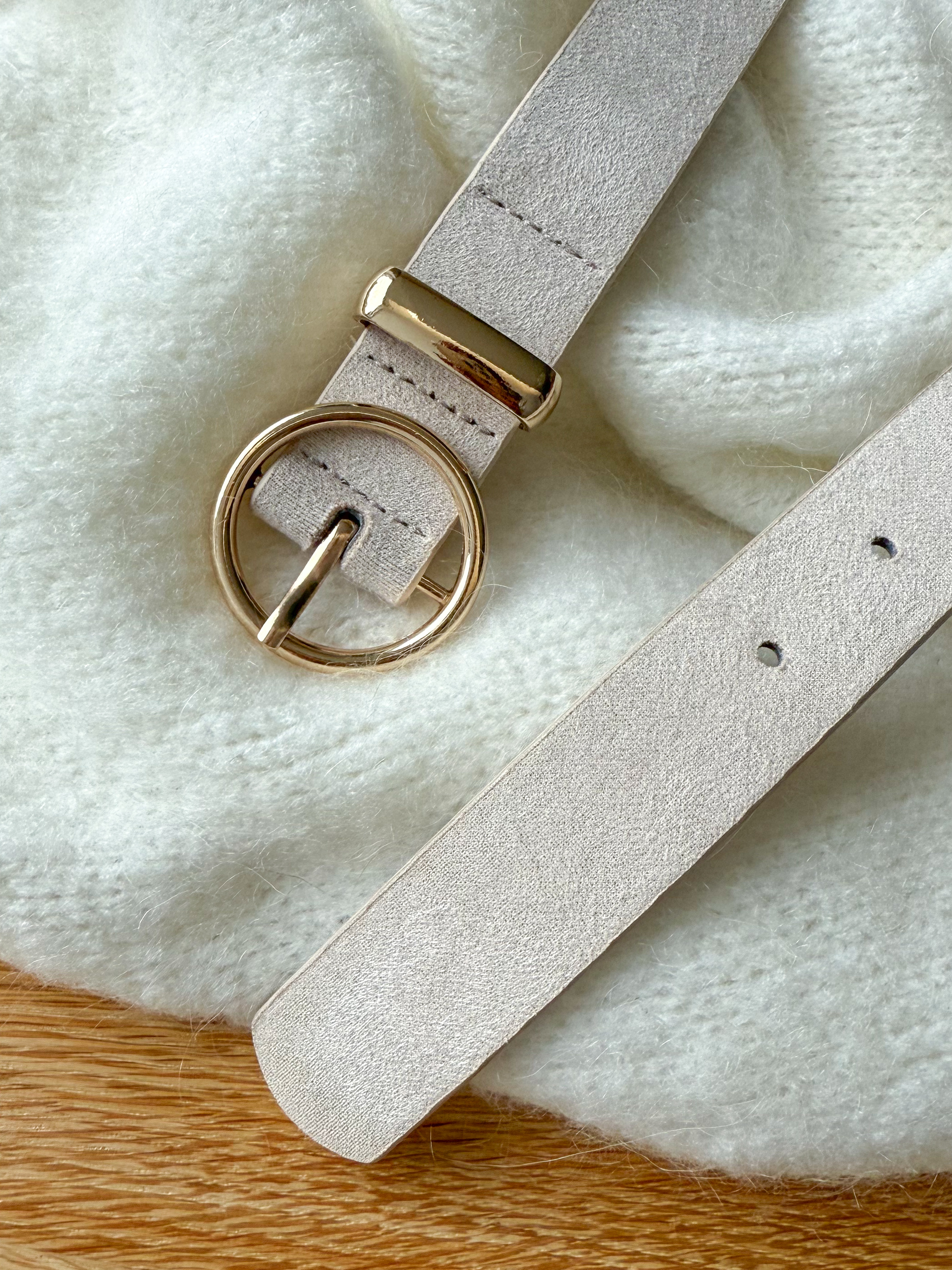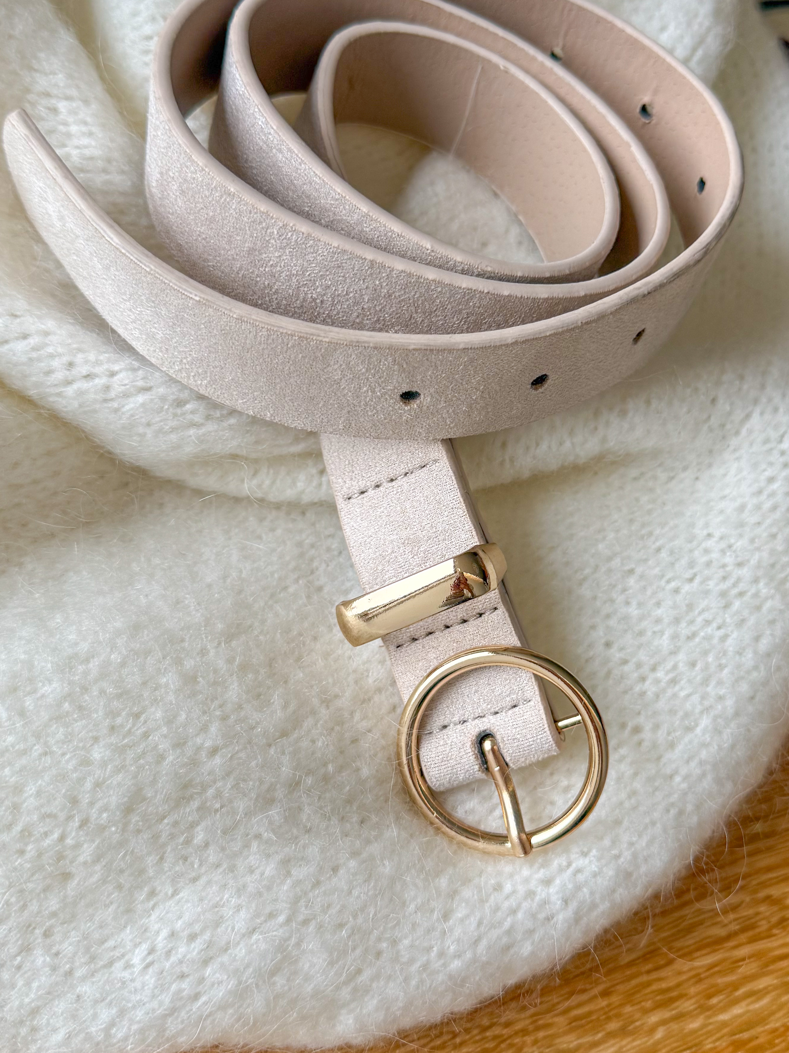 – Ceinture effet cuir suédé coloris blanc cassé