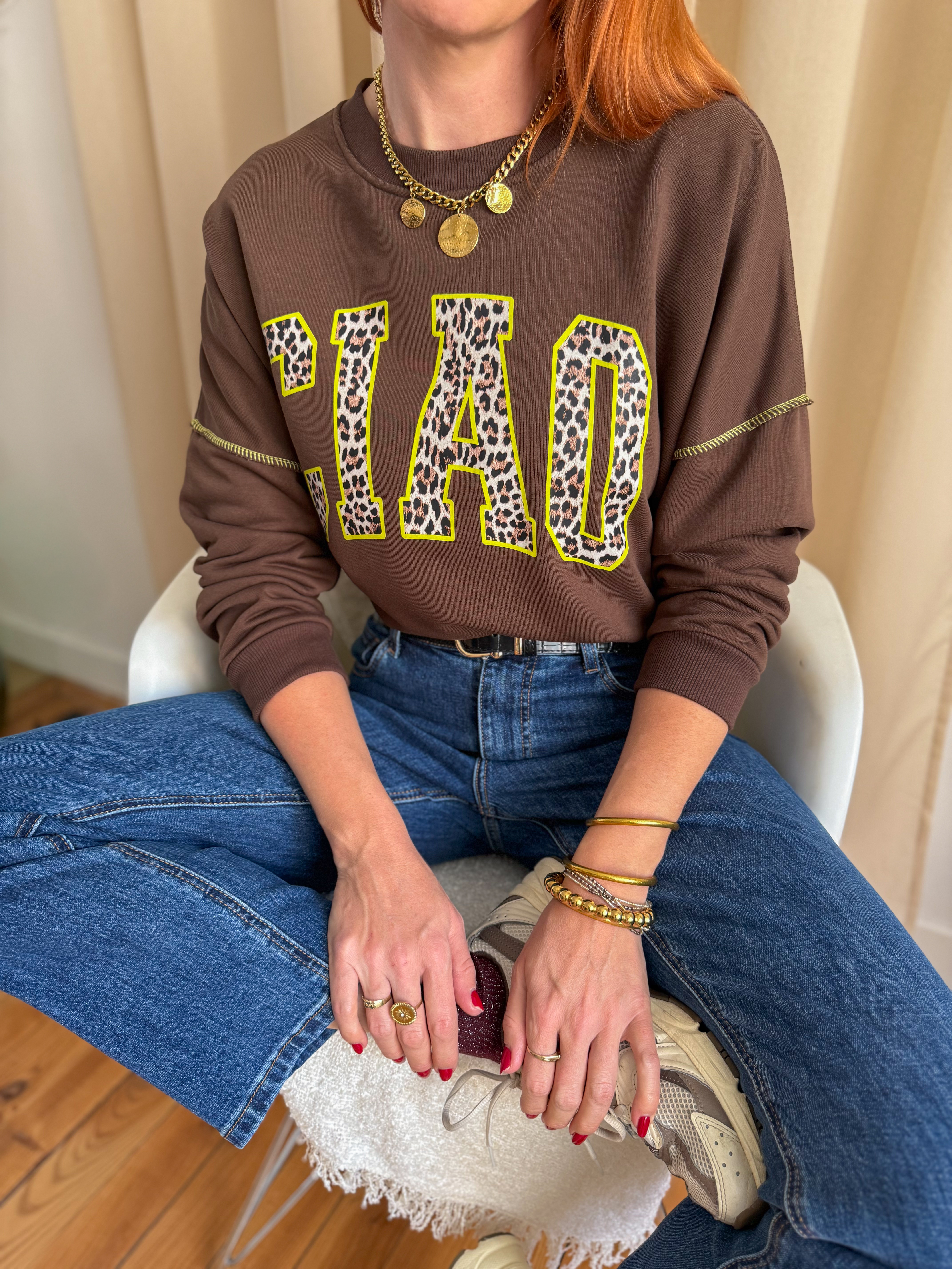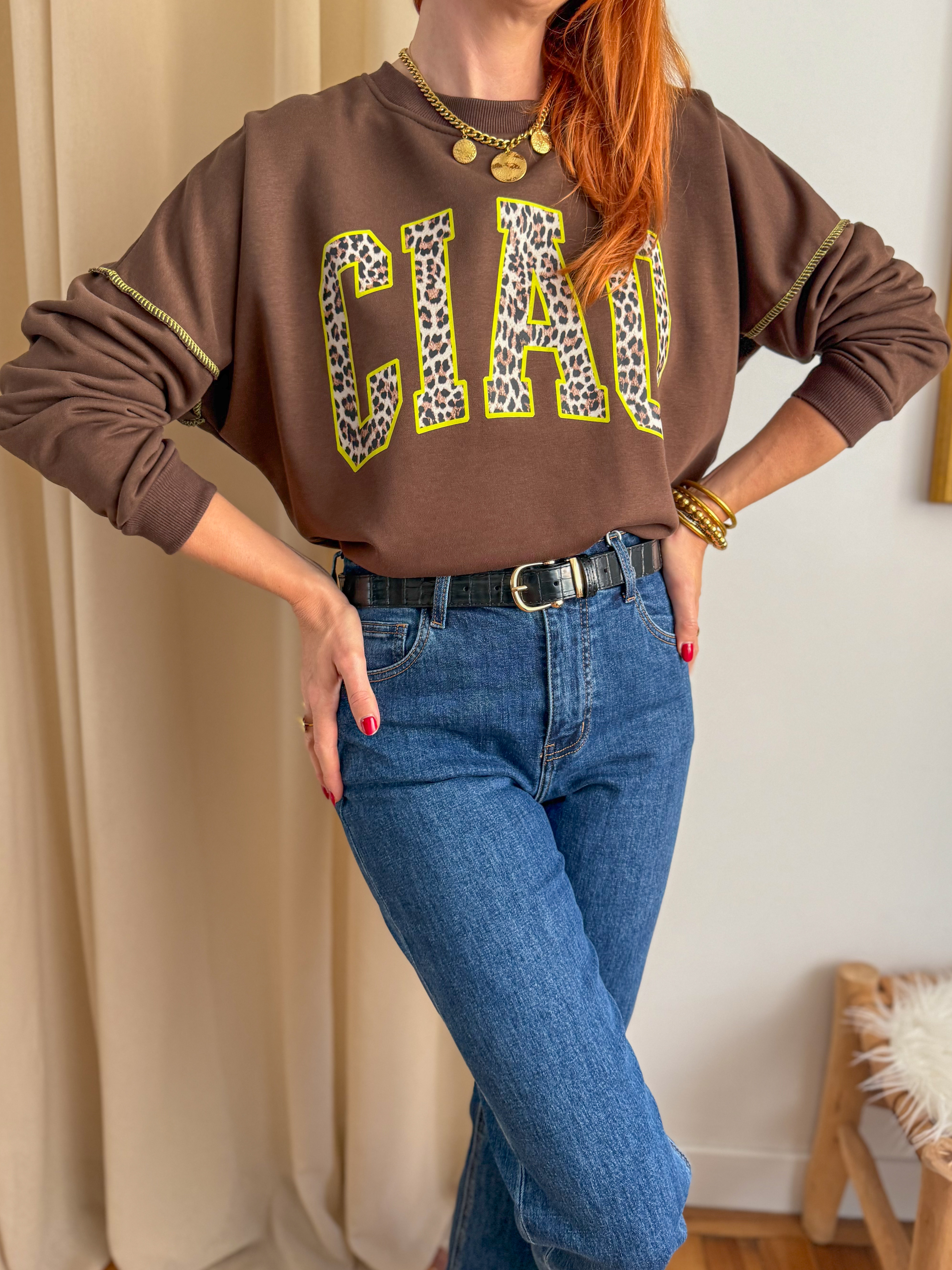 Son inscription “CIAO” façon léopard bordée de jaune dynamise l’ensemble et apporte ce petit twist mode qu’on adore 🐆💛