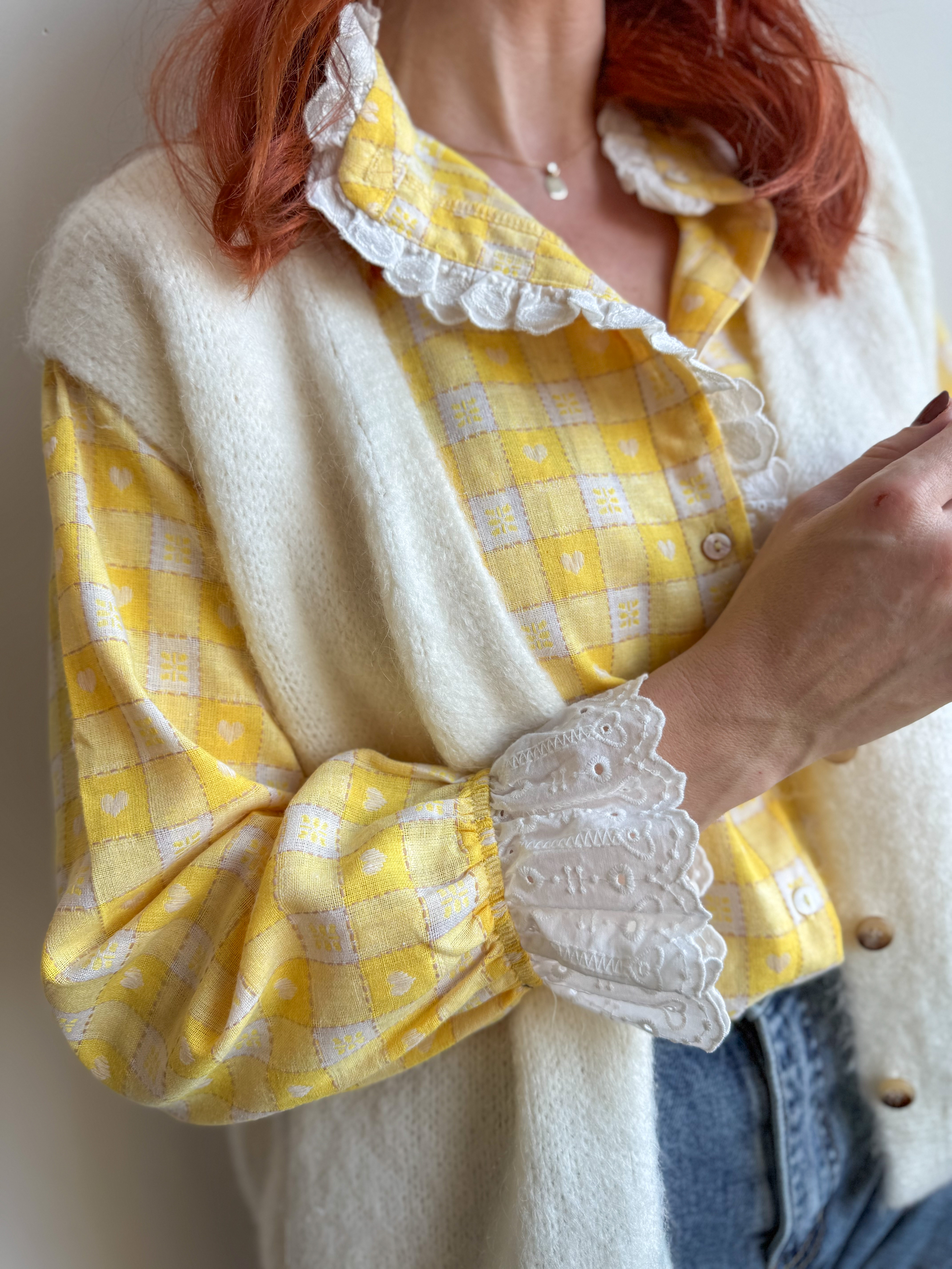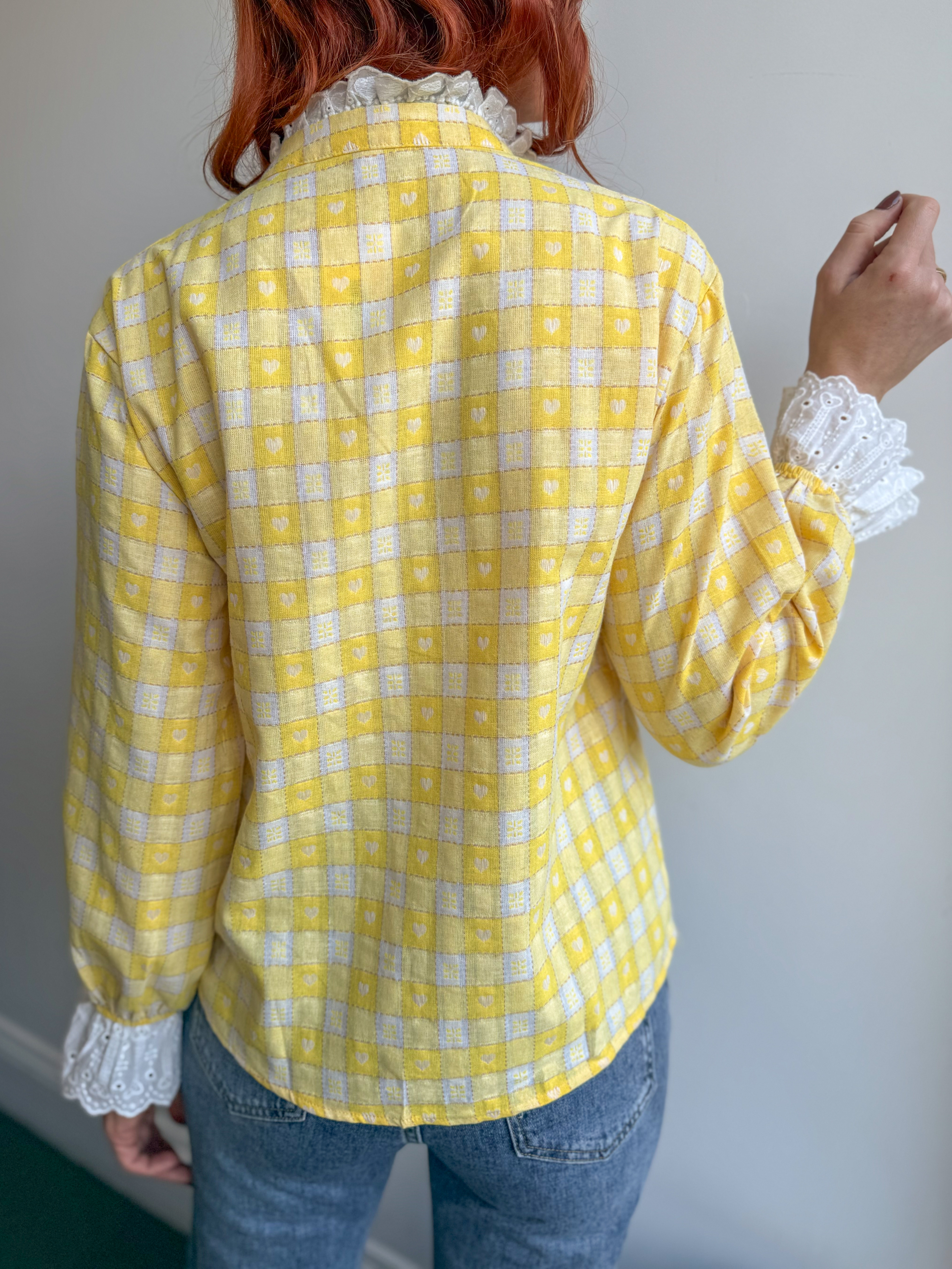 – Imprimé vichy citron avec petits motifs cœurs