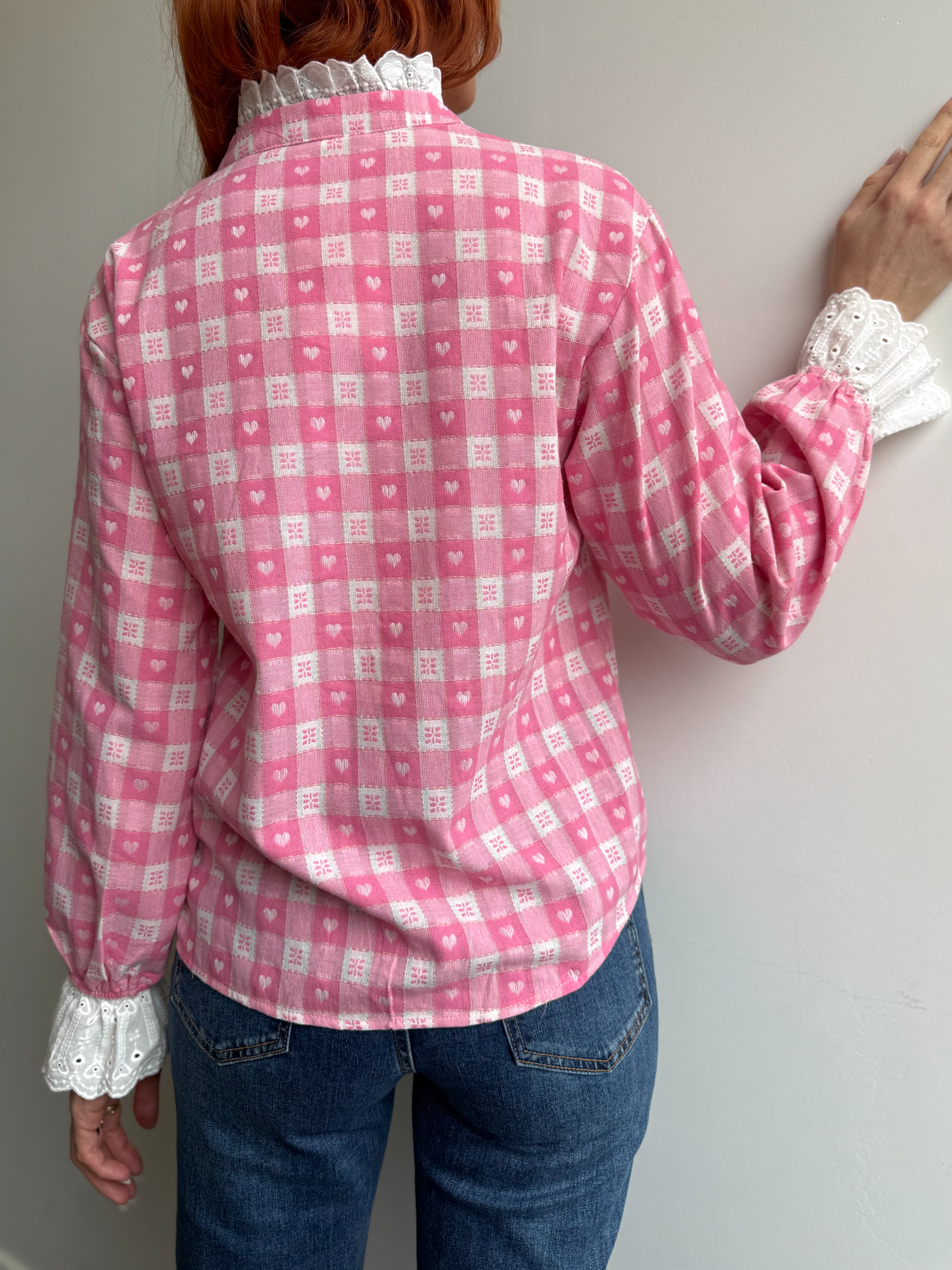 – Imprimé vichy rose avec petits motifs cœurs