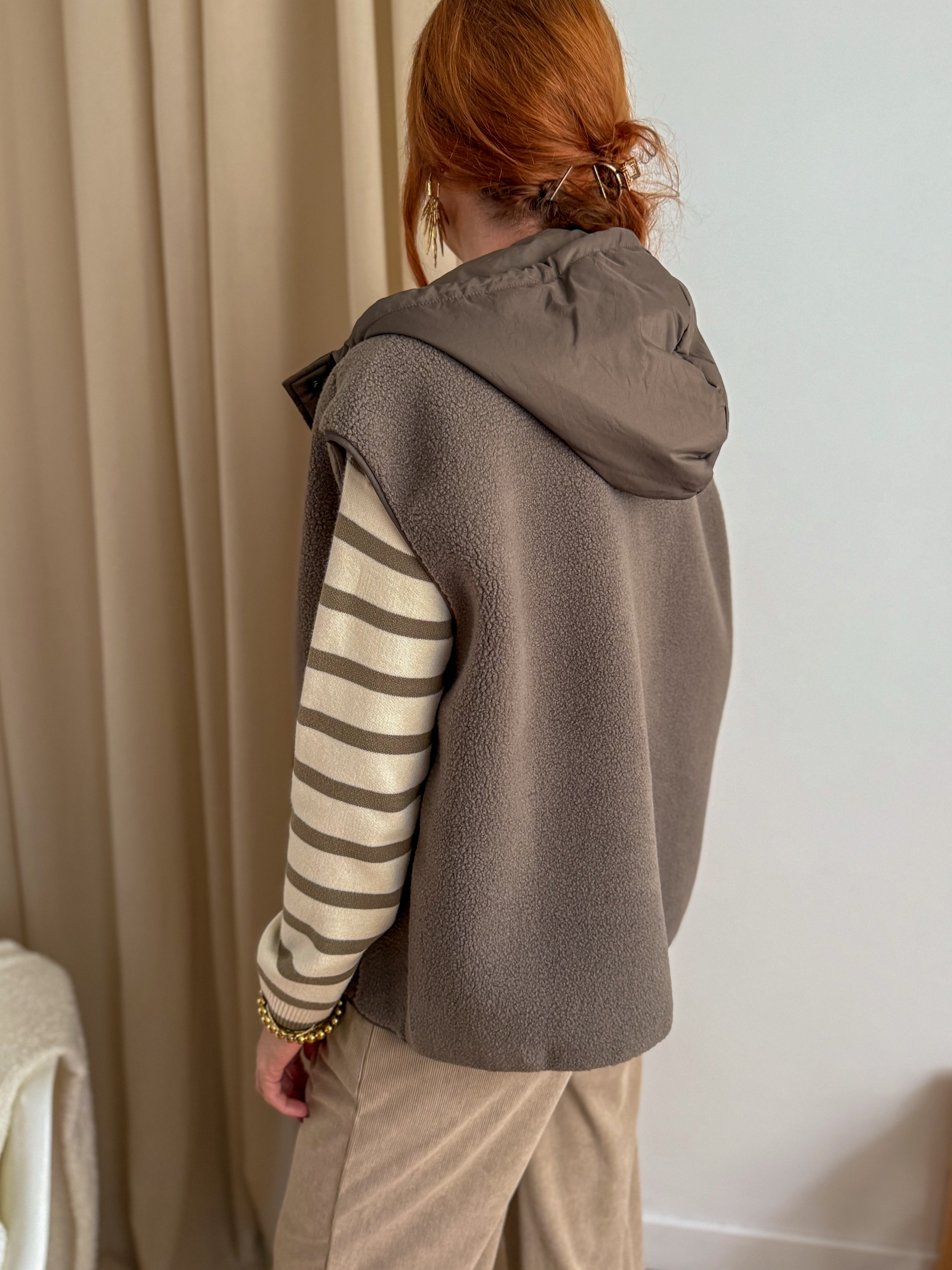 Avec sa coupe sans manches et sa capuche pratique, elle apporte une touche originale