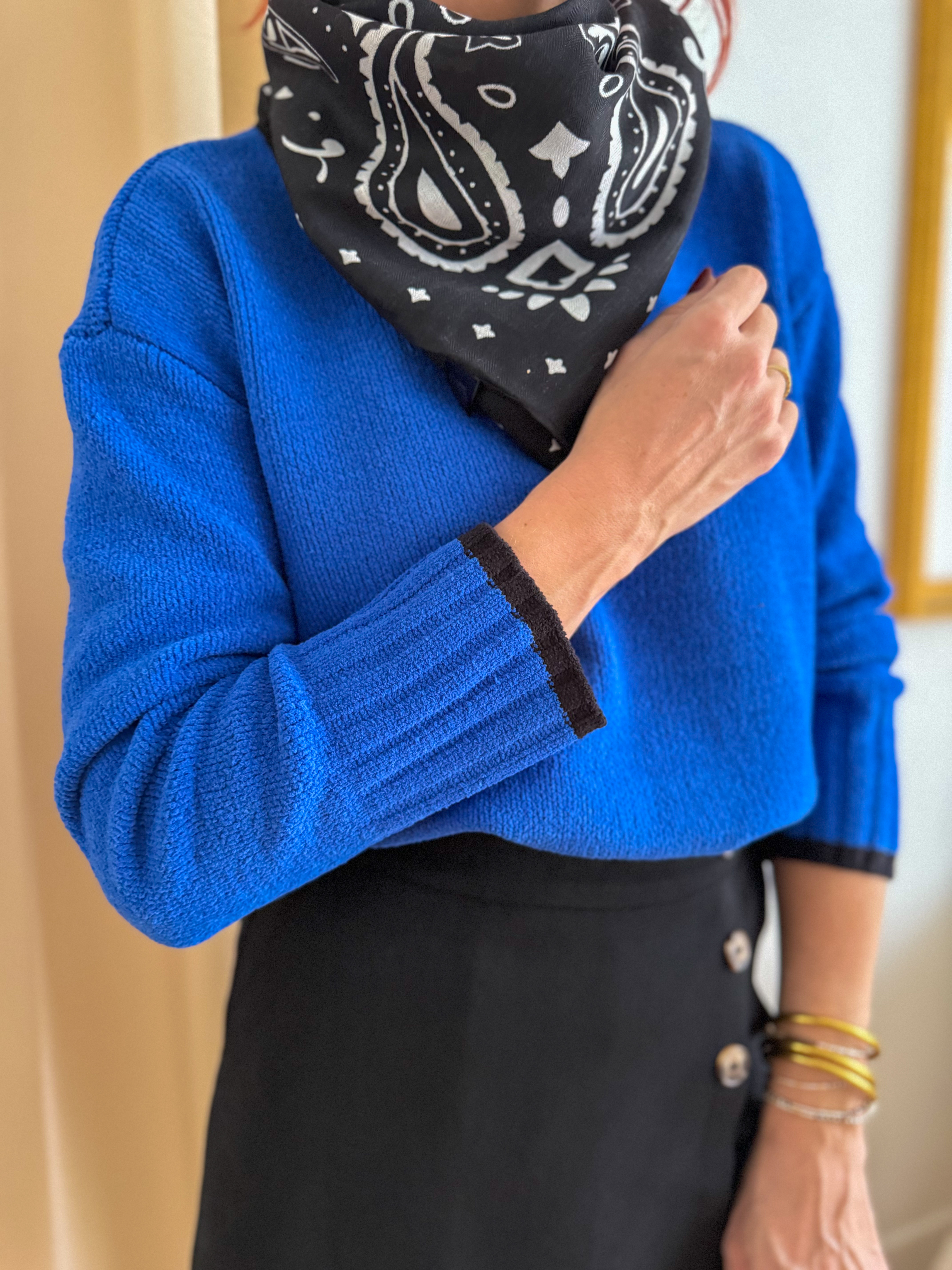 Avec son imprimé bandana intemporel et son format carré, notre écharpe noire est l’accessoire parfait pour twister vos tenues.