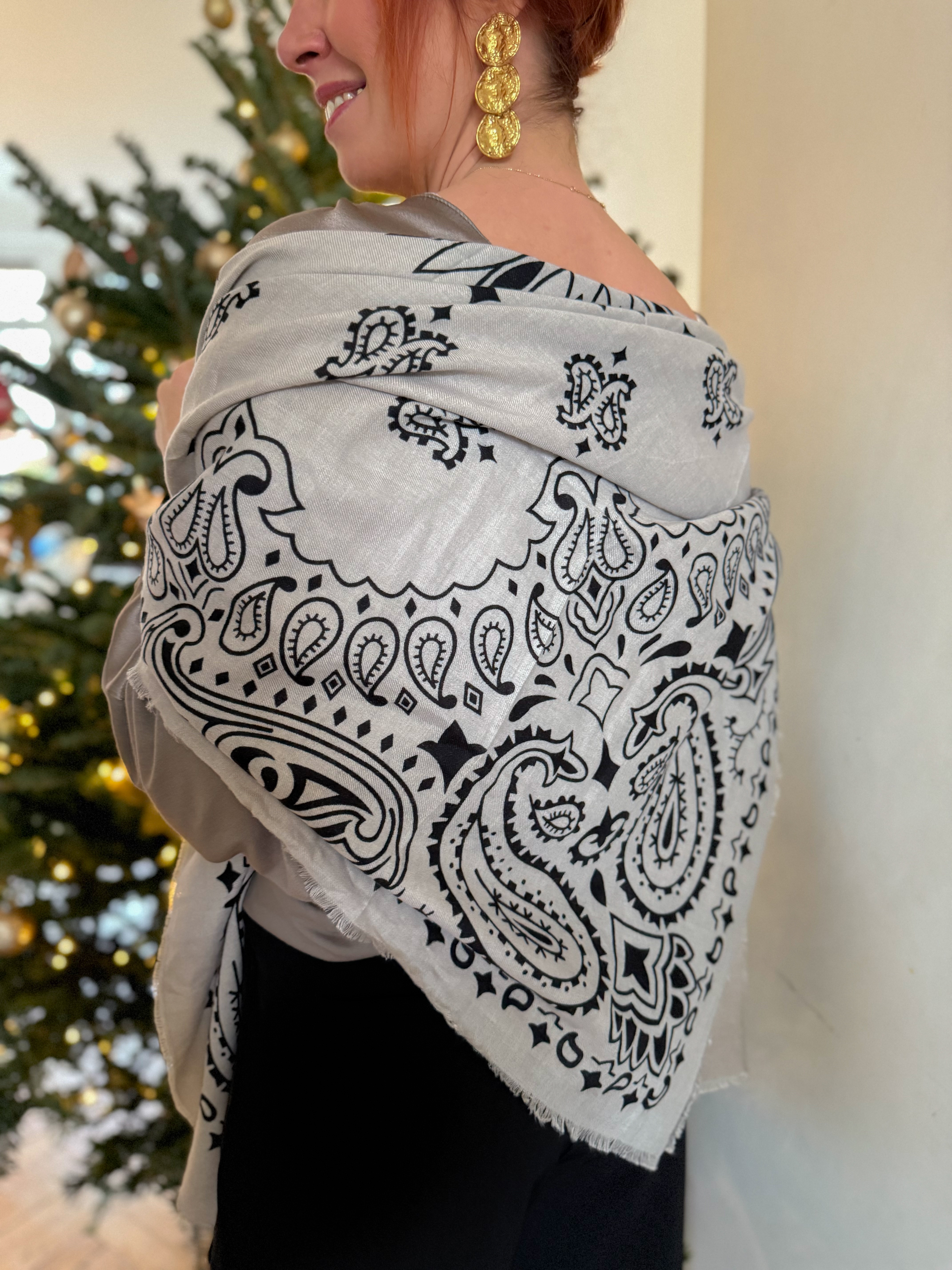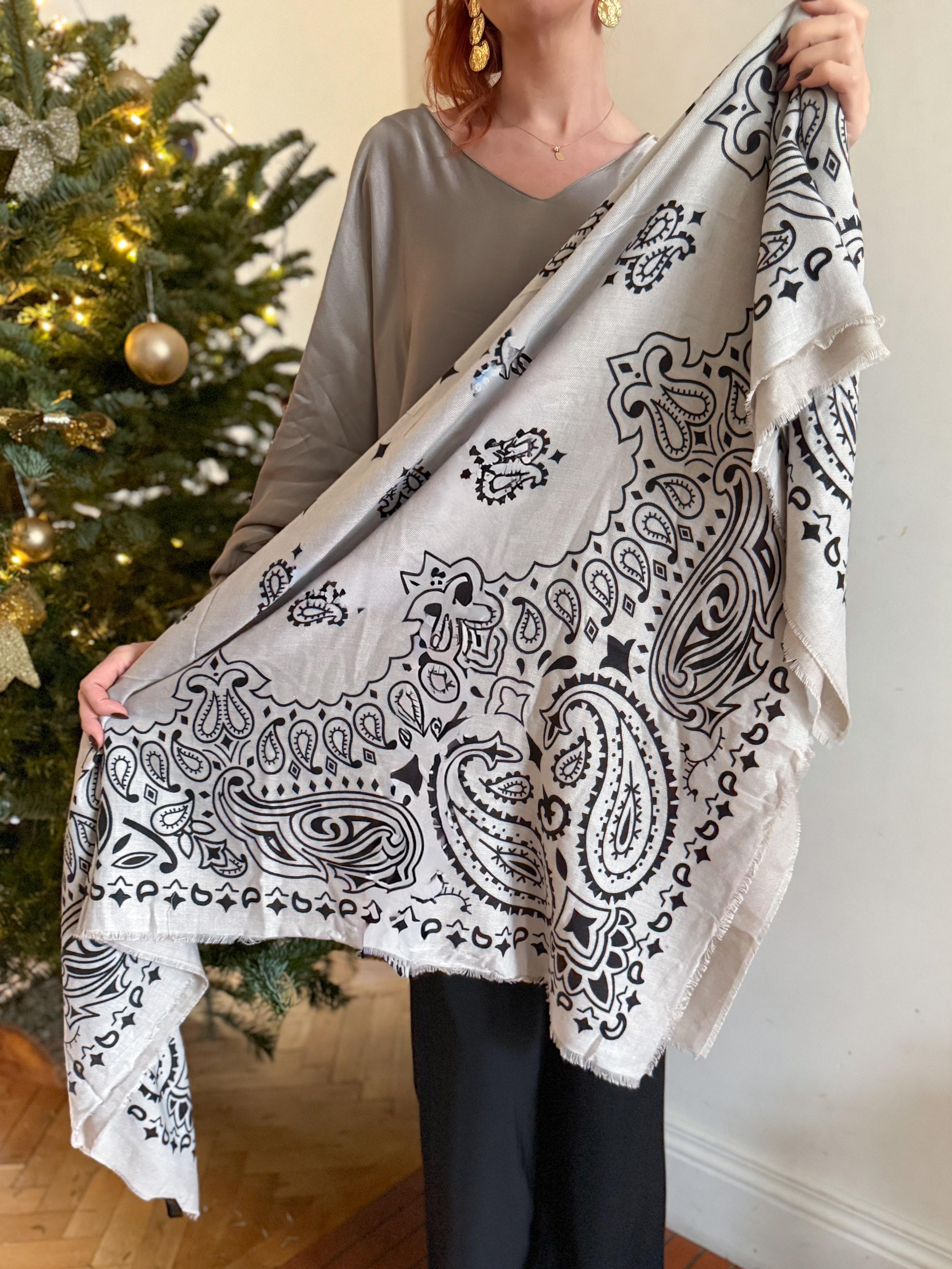 Avec son grand format, ses motifs contrastés et sa matière douce, cette écharpe apporte une touche bohème chic tout en restant facile à porter au quotidien.