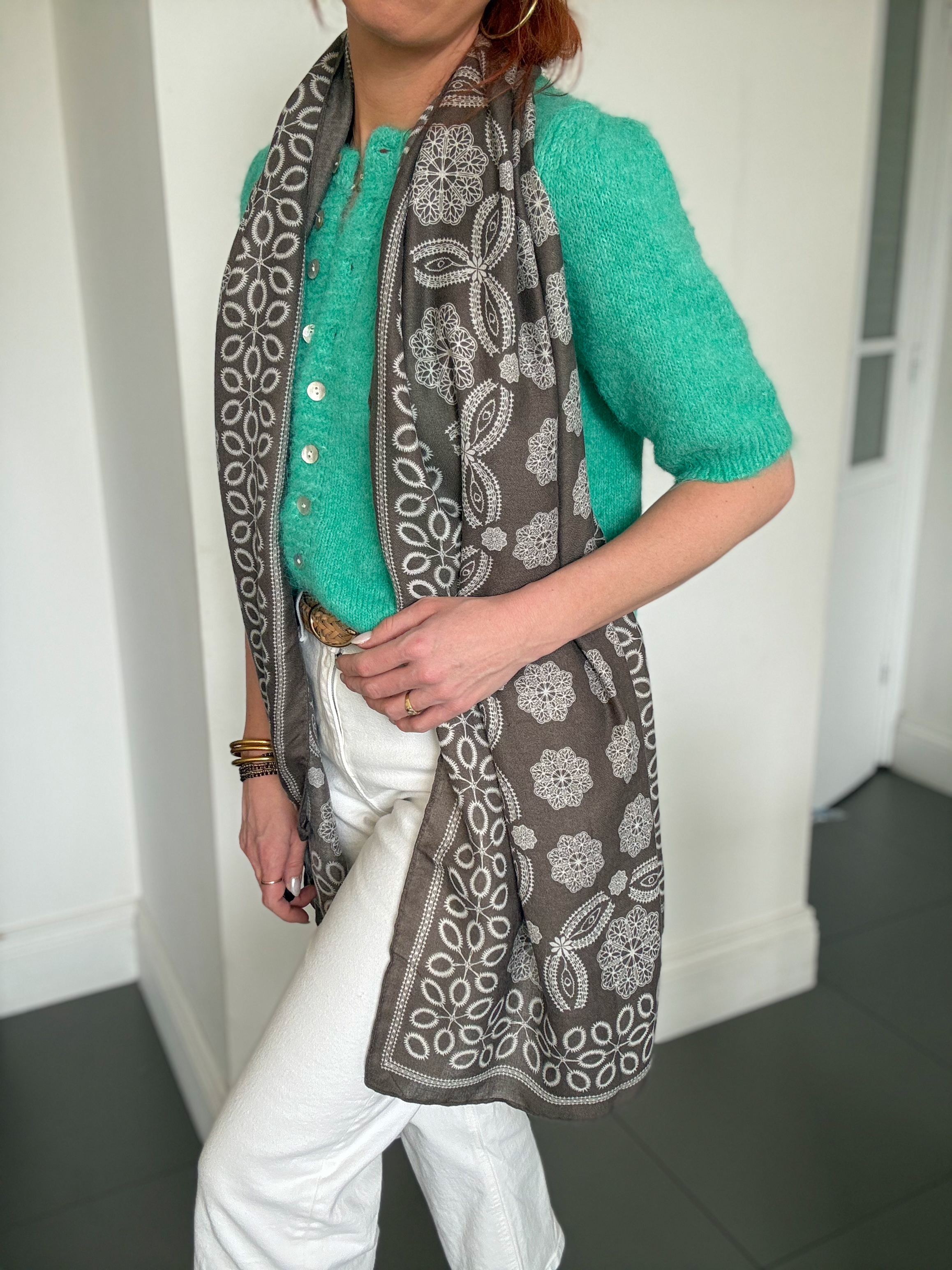 – Format rectangulaire, facile à nouer de différentes façons