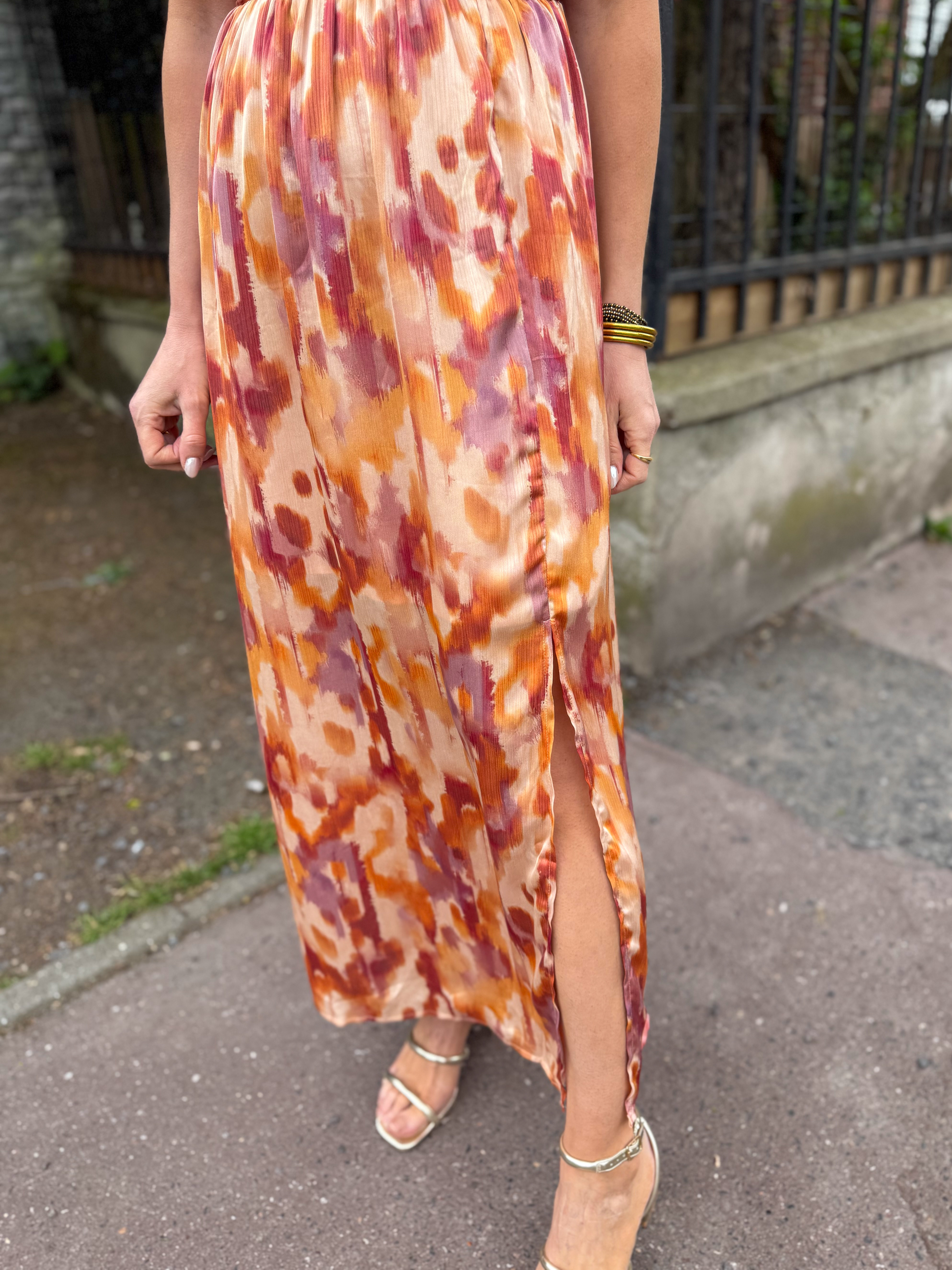 Notre robe longue Elise, c’est la pièce fluide et lumineuse qui sublime la silhouette en un clin d’œil