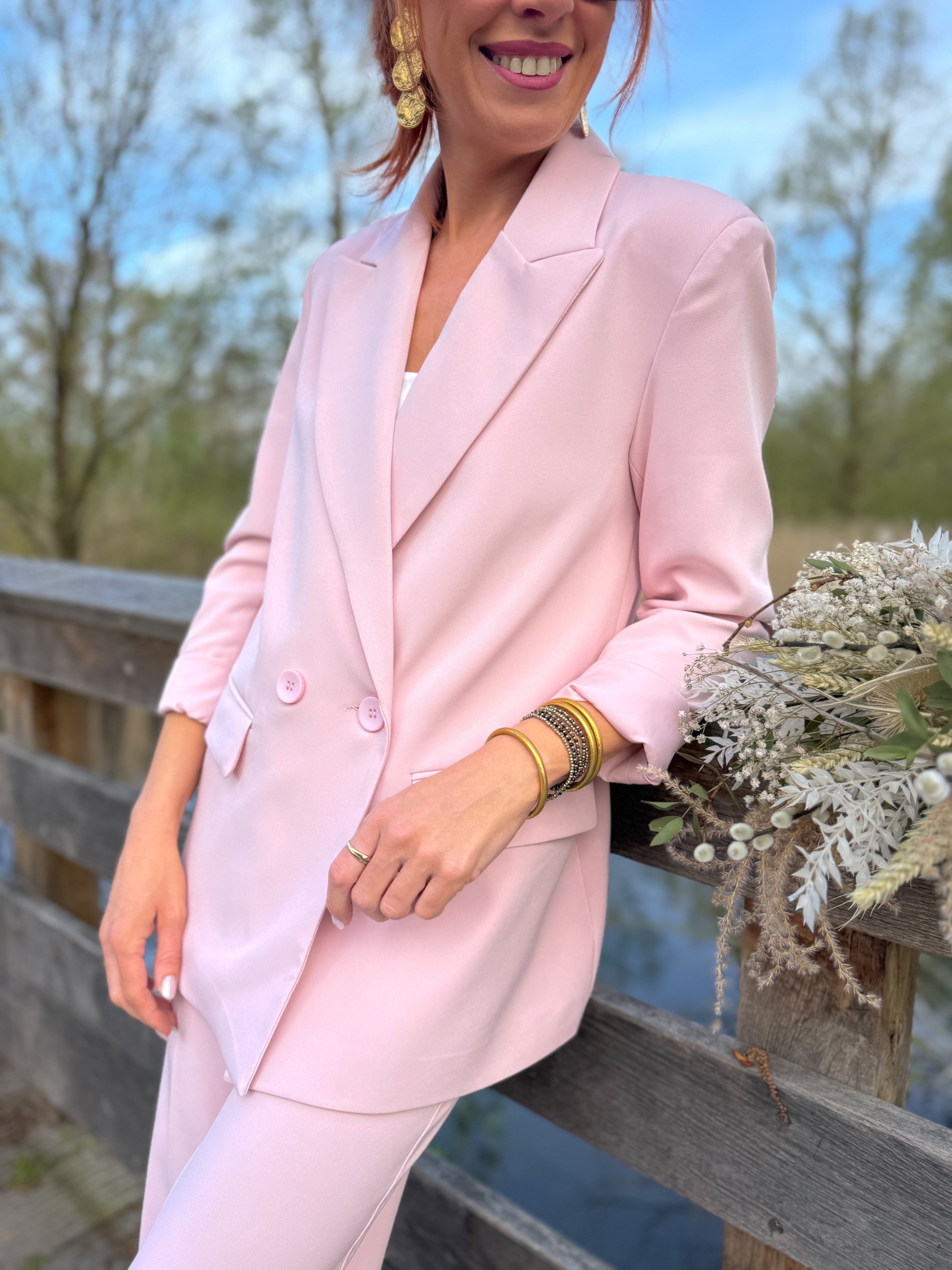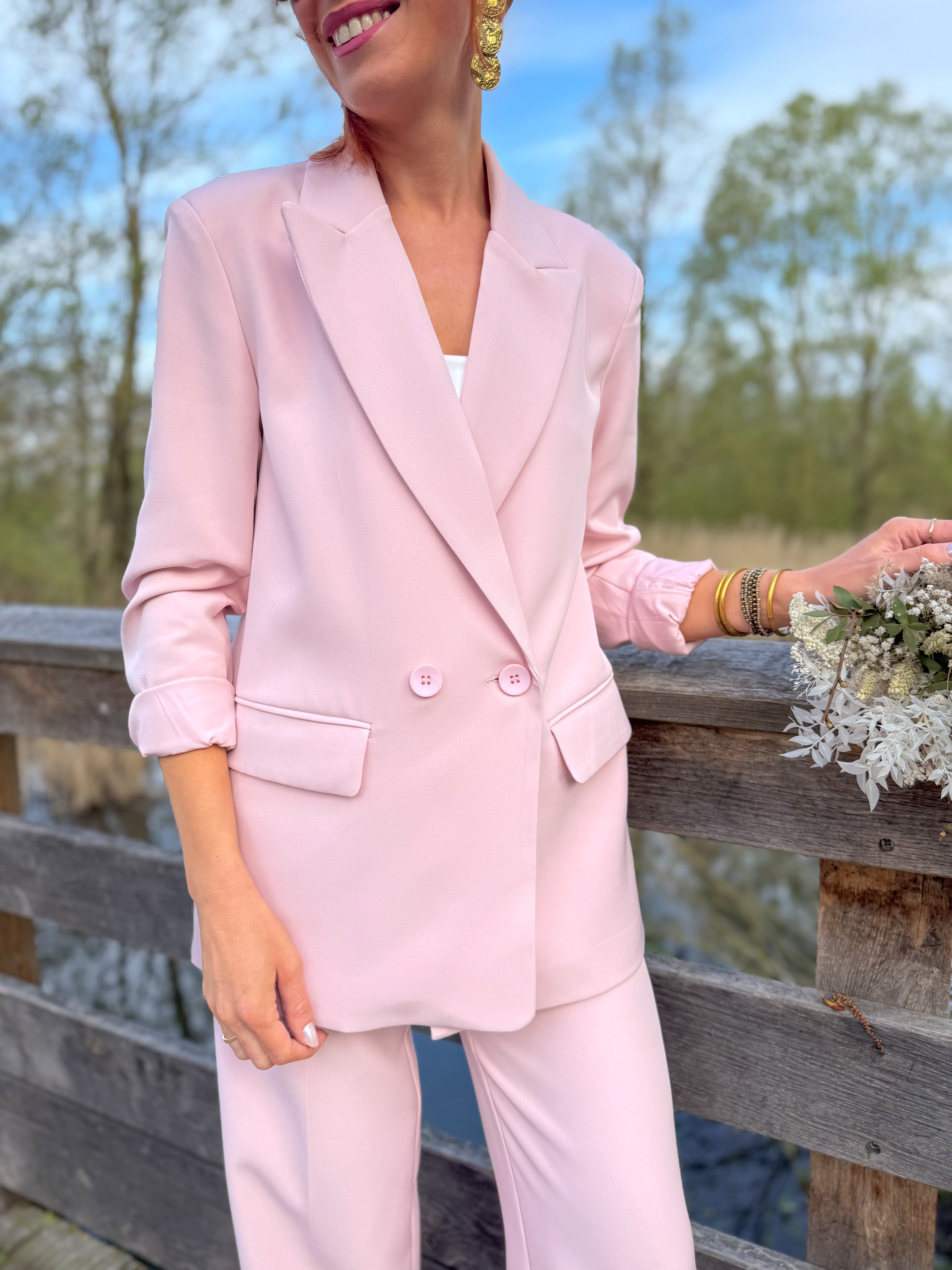 Notre blazer Éric rose poudré est la pièce chic et lumineuse qui twiste instantanément vos looks 🌸