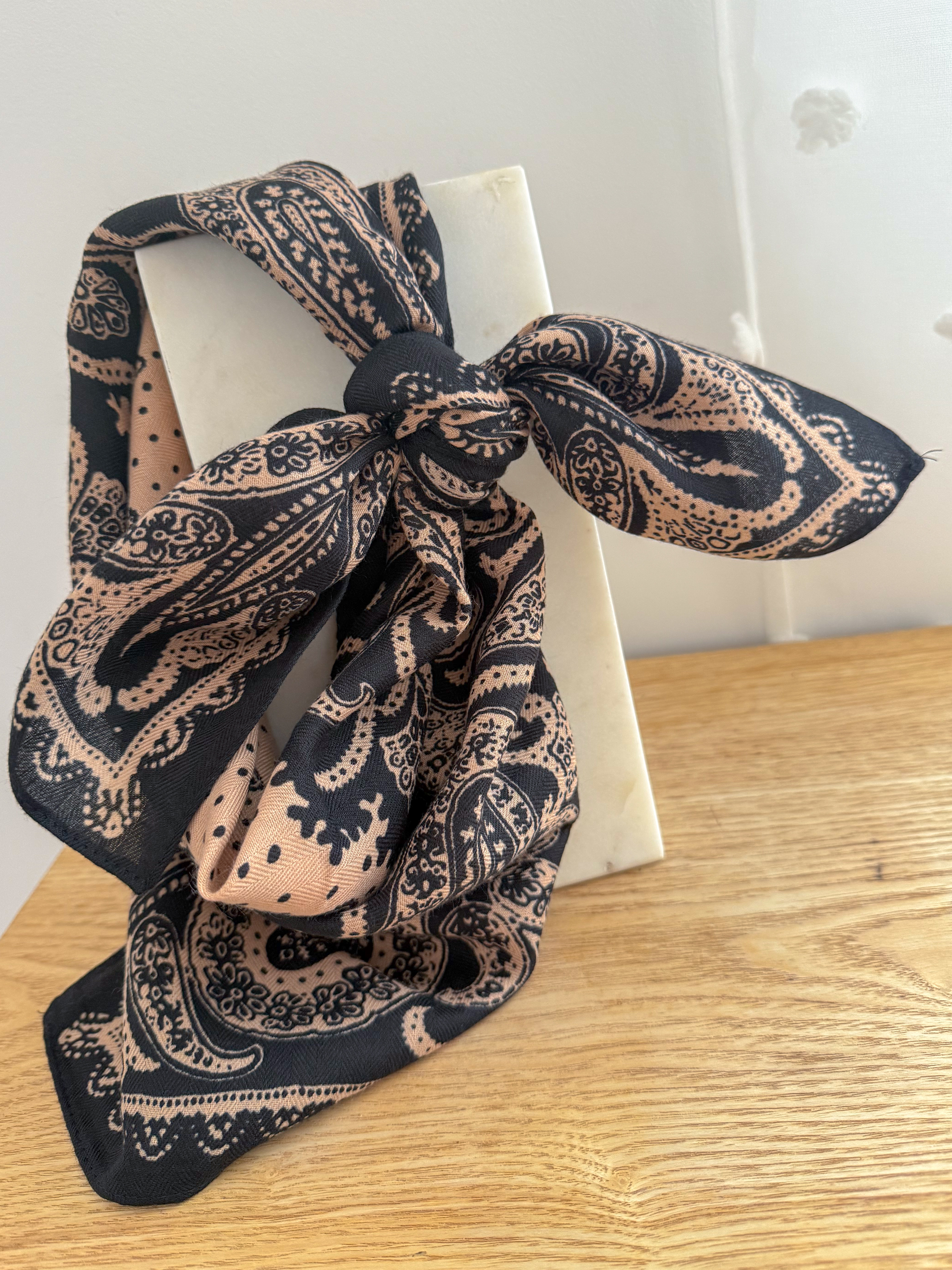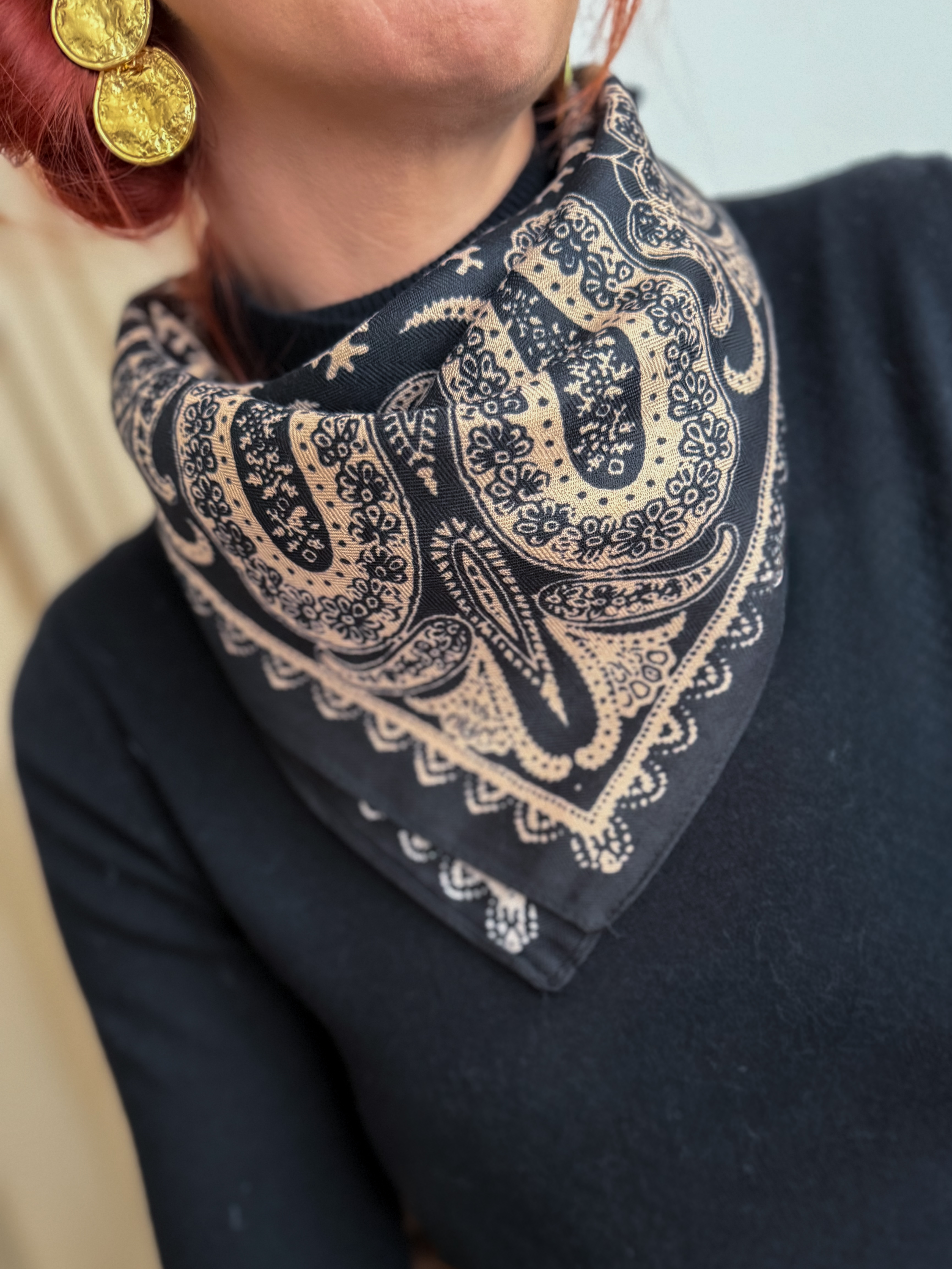 Avec son imprimé bandana intemporel et son format carré, notre foulard est l’accessoire parfait pour twister vos tenues.