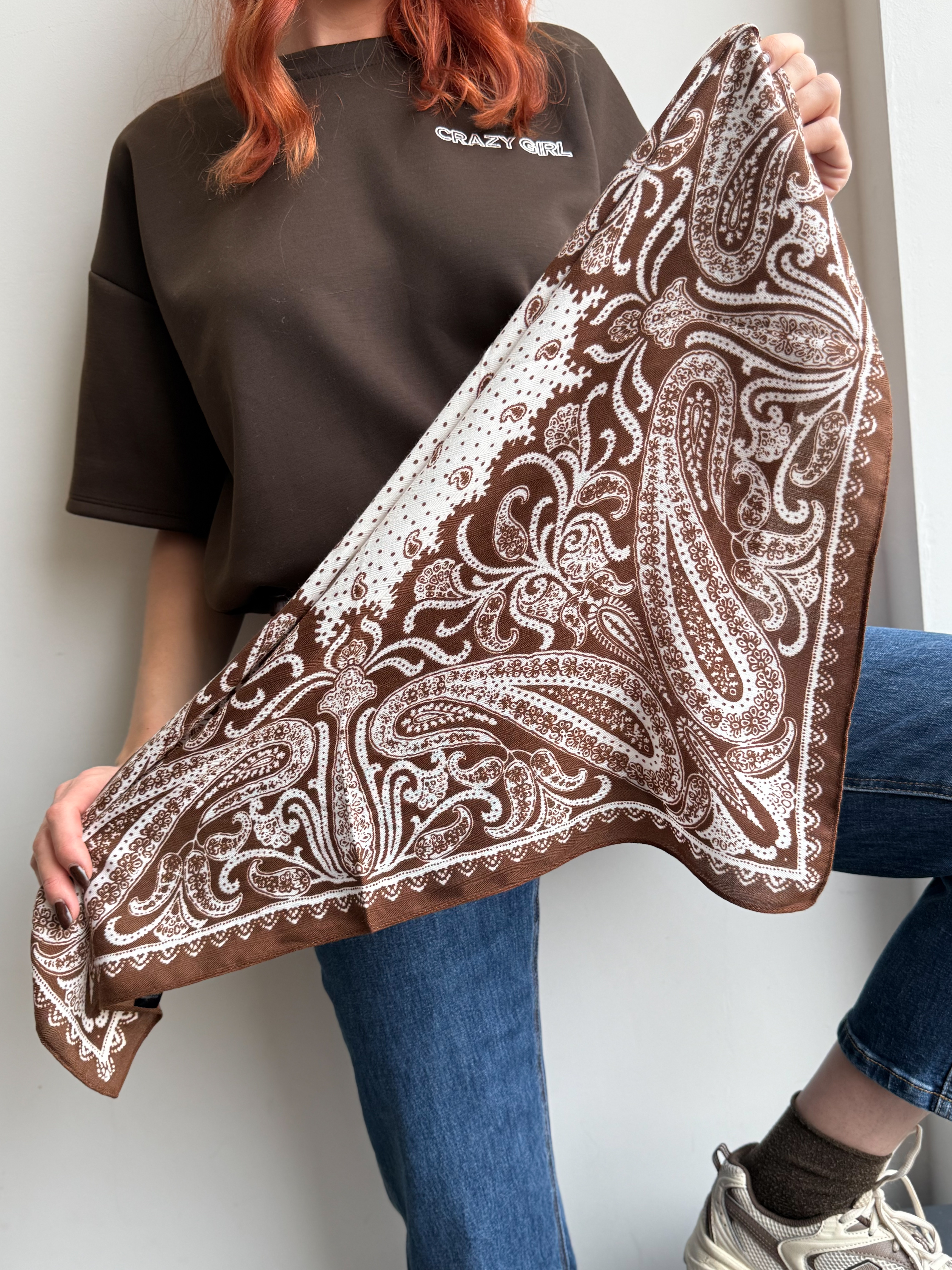 Foulard imprimé cachemire camel