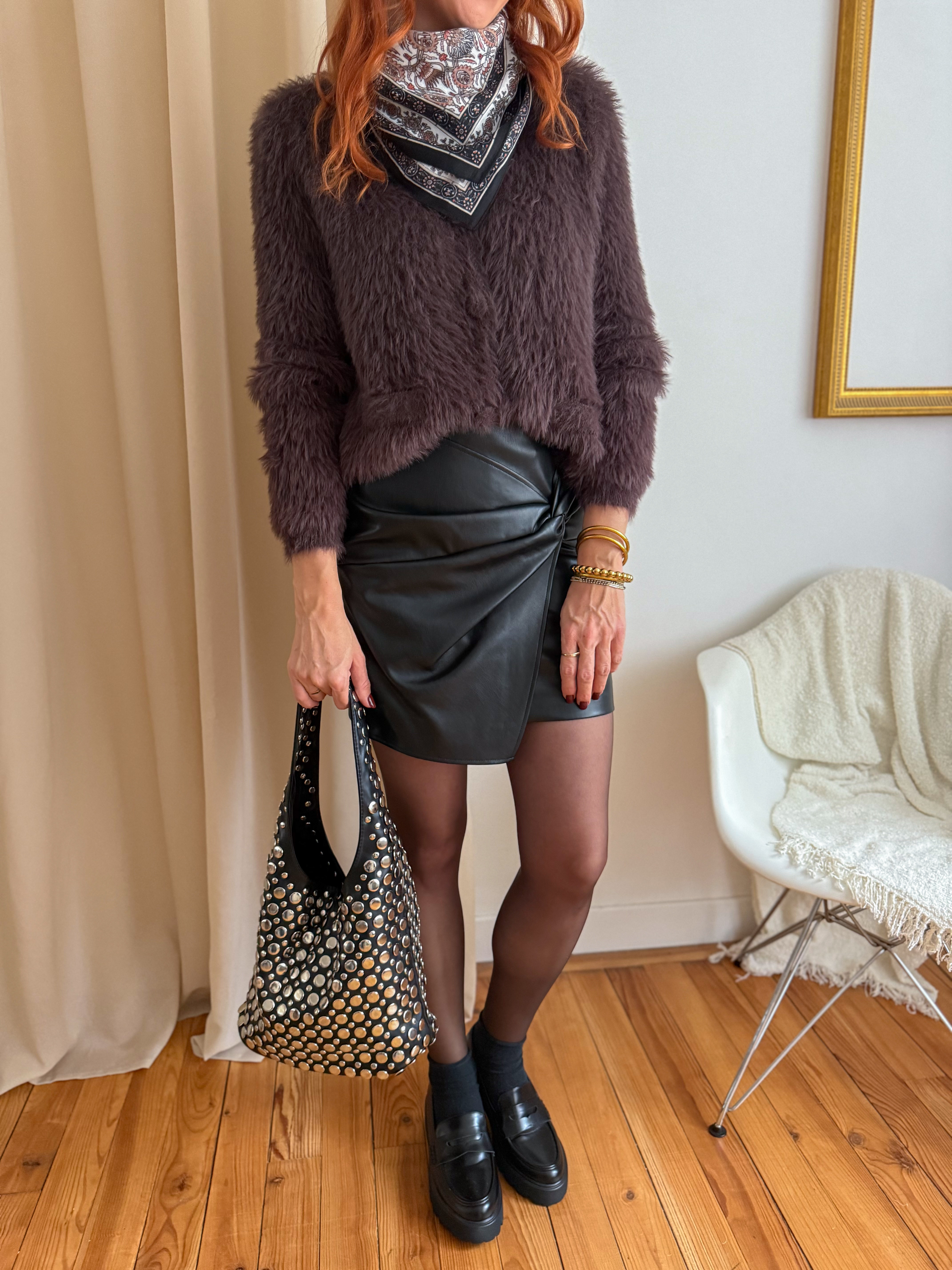 Son effet cuir met en valeur la silhouette tandis que le joli détail noué sur le côté lui donne un tombé original 💥