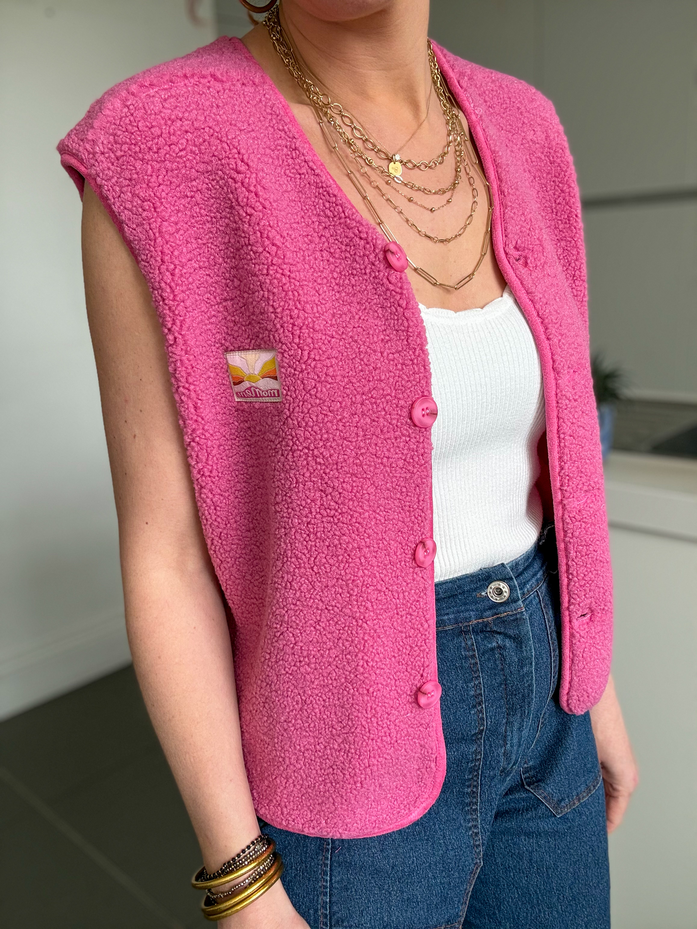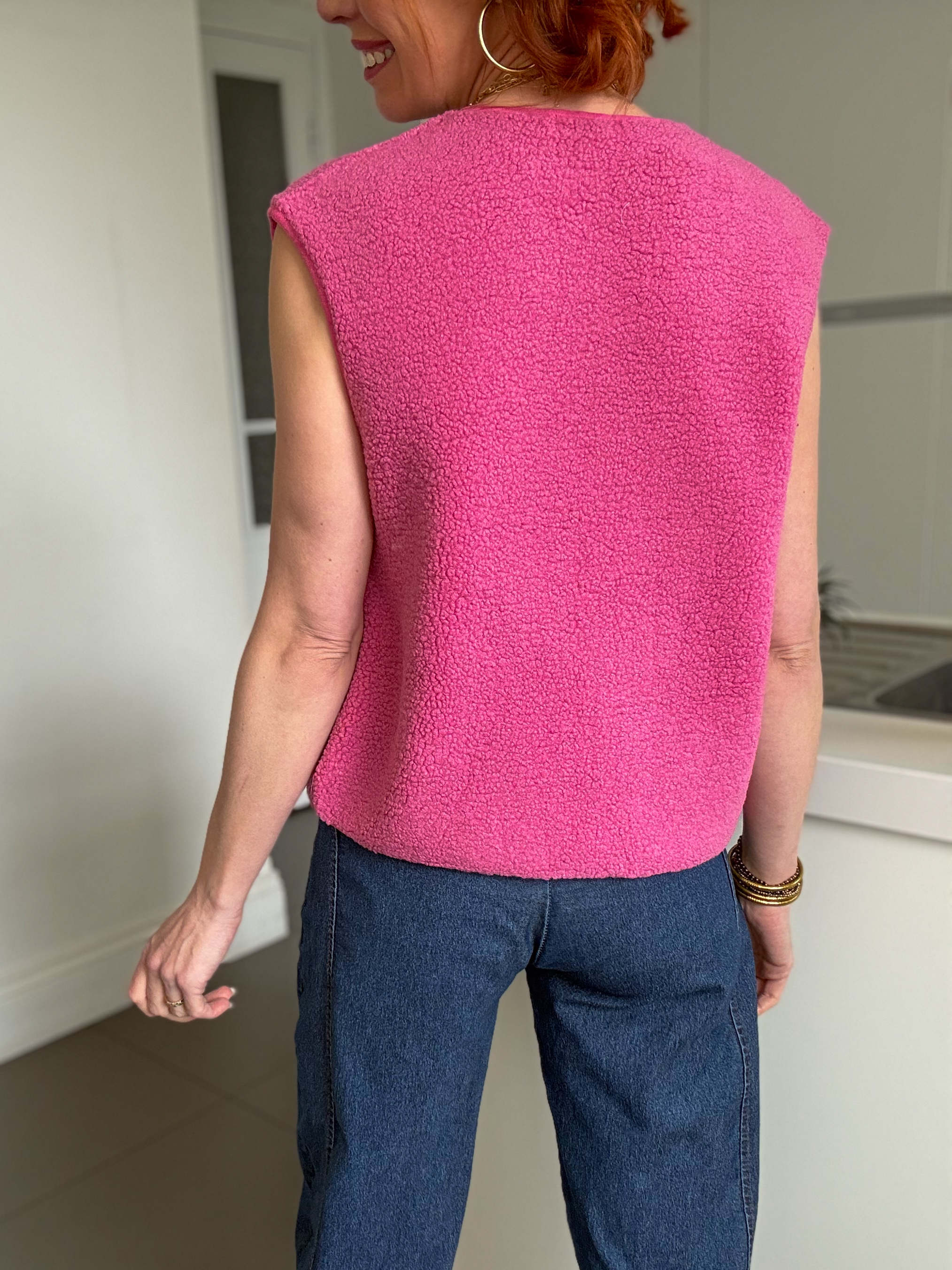 Notre gilet Isaac en sherpa rose est la pièce idéale