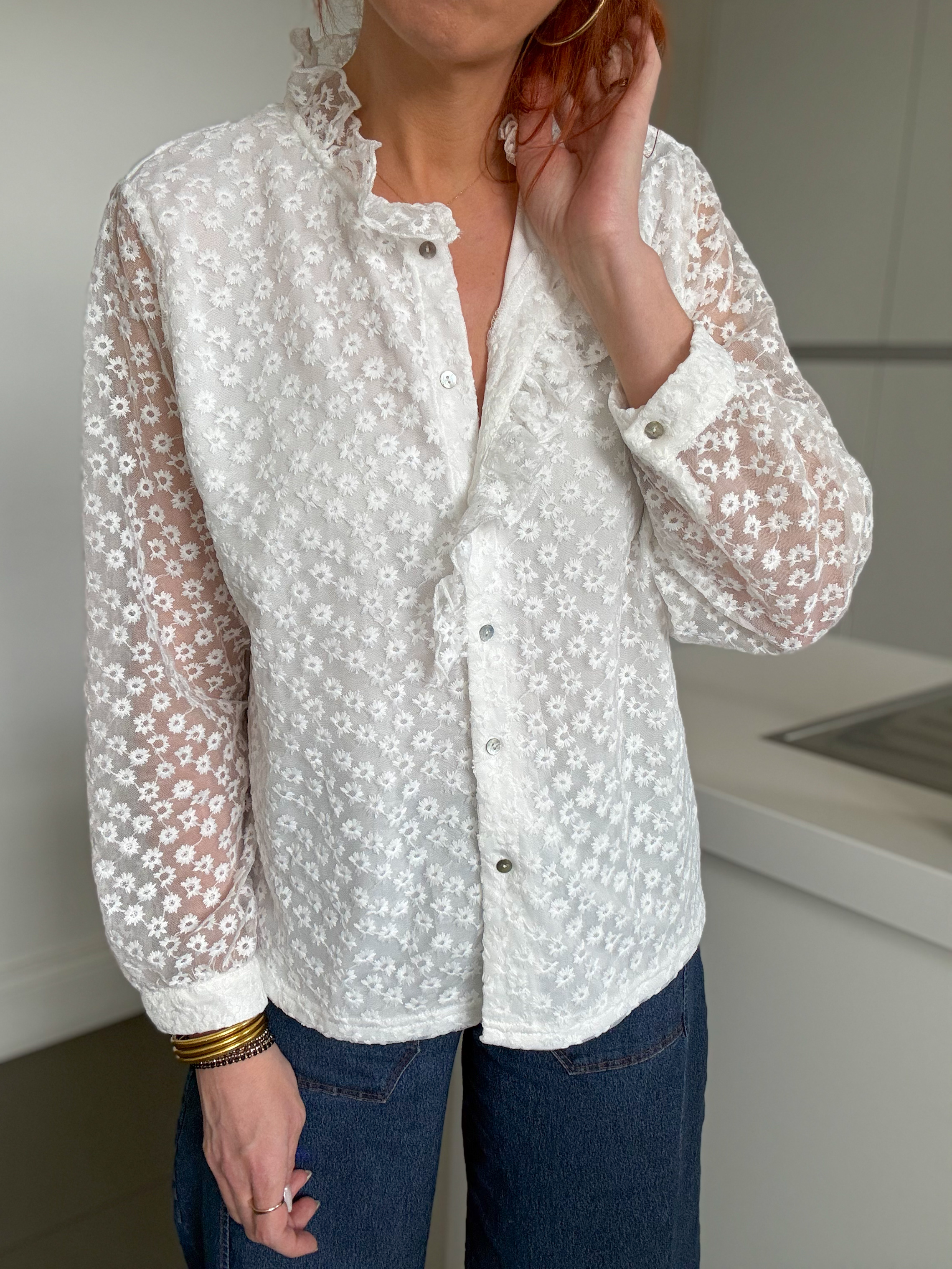 Blouse en voile avec broderies ton sur ton