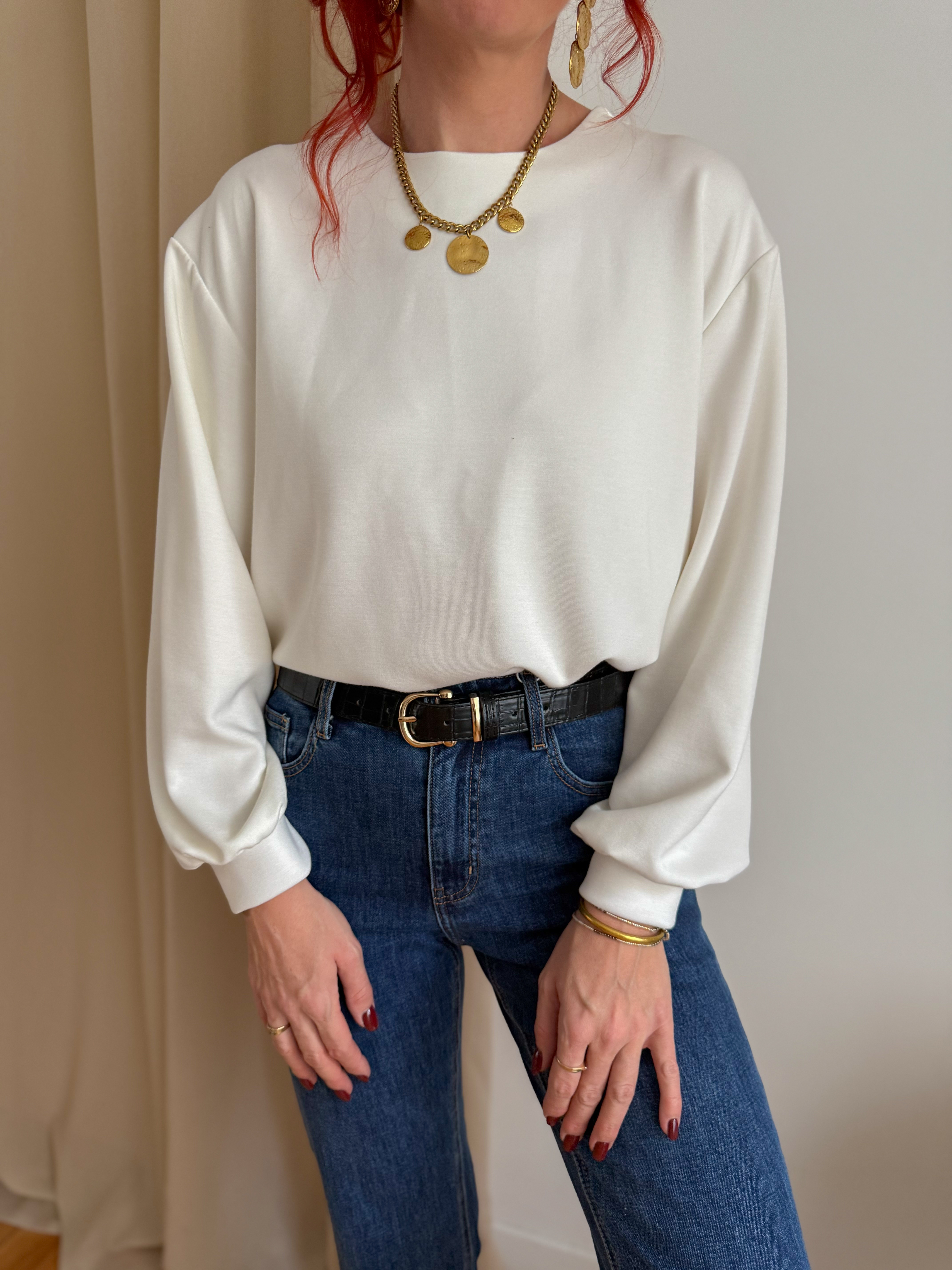 ➡️ Détails : poignets resserrés, manches ballon discrètes