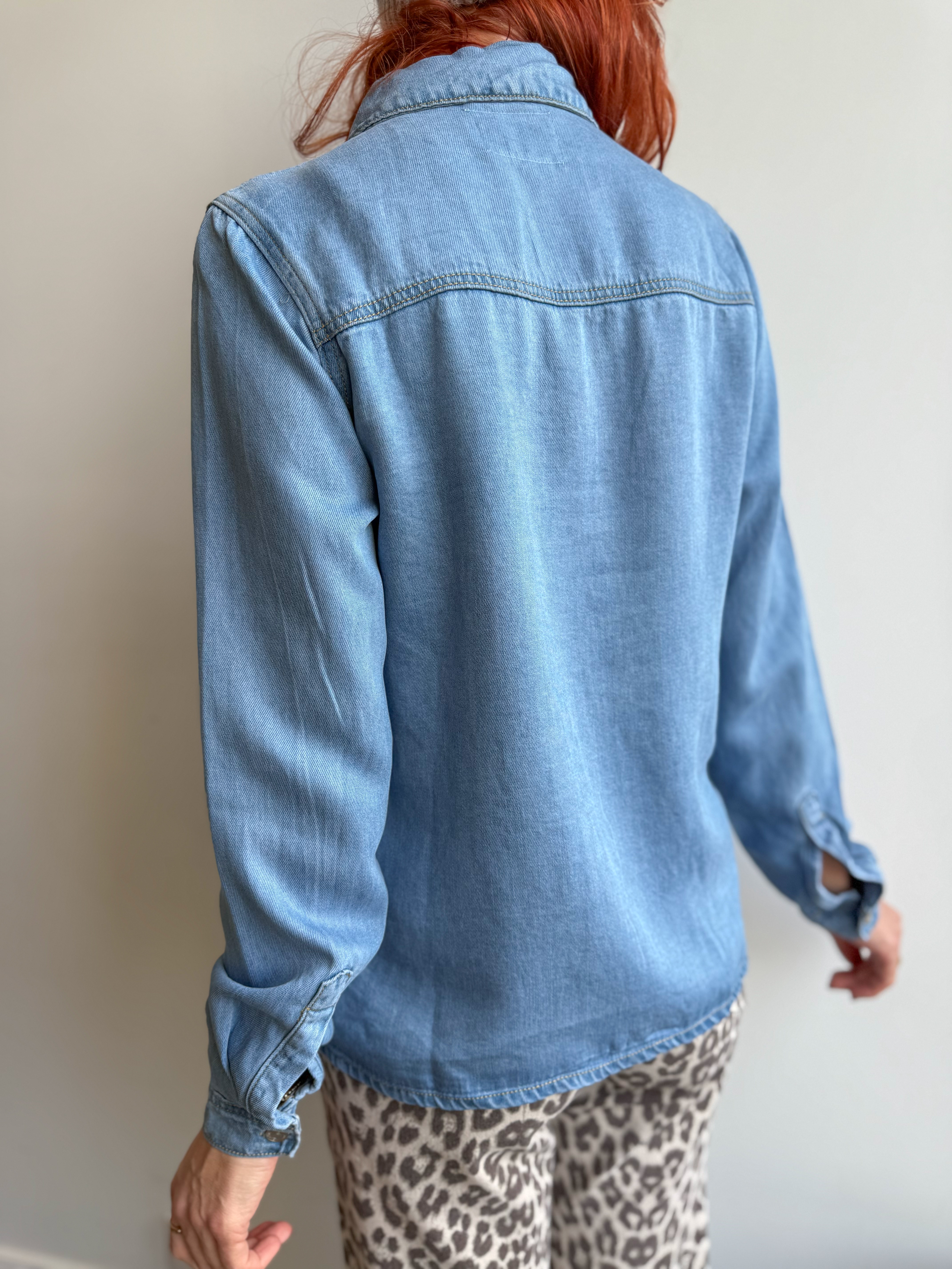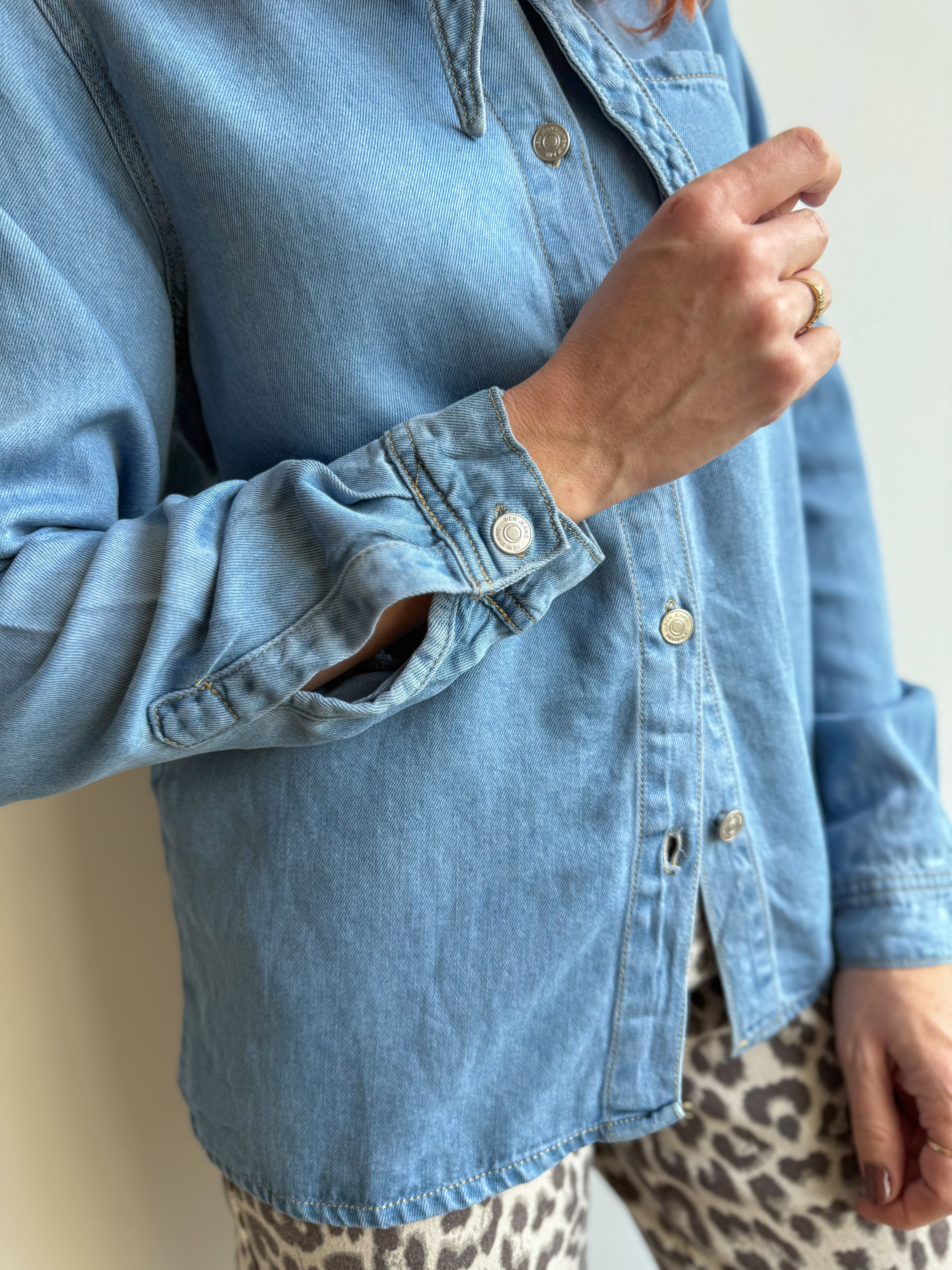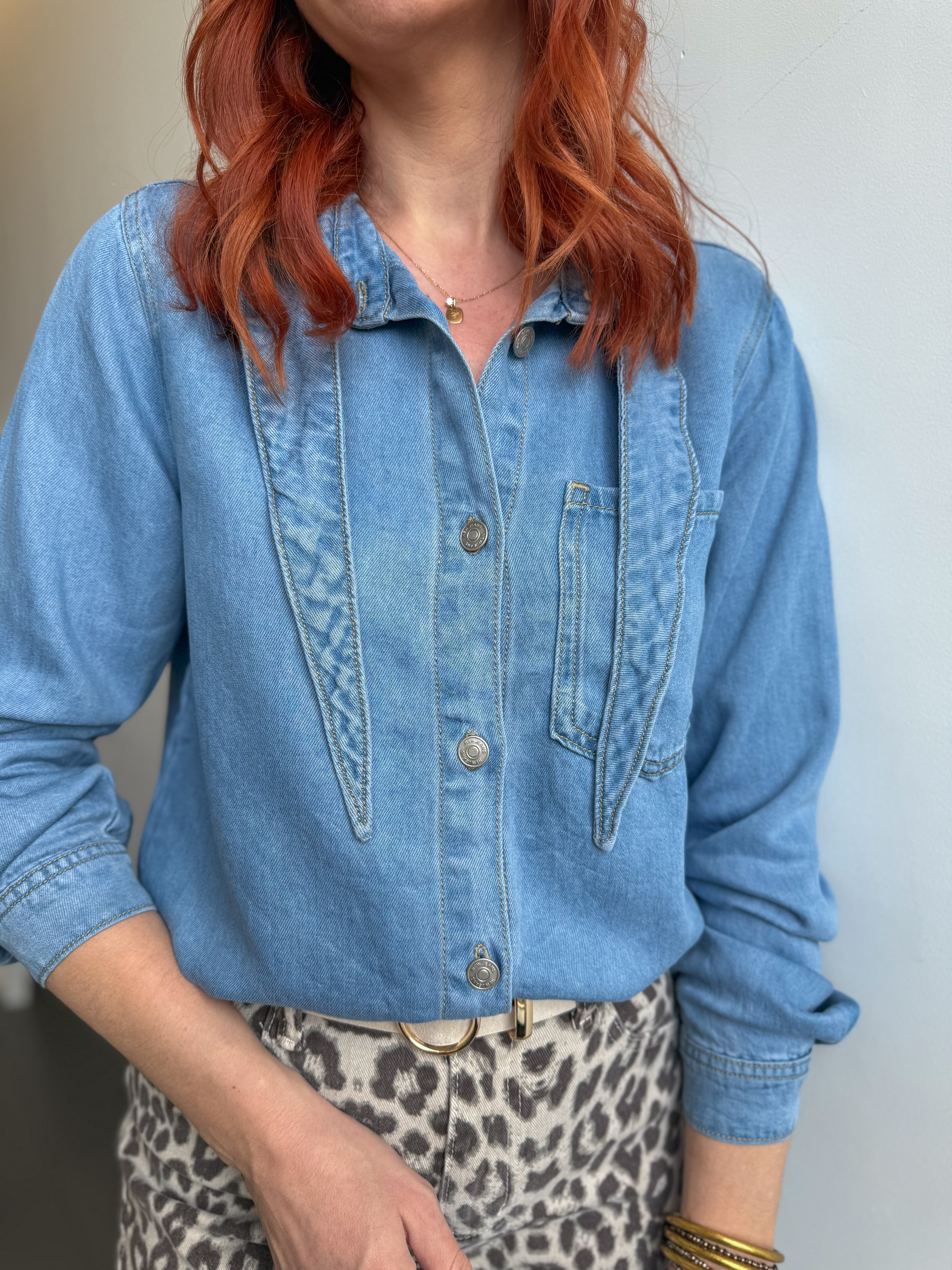 Une chemise en jean twistée par un joli détail foulard pour une allure moderne et féminine.