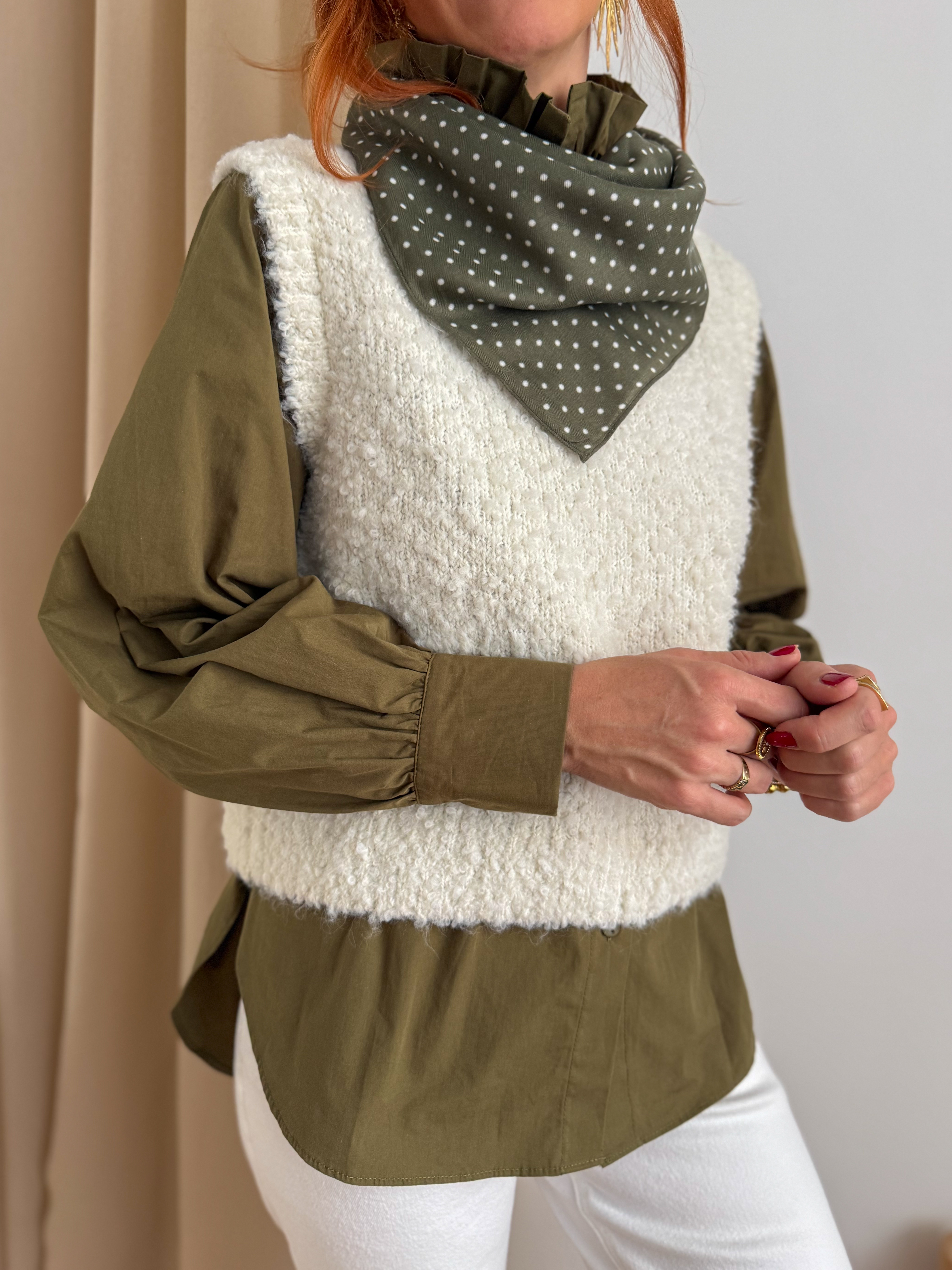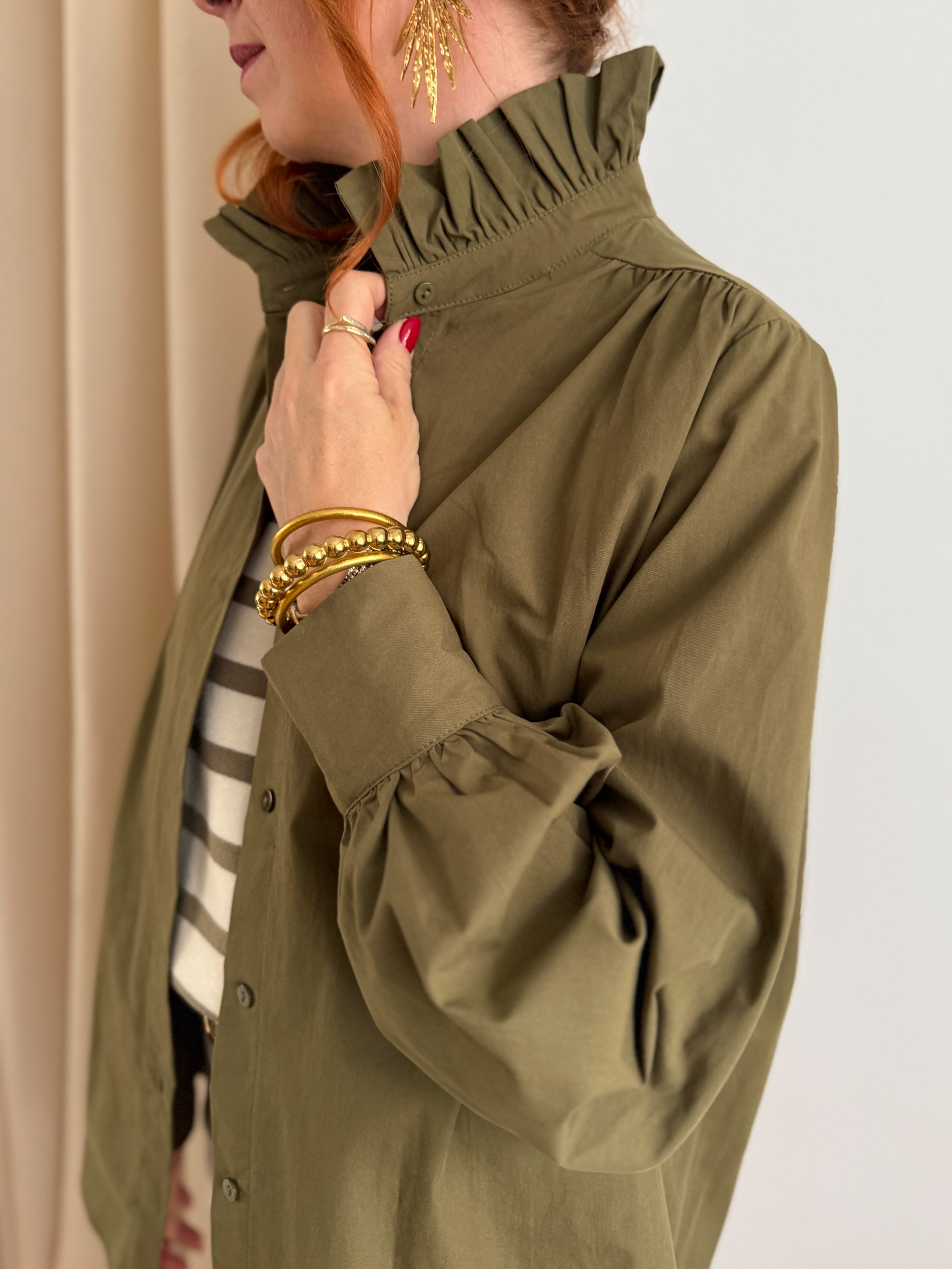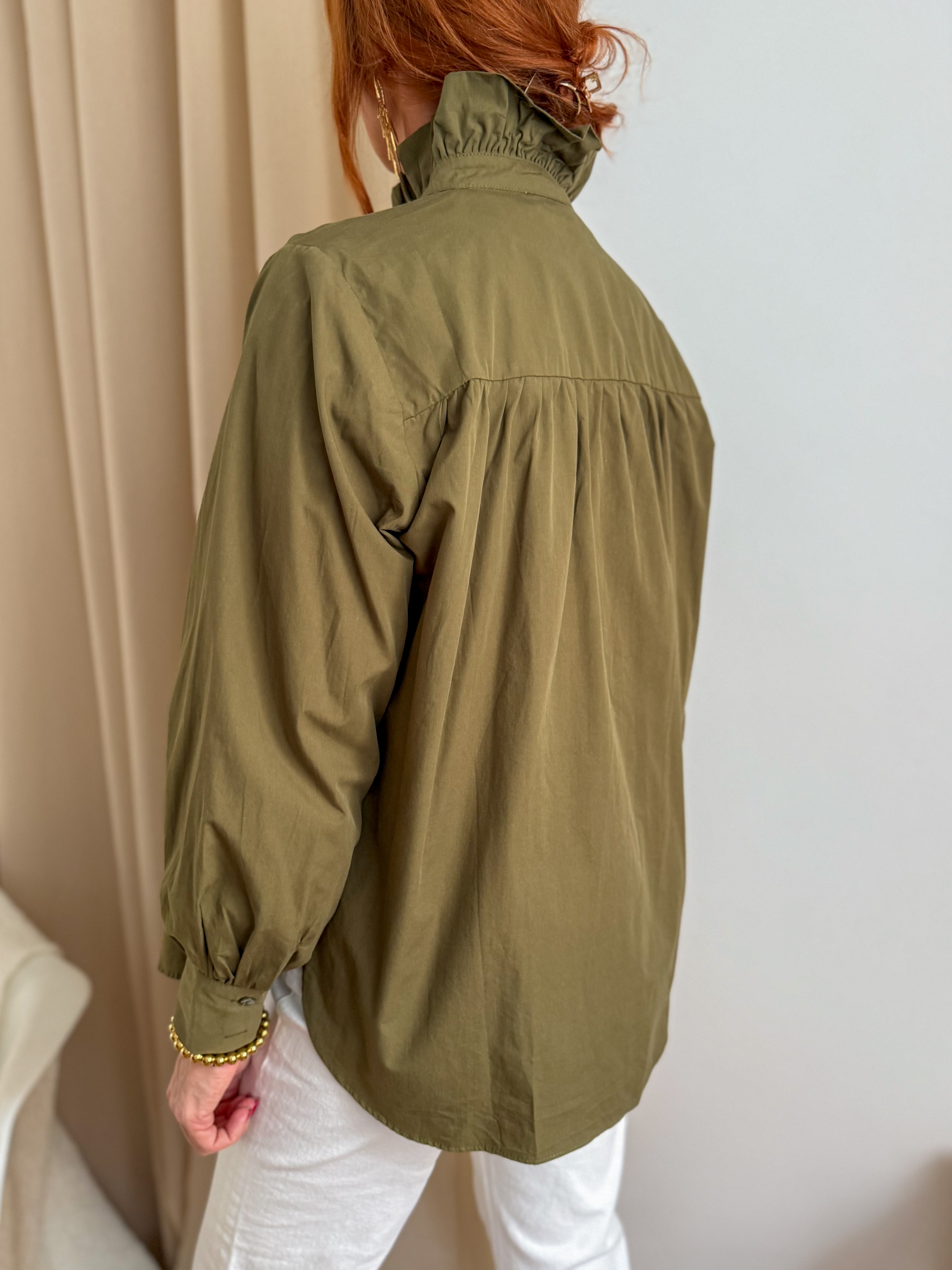 Élégante et pleine de caractère, notre chemise Kate kaki est une pièce intemporelle qui revisite les basiques avec une touche moderne.