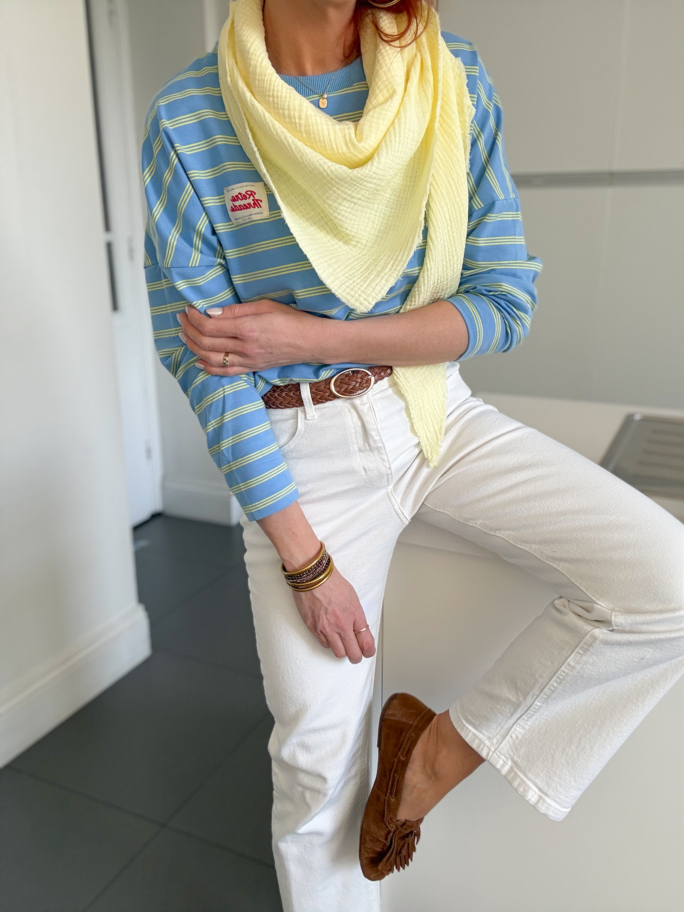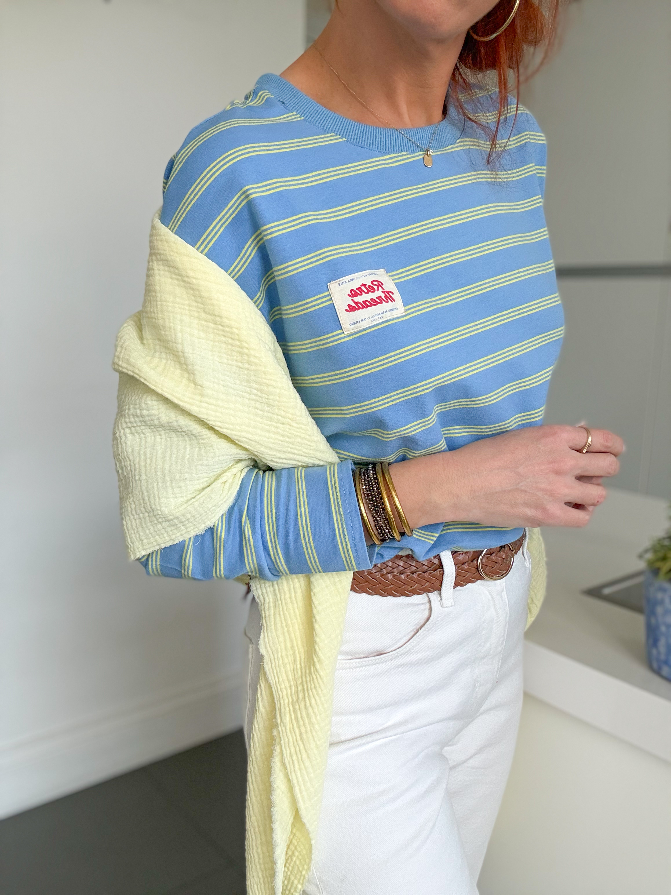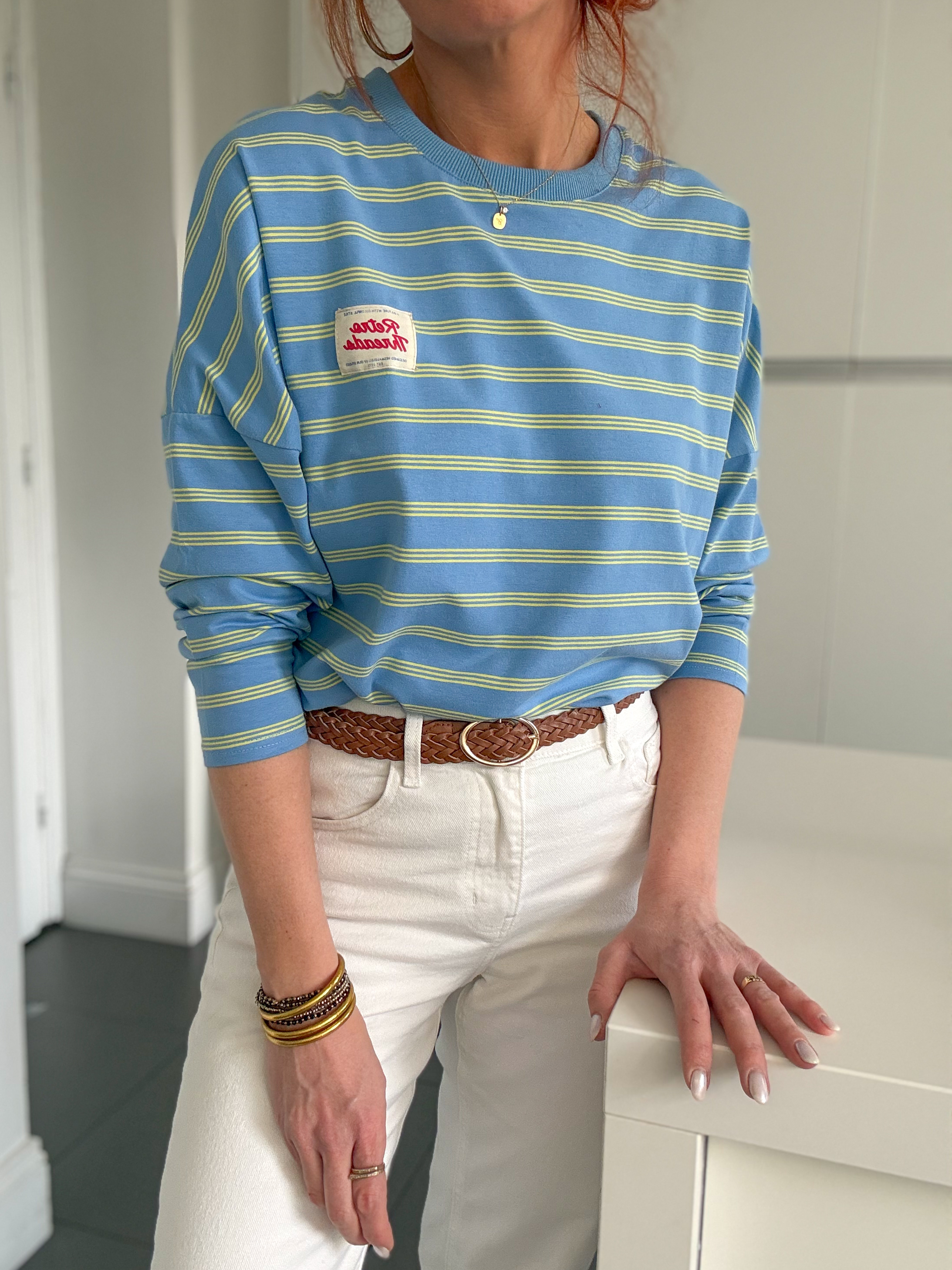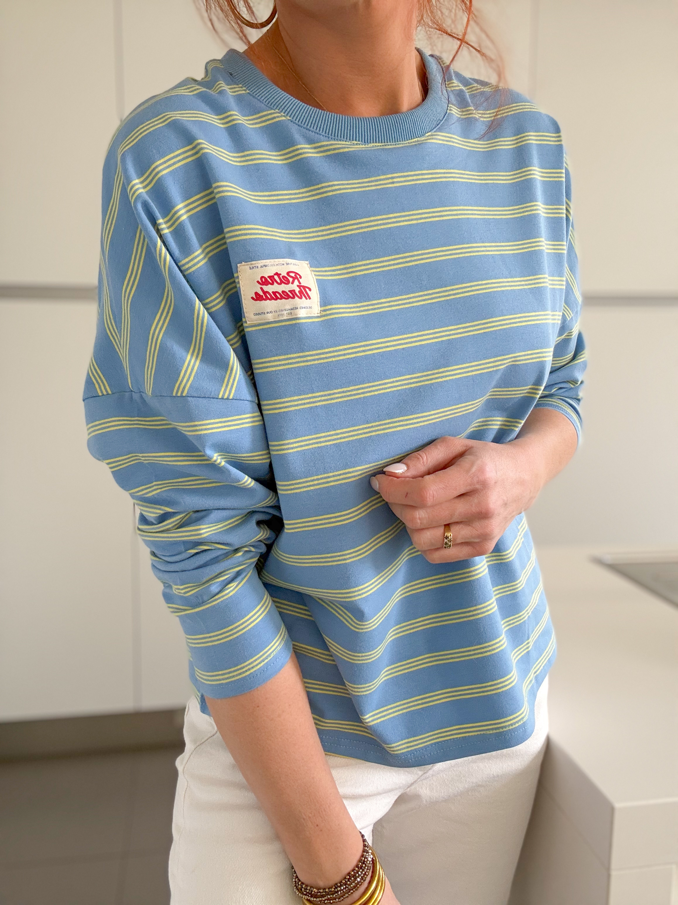Un vent de fraîcheur et de bonne humeur souffle sur notre sweat Laurent avec ses rayures pleines de peps 💙💛