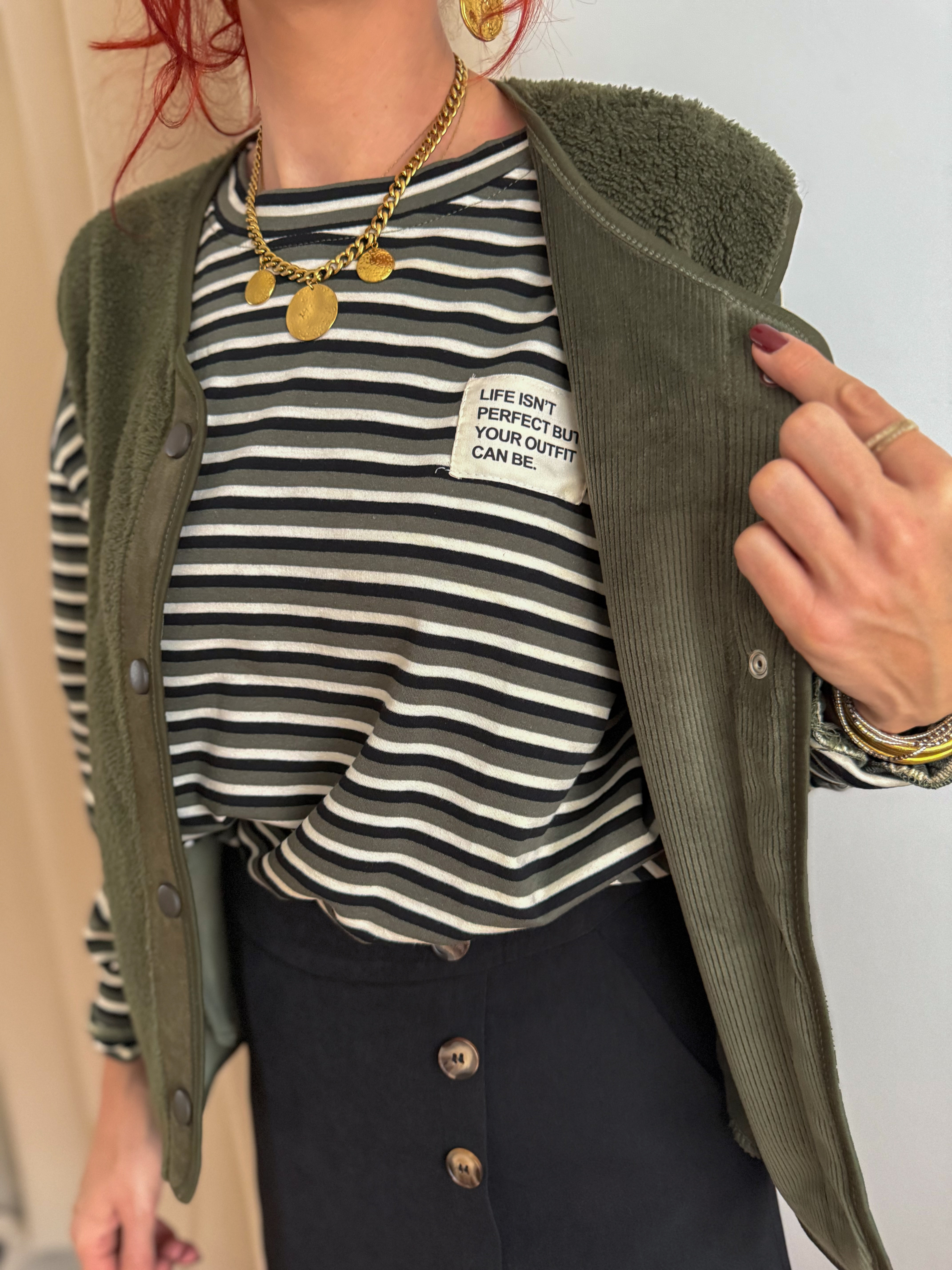 ➡️ Coloris : fond crème rayé noir pour un contraste facile à associer