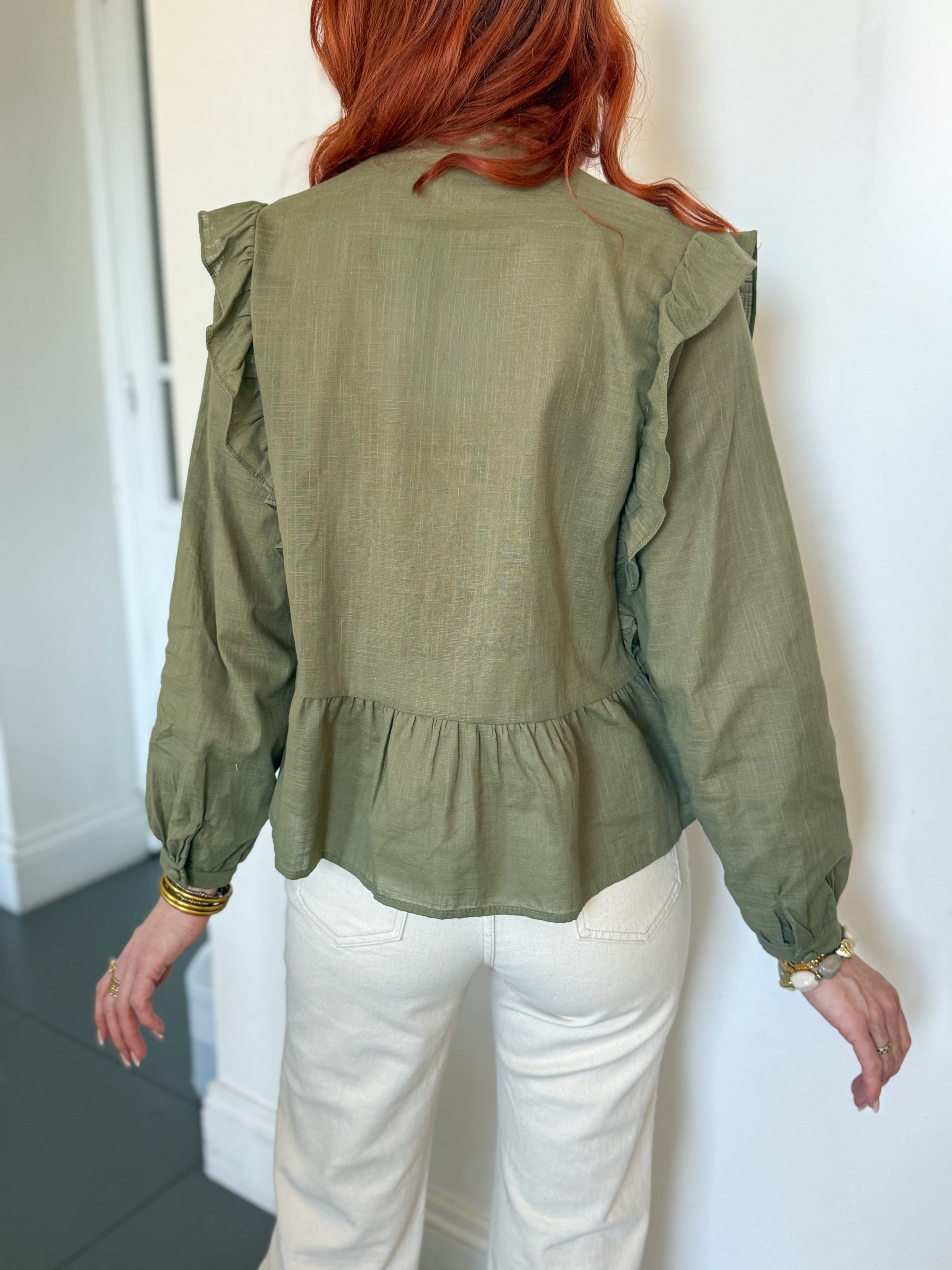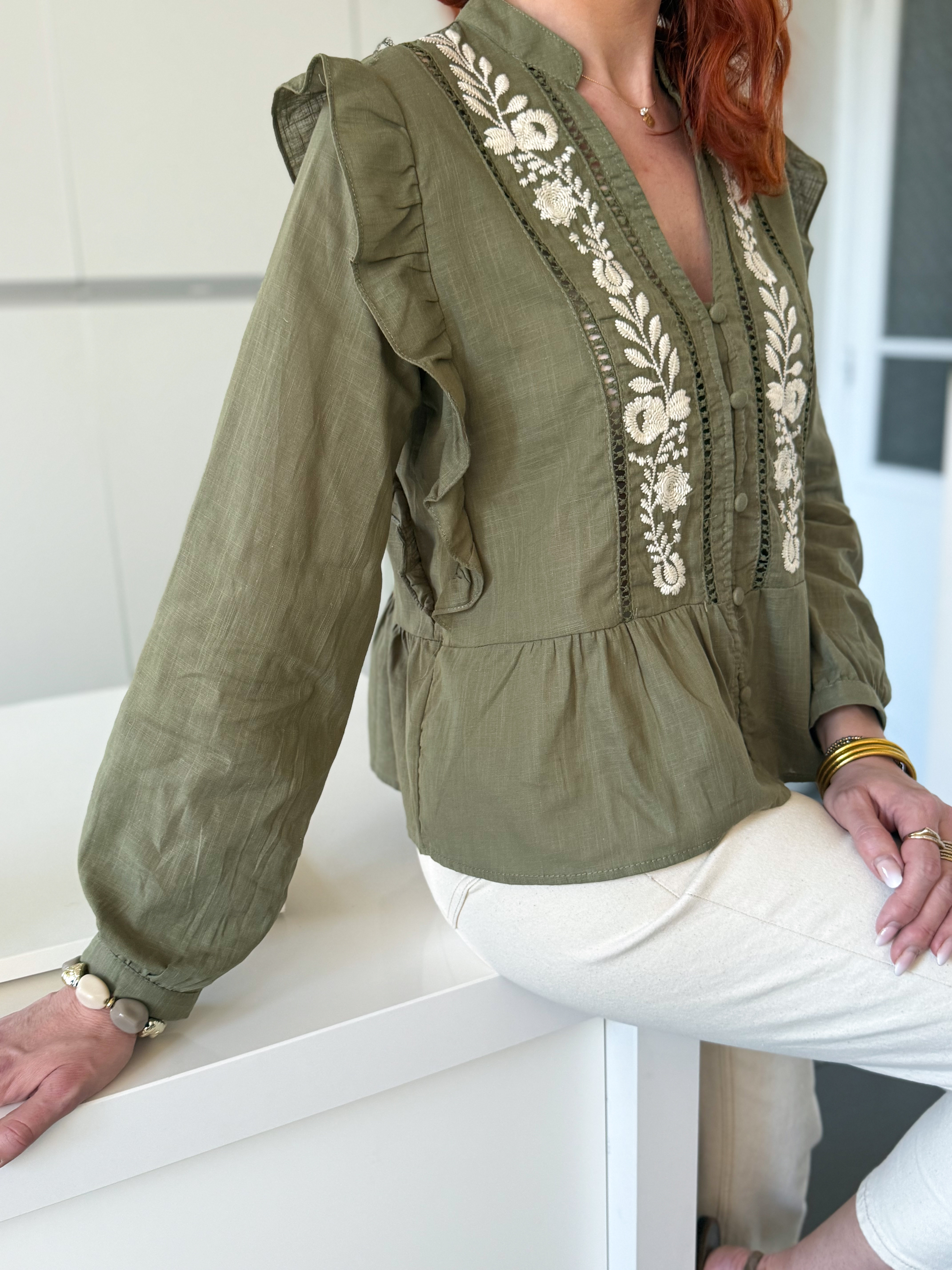 Notre blouse Lisa kaki et broderie est la pièce bohème chic par excellence,