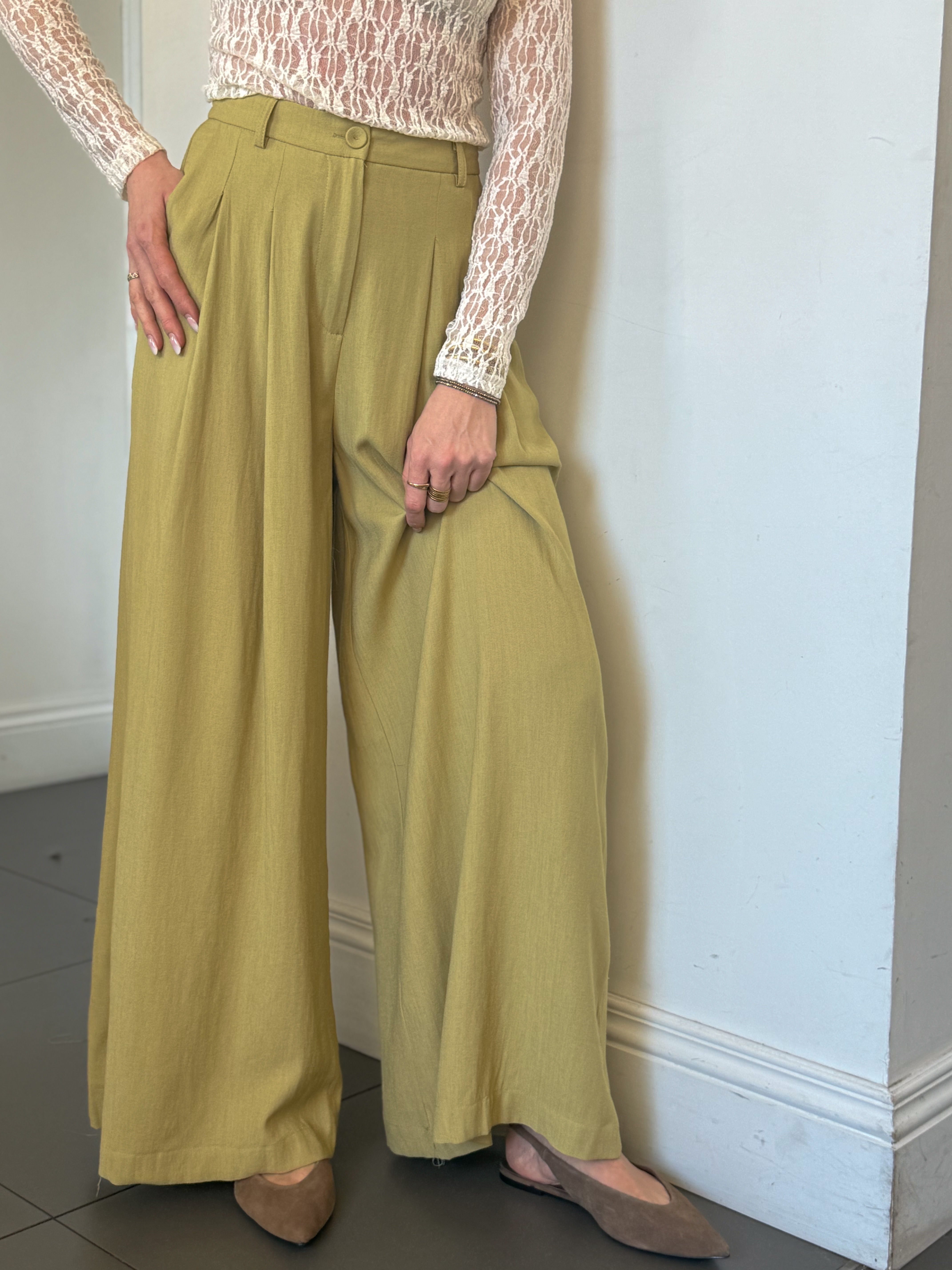 Notre pantalon Loïc fluide coloris olive est la pièce élégante