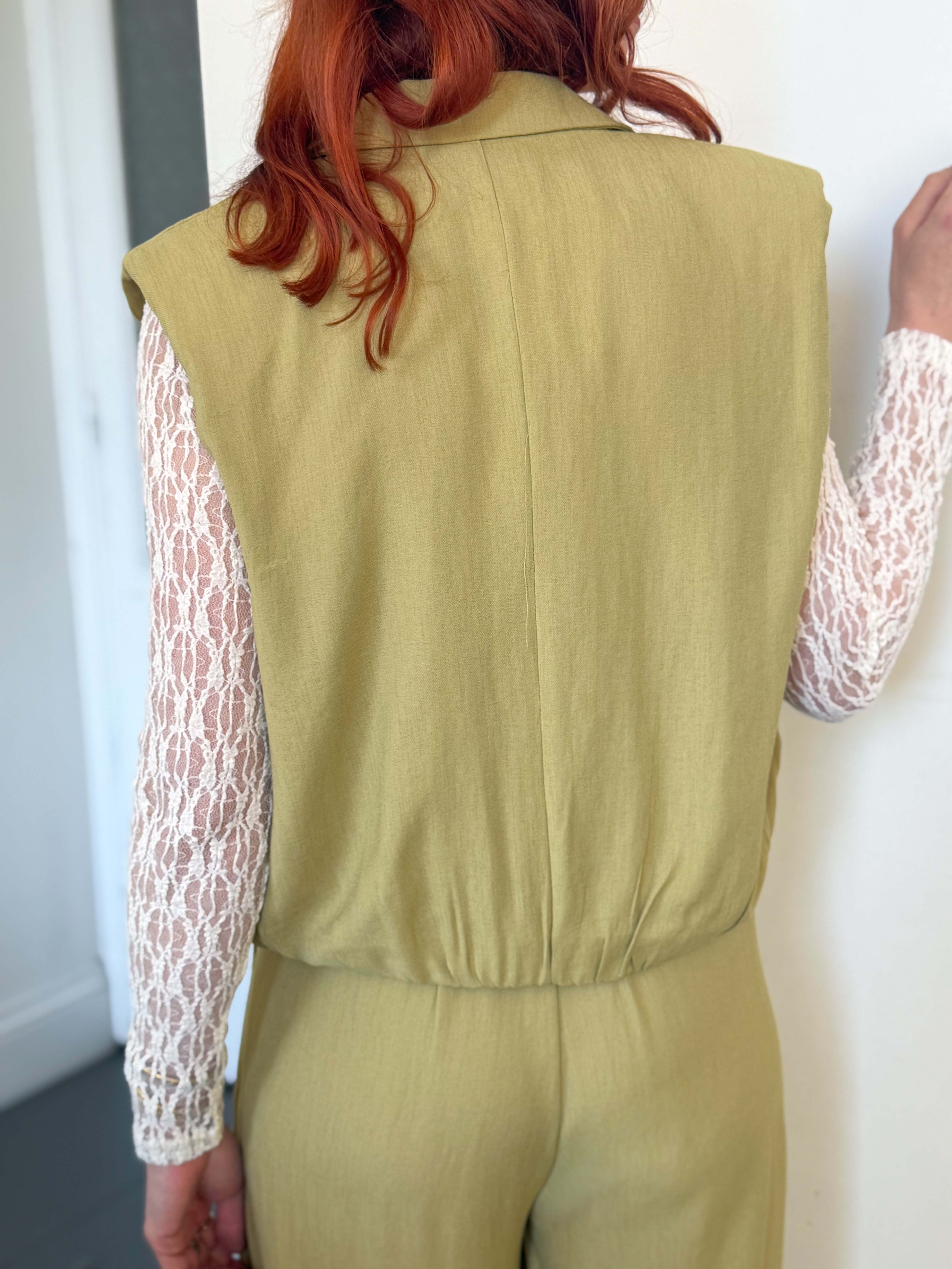 Notre veste Loïc sans manches coloris olive est la pièce parfaite pour structurer une silhouette