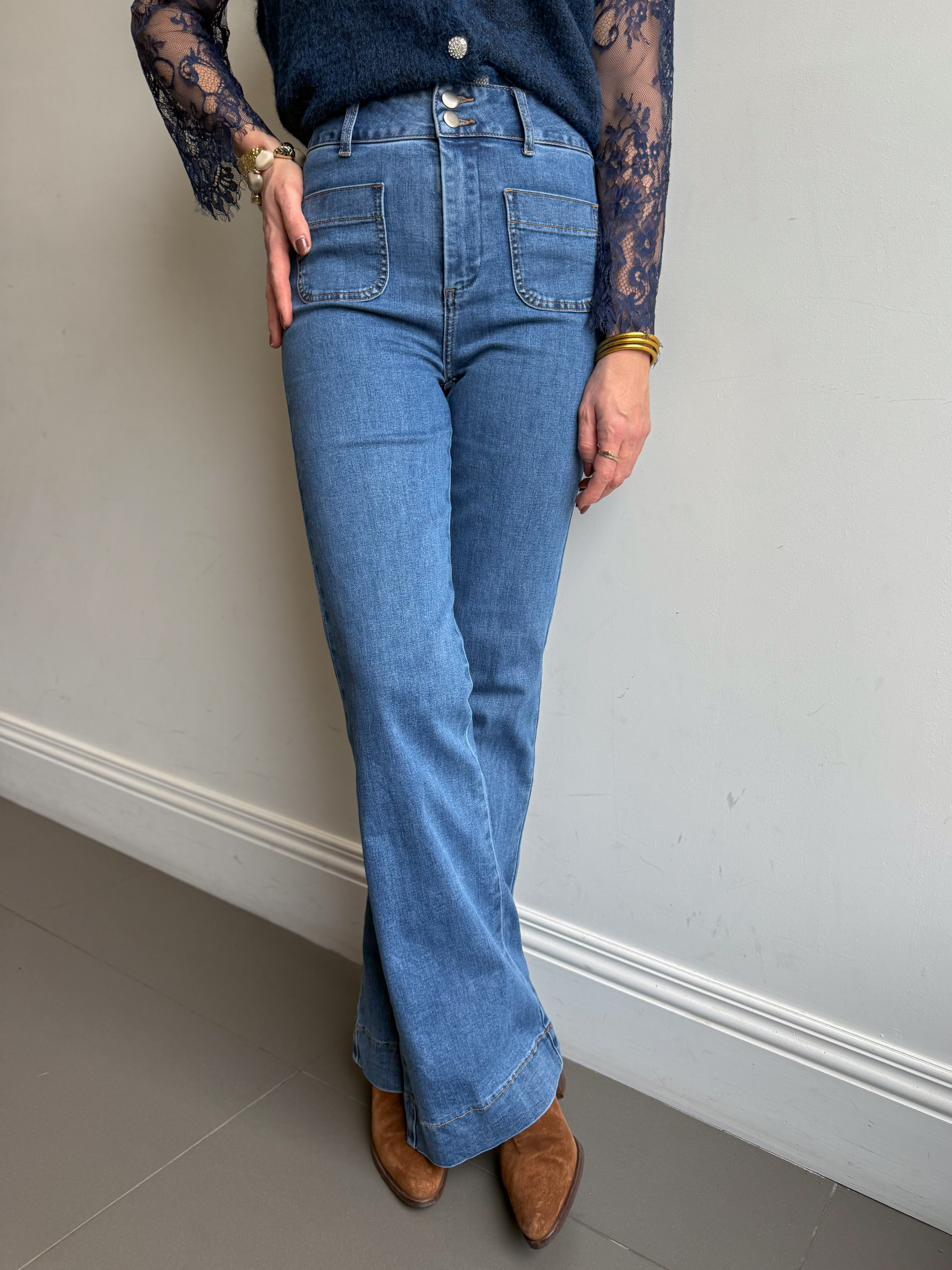 Notre jean flare Louis allonge la silhouette avec une coupe flatteuse