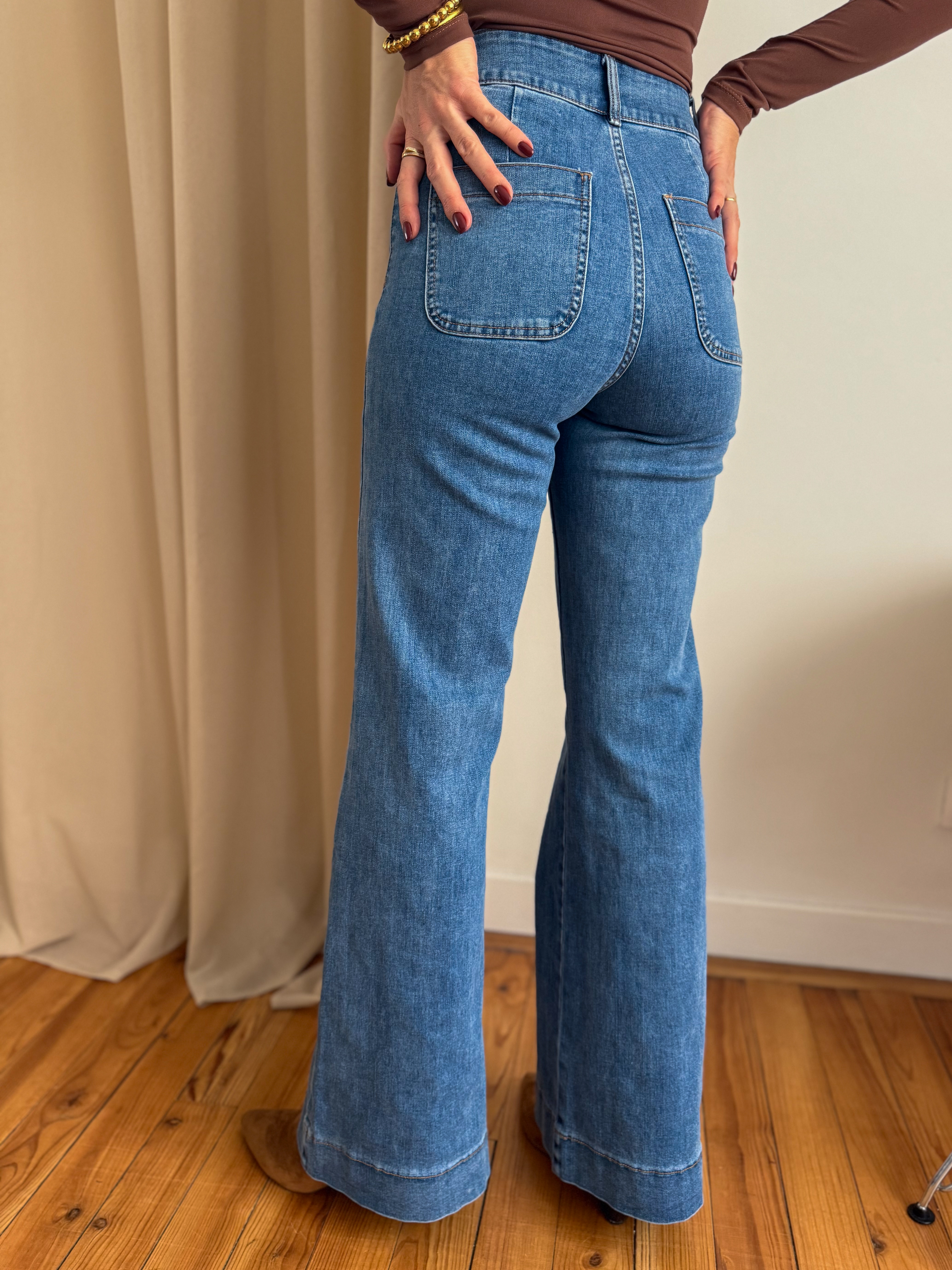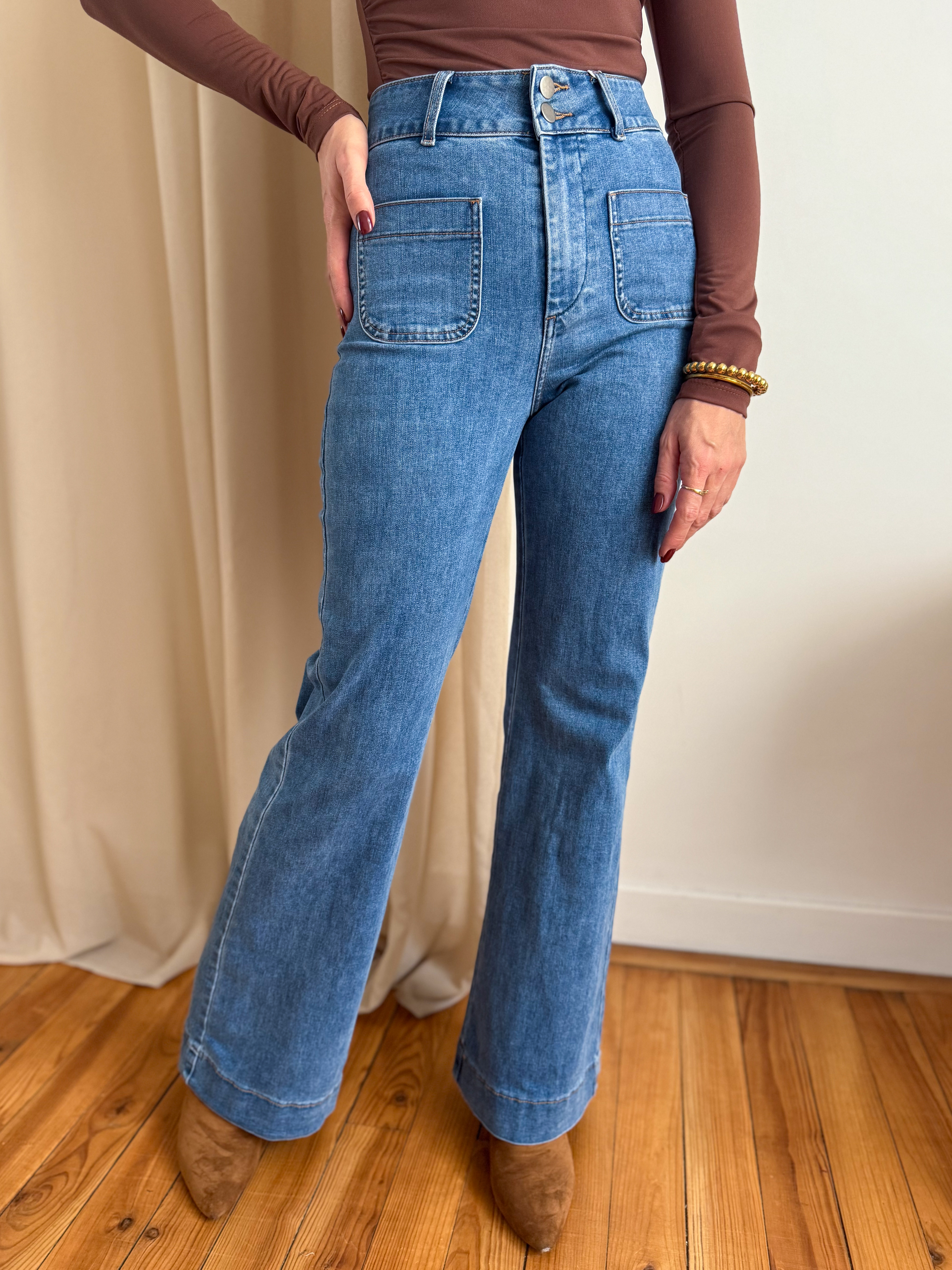 Avec sa coupe flare et sa taille haute bien marquée, il allie confort et élégance.
