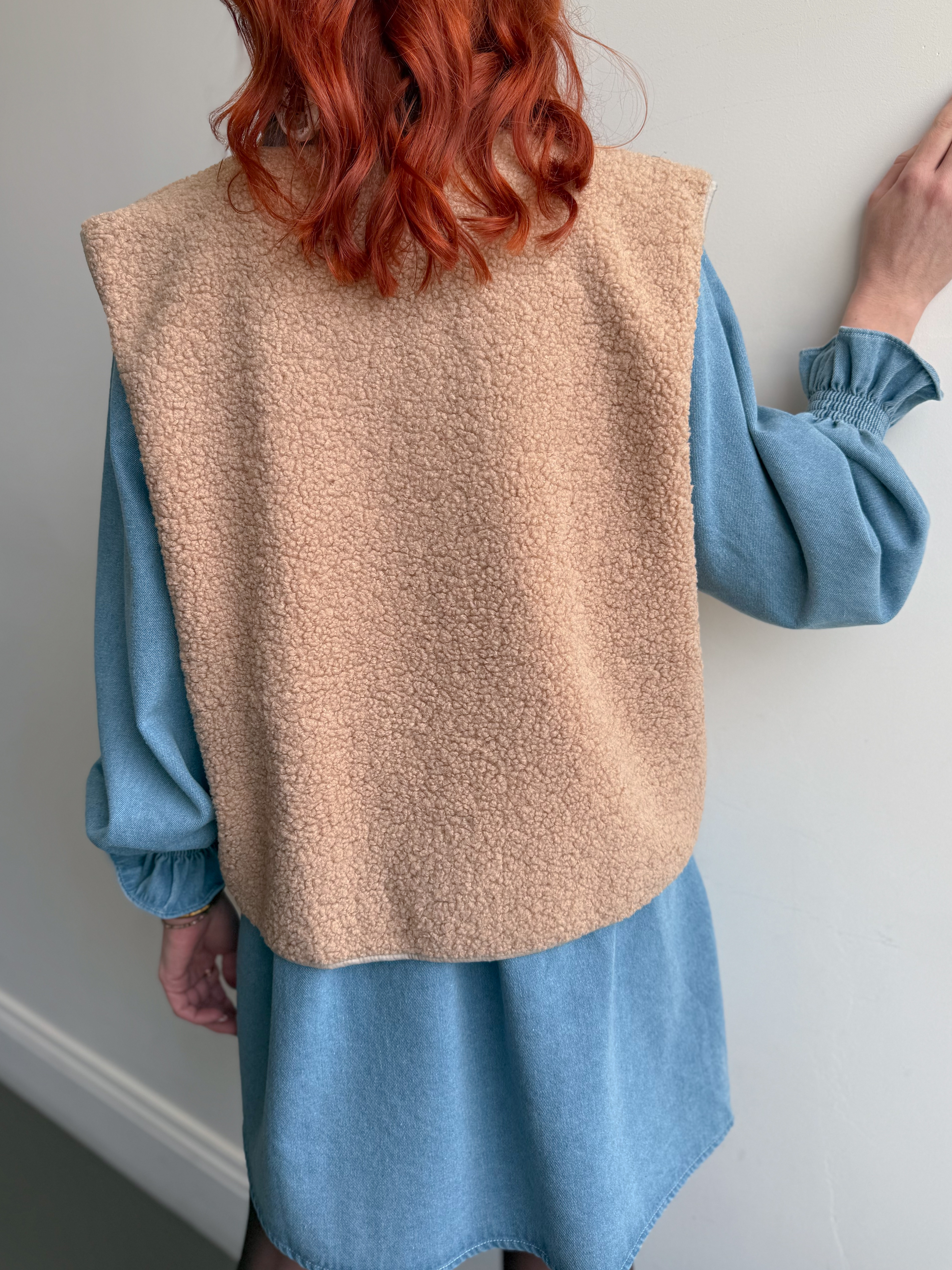 Notre gilet Luc en bouclettes est la pièce idéale pour réchauffer un look tout en douceur.