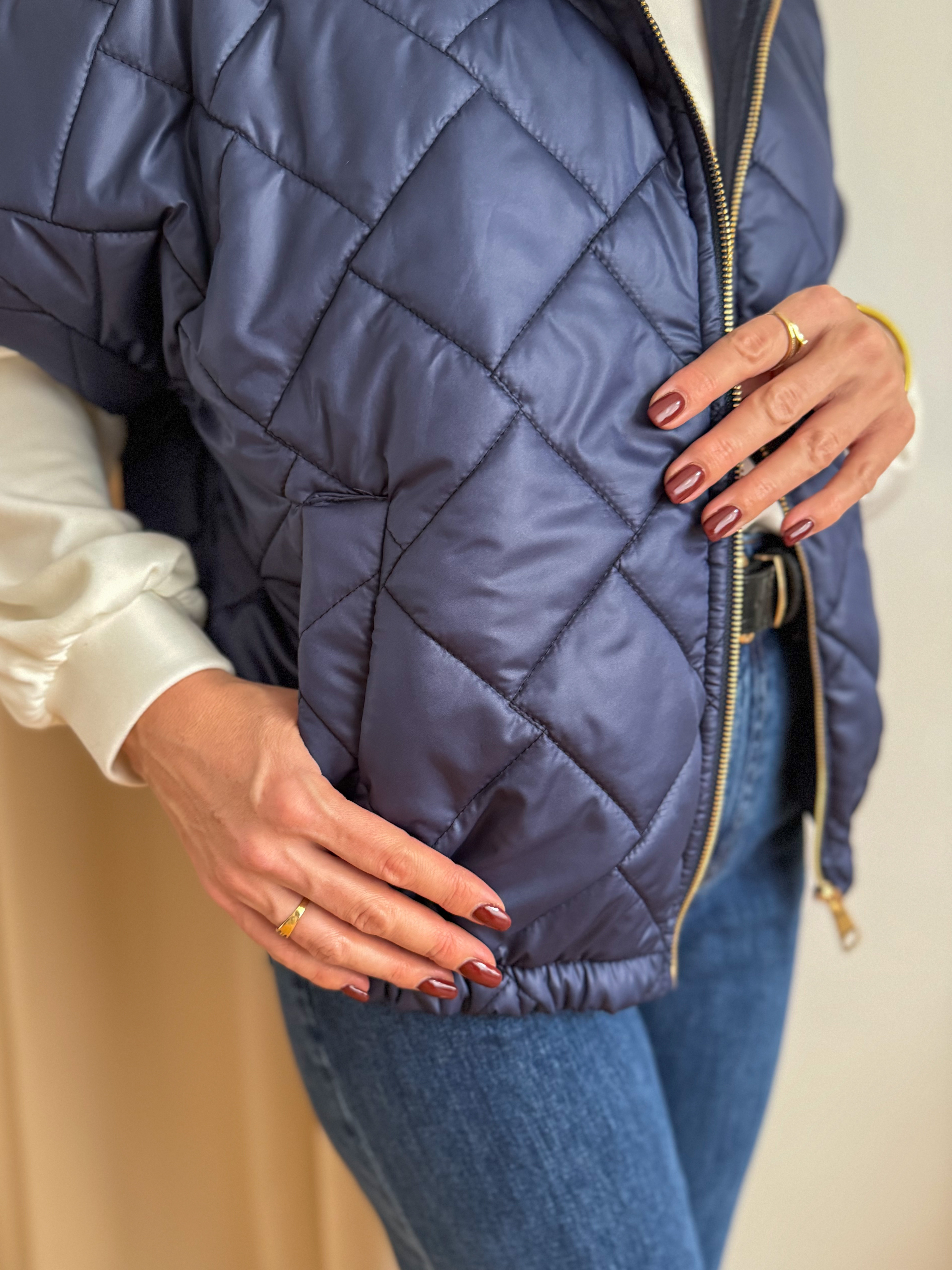 Parfaite pour réchauffer vos looks de saison, elle mixe confort et allure avec son joli matelassage losange et sa capuche généreuse.