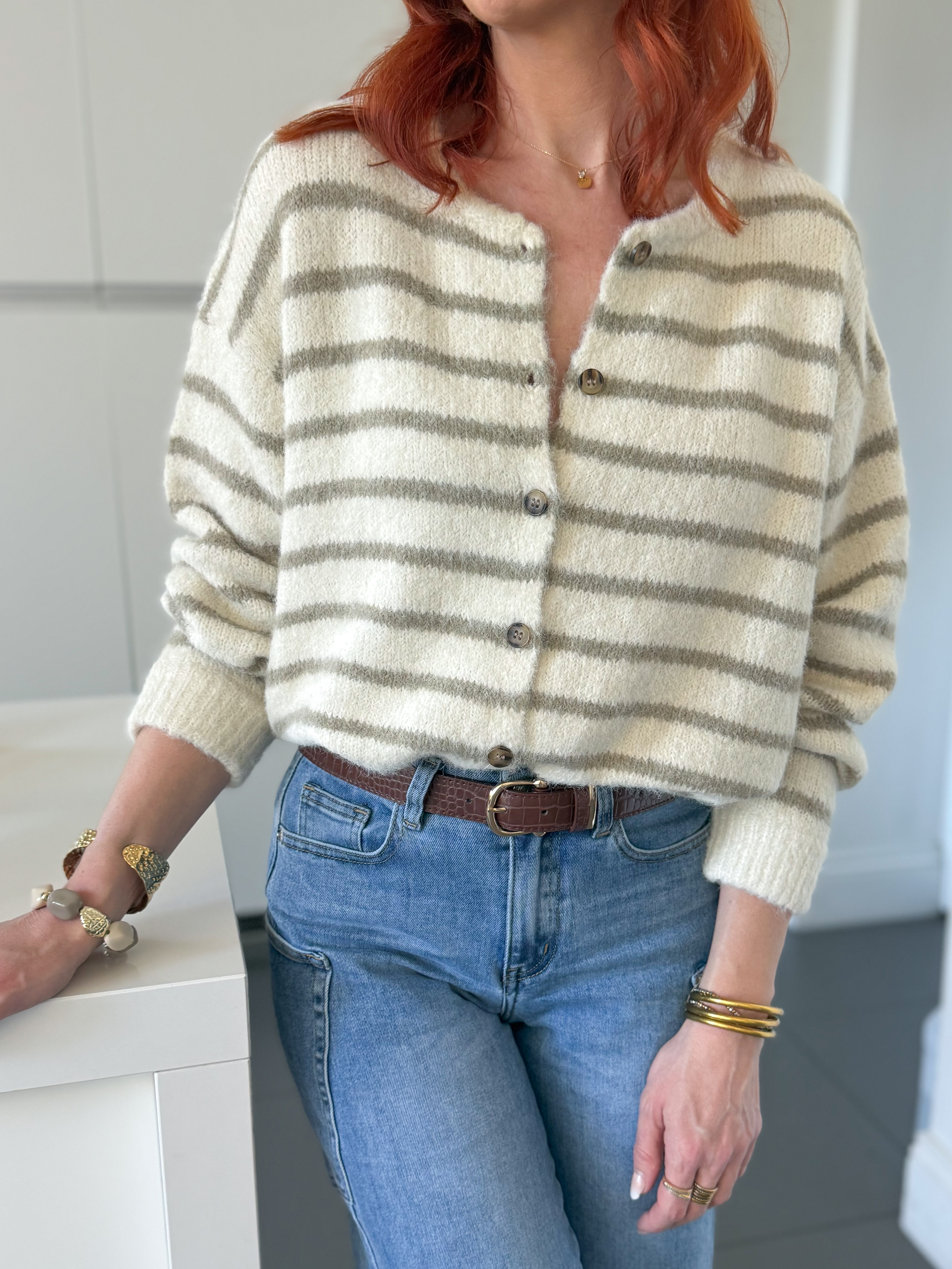 Coloris écru rehaussé de fines rayures