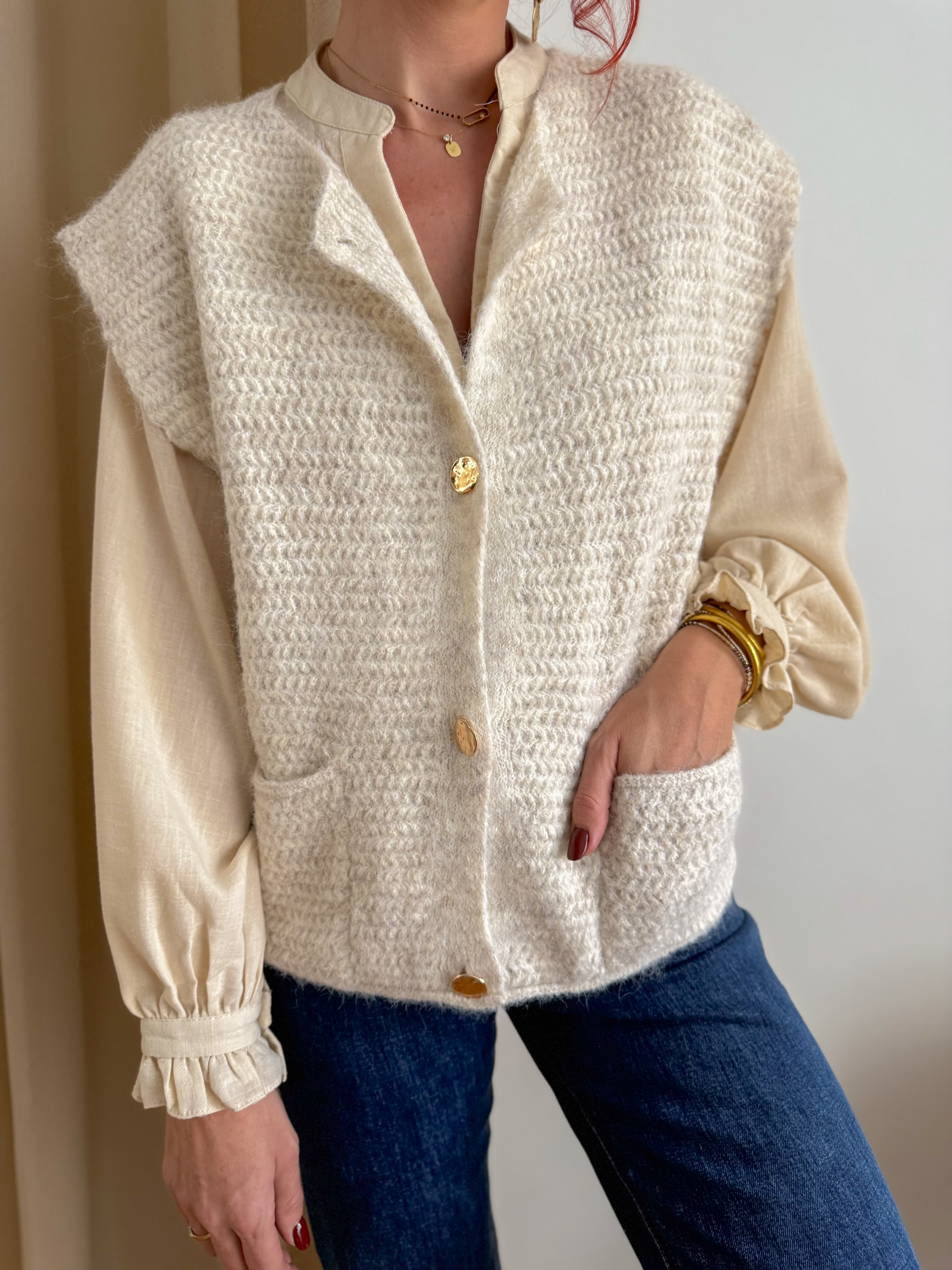 Notre gilet sans manches Marvin apporte cette touche cocoon qu’on adore, grâce à sa maille moelleuse et texturée,