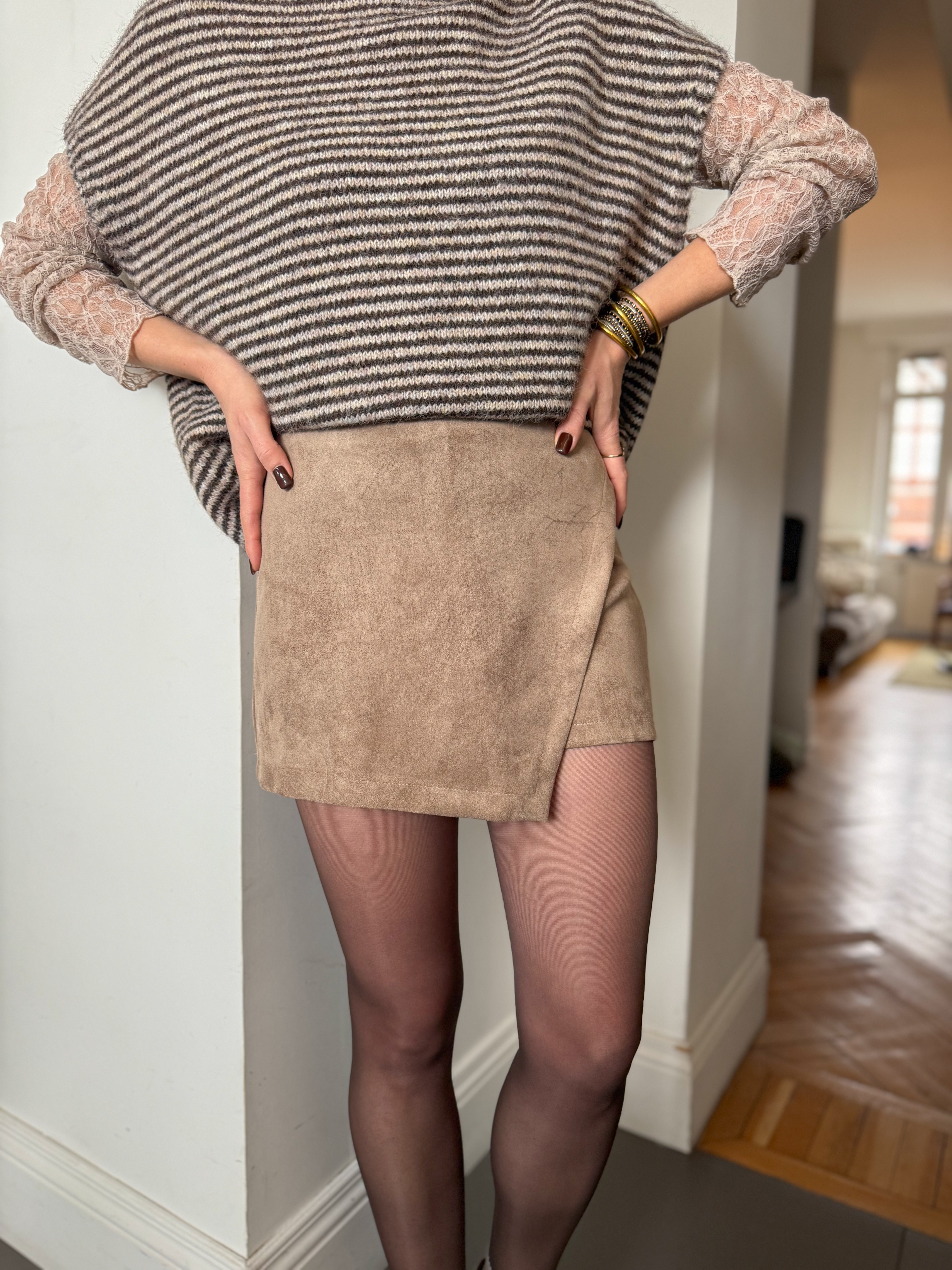 Se porte aussi bien avec un pull loose, un top dentelle ou un blazer structuré.