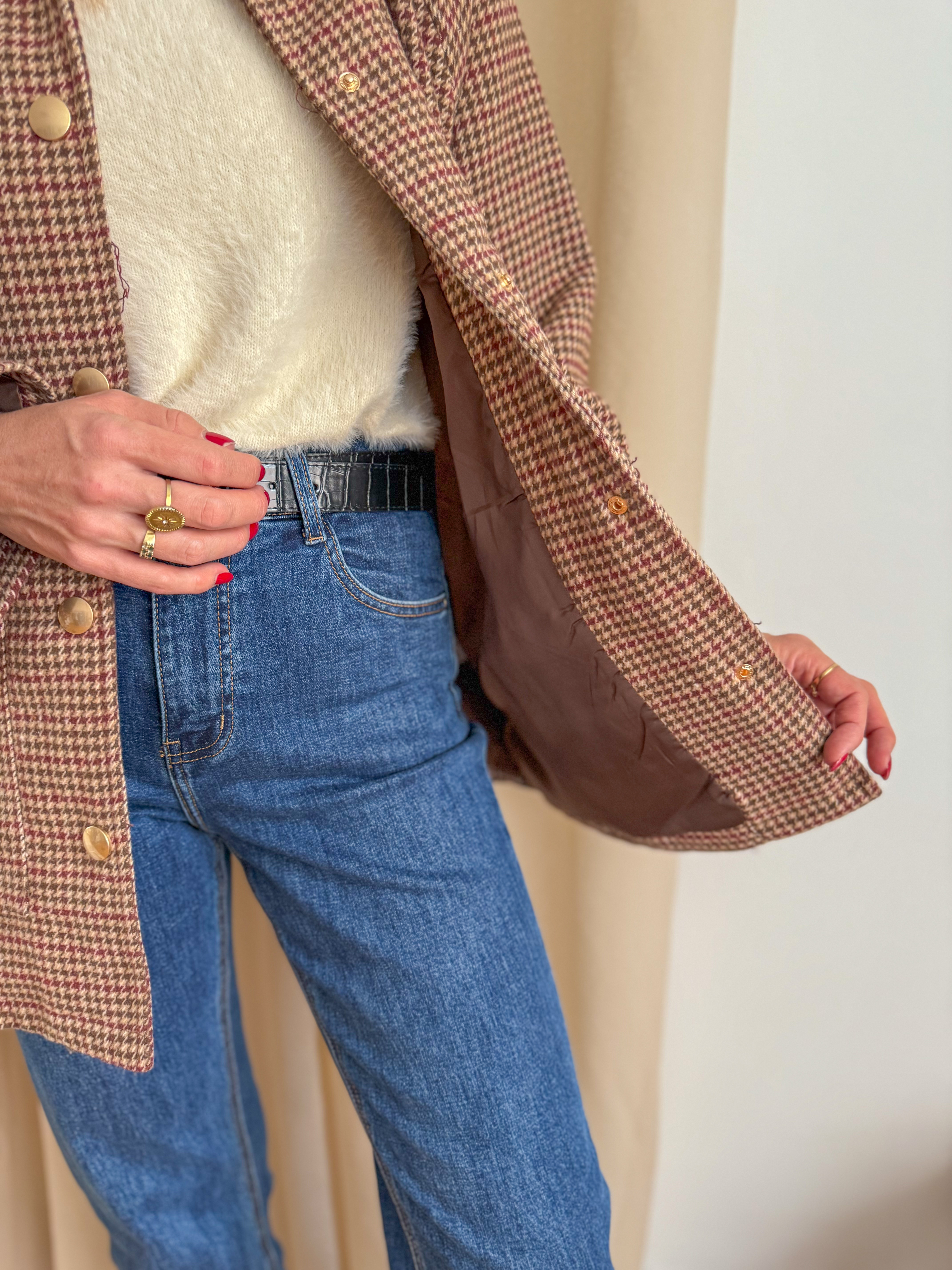 Avec son motif pied-de-poule aux tons chauds et son col contrasté, notre blazer Paxton est la pièce parfaite pour vos tenues d’automne 🍂