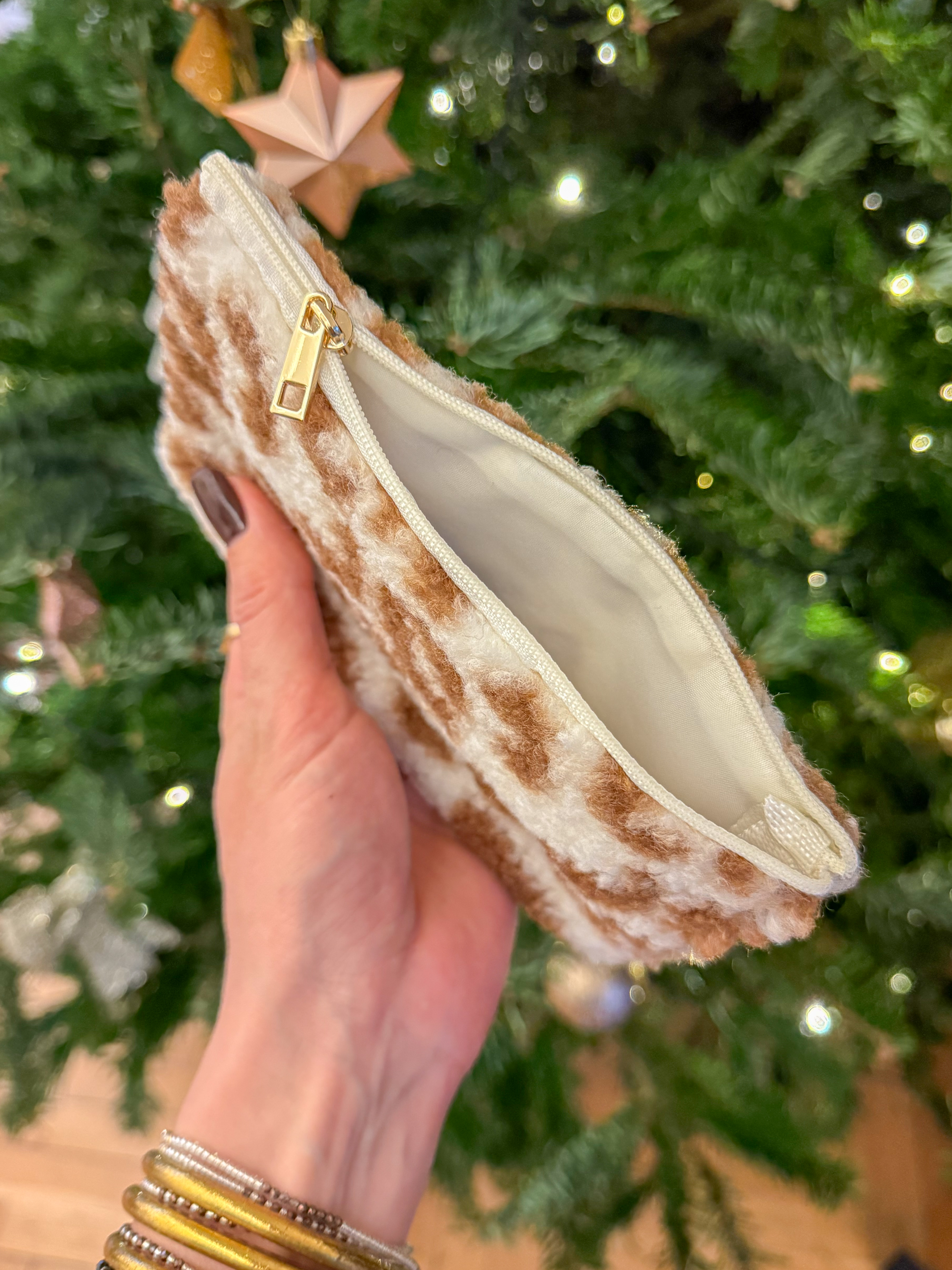 Toute douce et terriblement mignonne, notre pochette bouclettes est l’accessoire parfait pour garder vos essentiels bien au chaud.