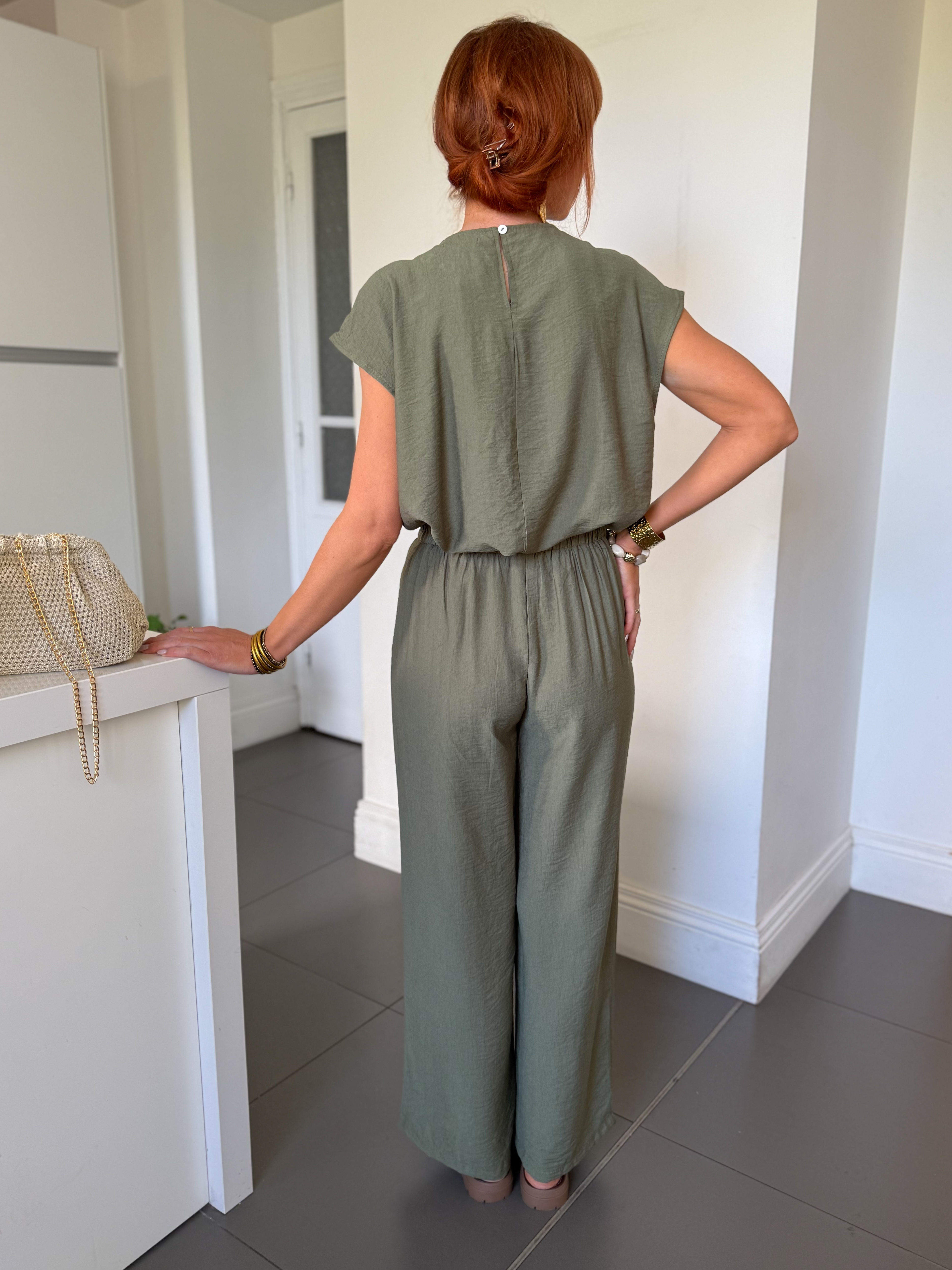 – Coloris kaki doux, facile à porter au quotidien