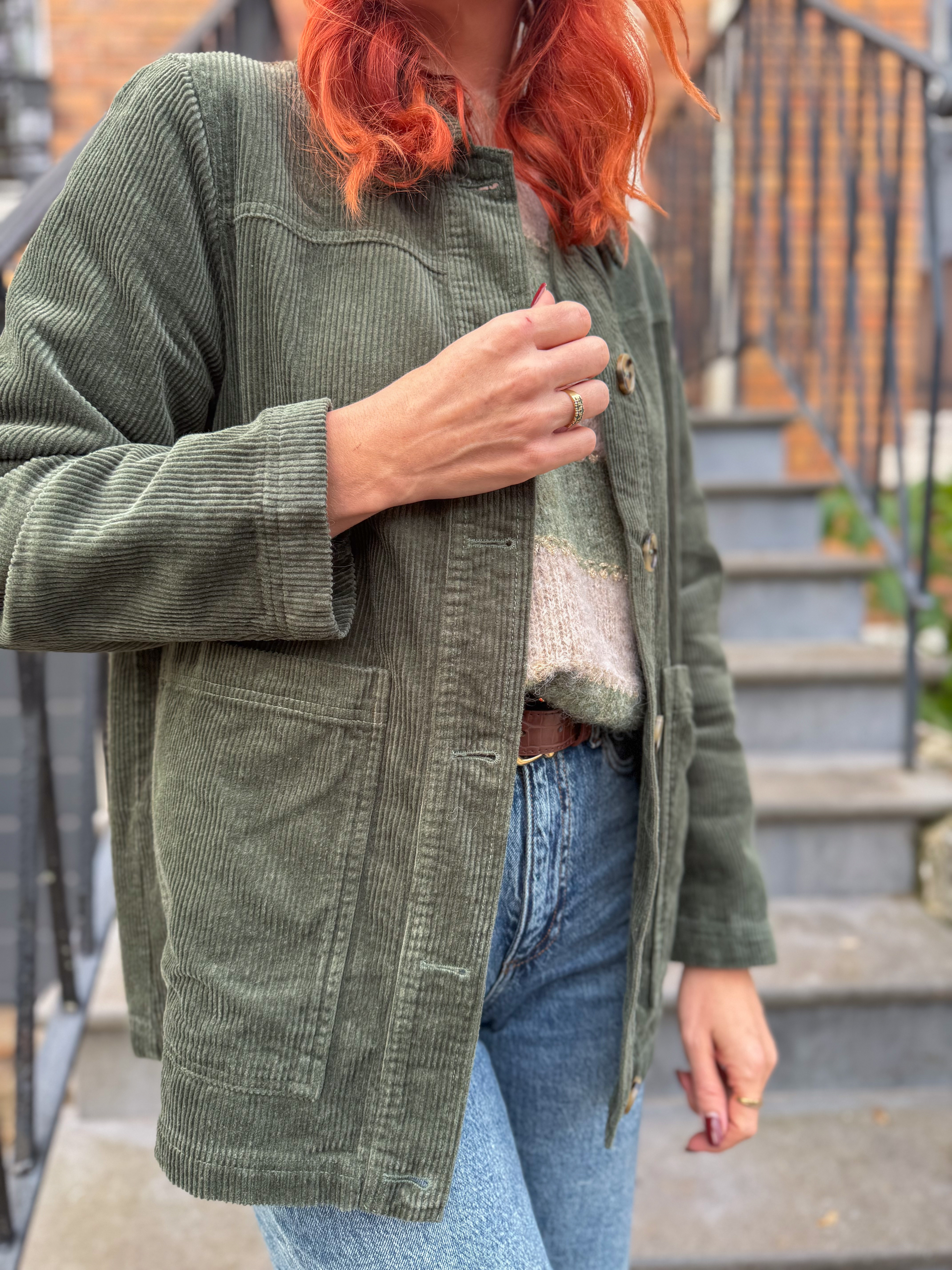 La pièce parfaite pour allier confort et style ! Notre veste Sael mise sur la tendance du velours côtelé dans une teinte kaki profonde qui traverse les saisons.