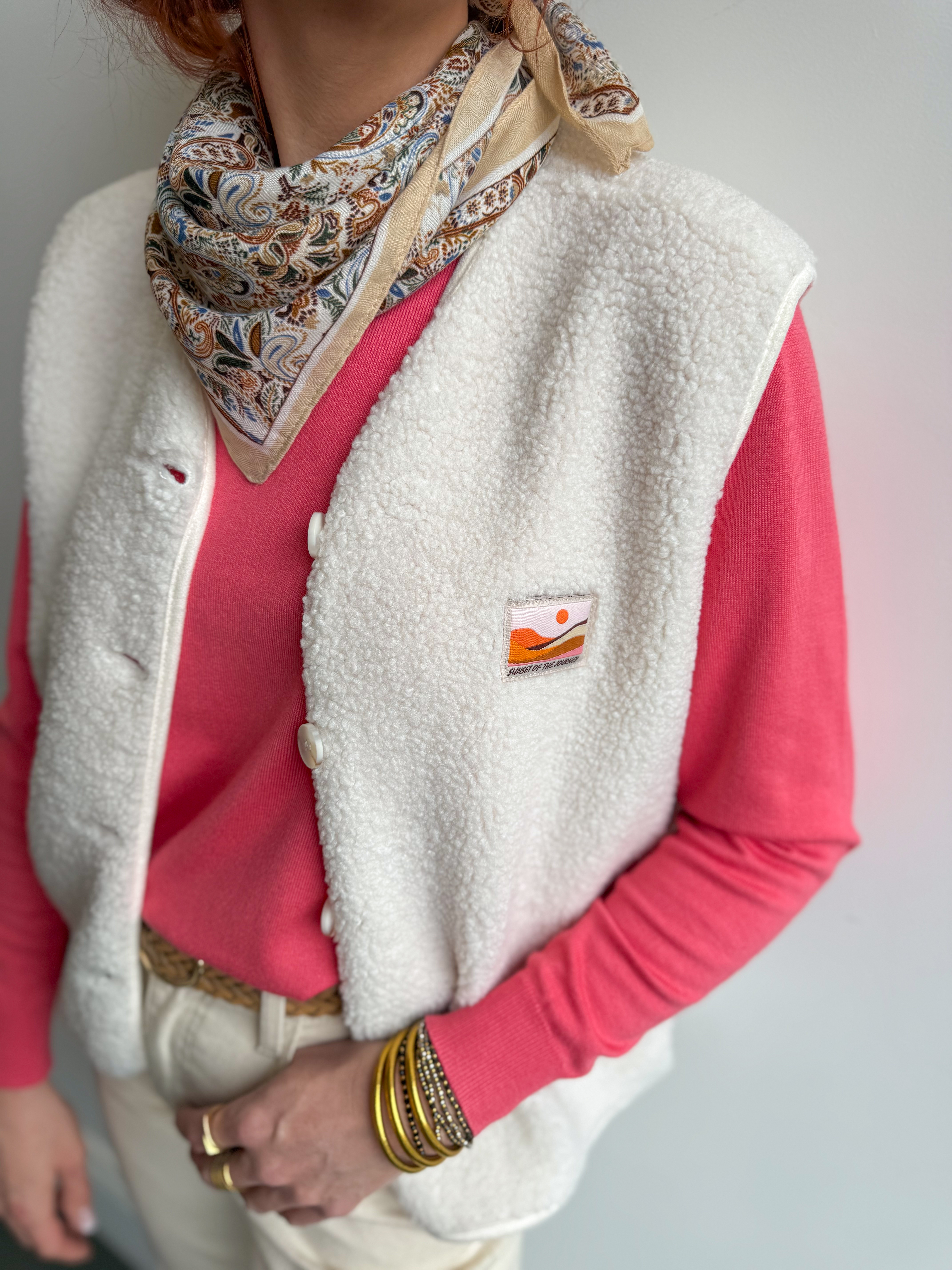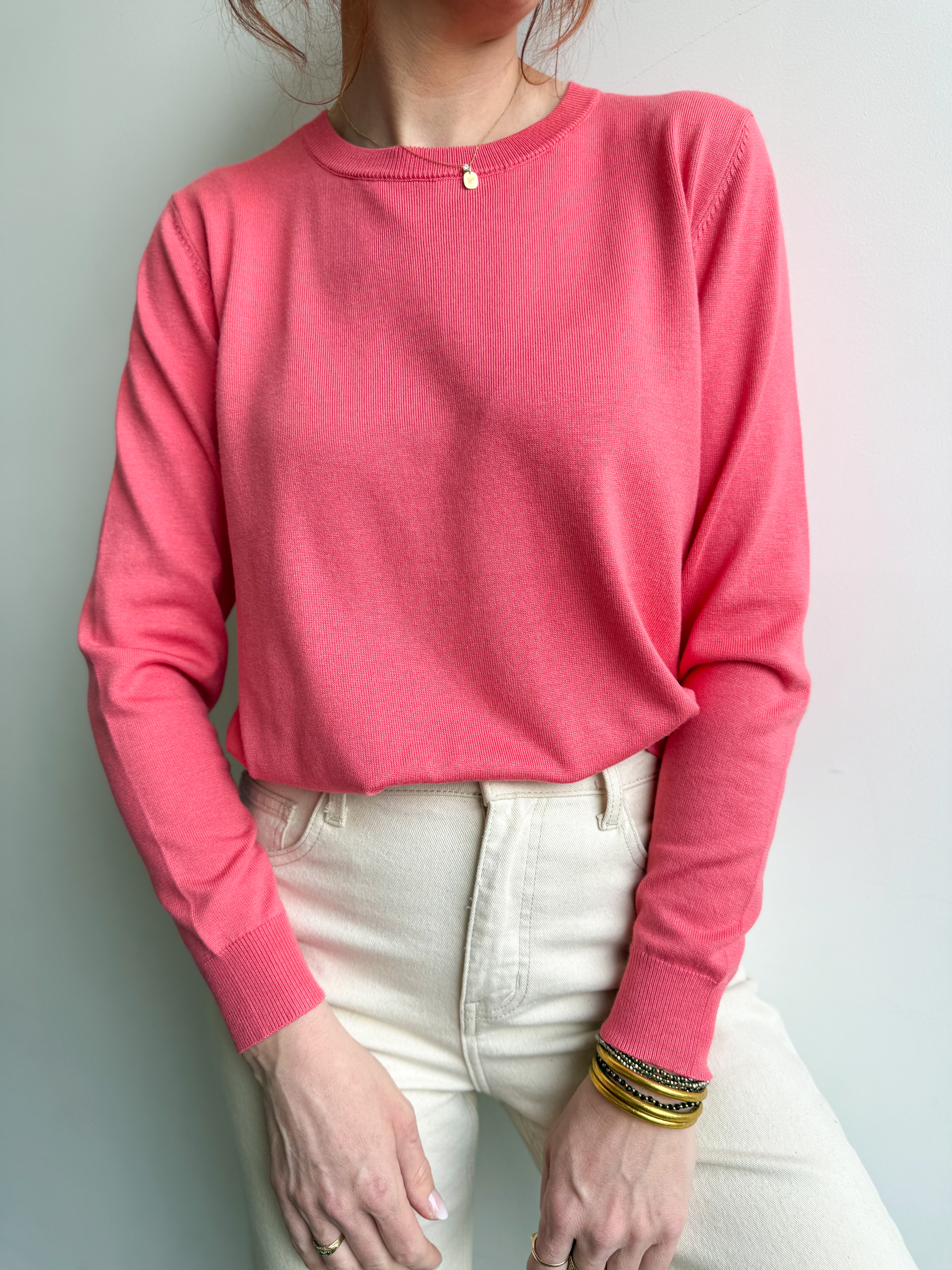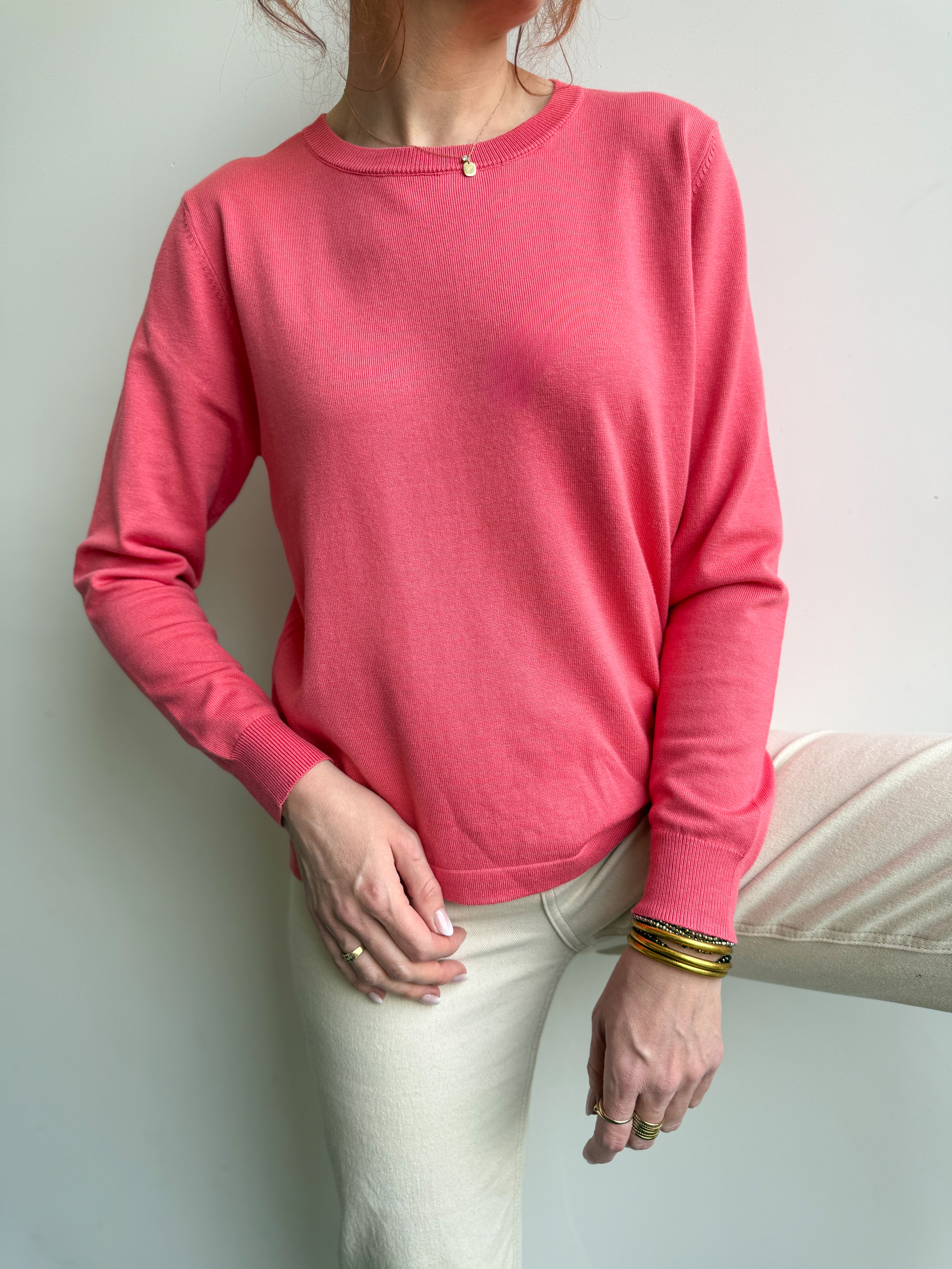 Sa teinte corail lumineuse illumine la tenue et se marie facilement