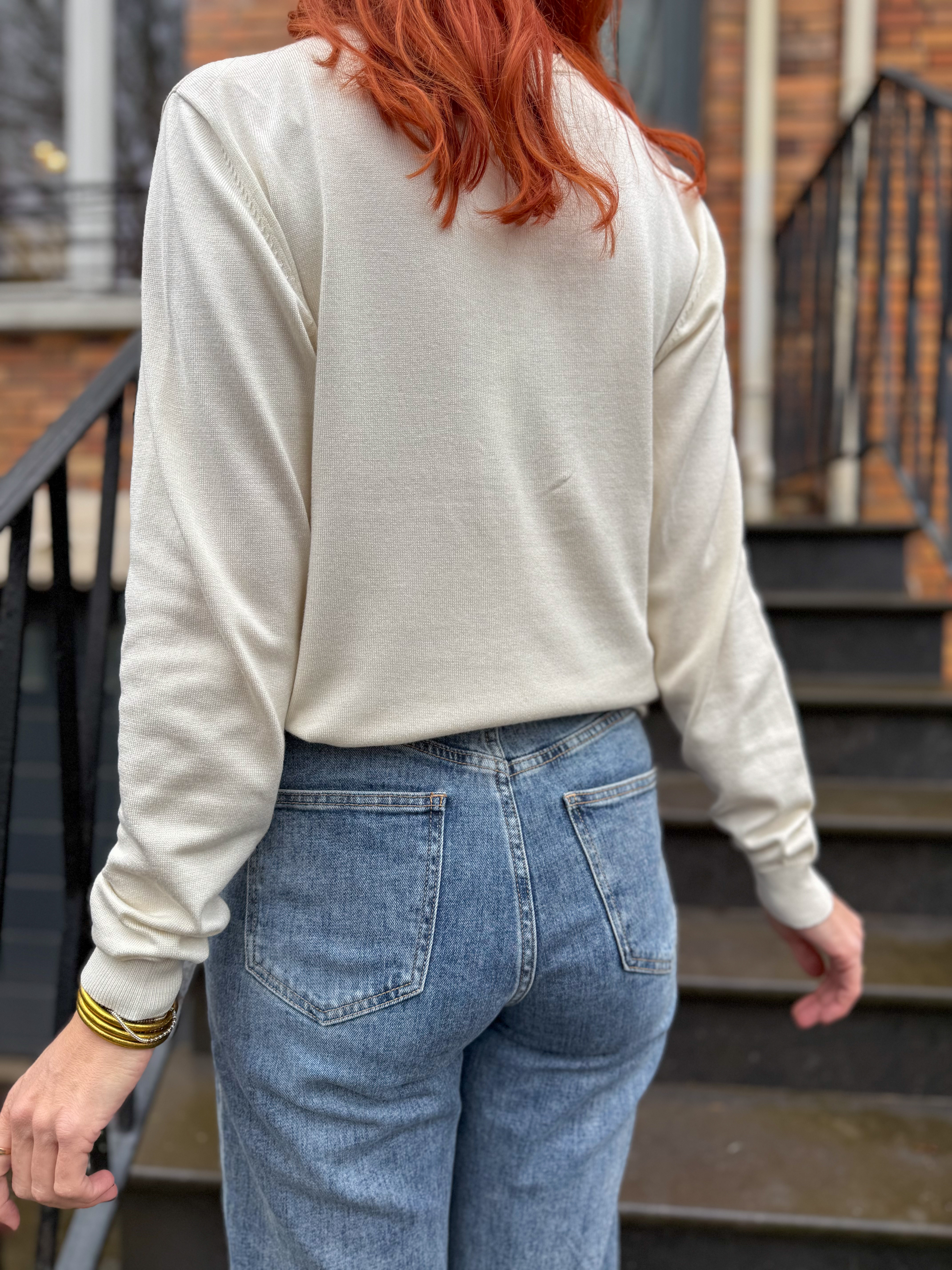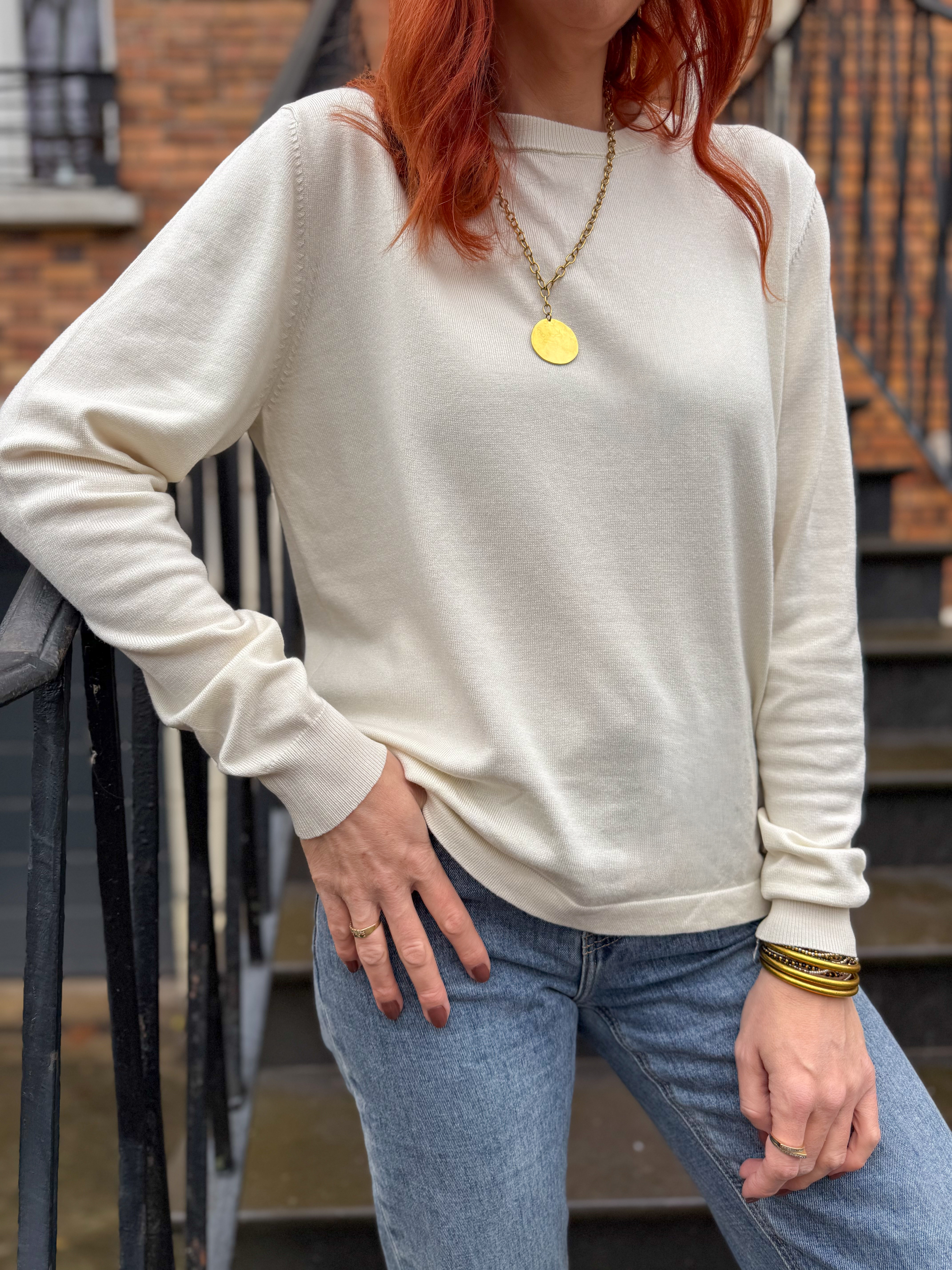 Sa teinte écrue lumineuse illumine la tenue et se marie avec tout.